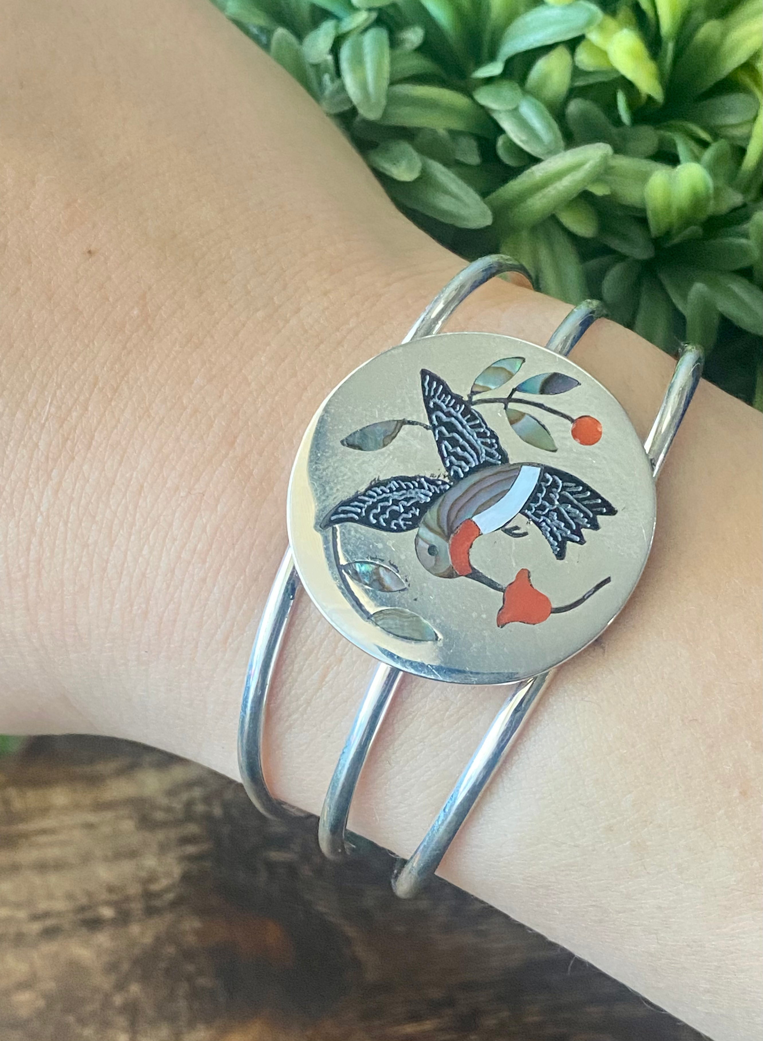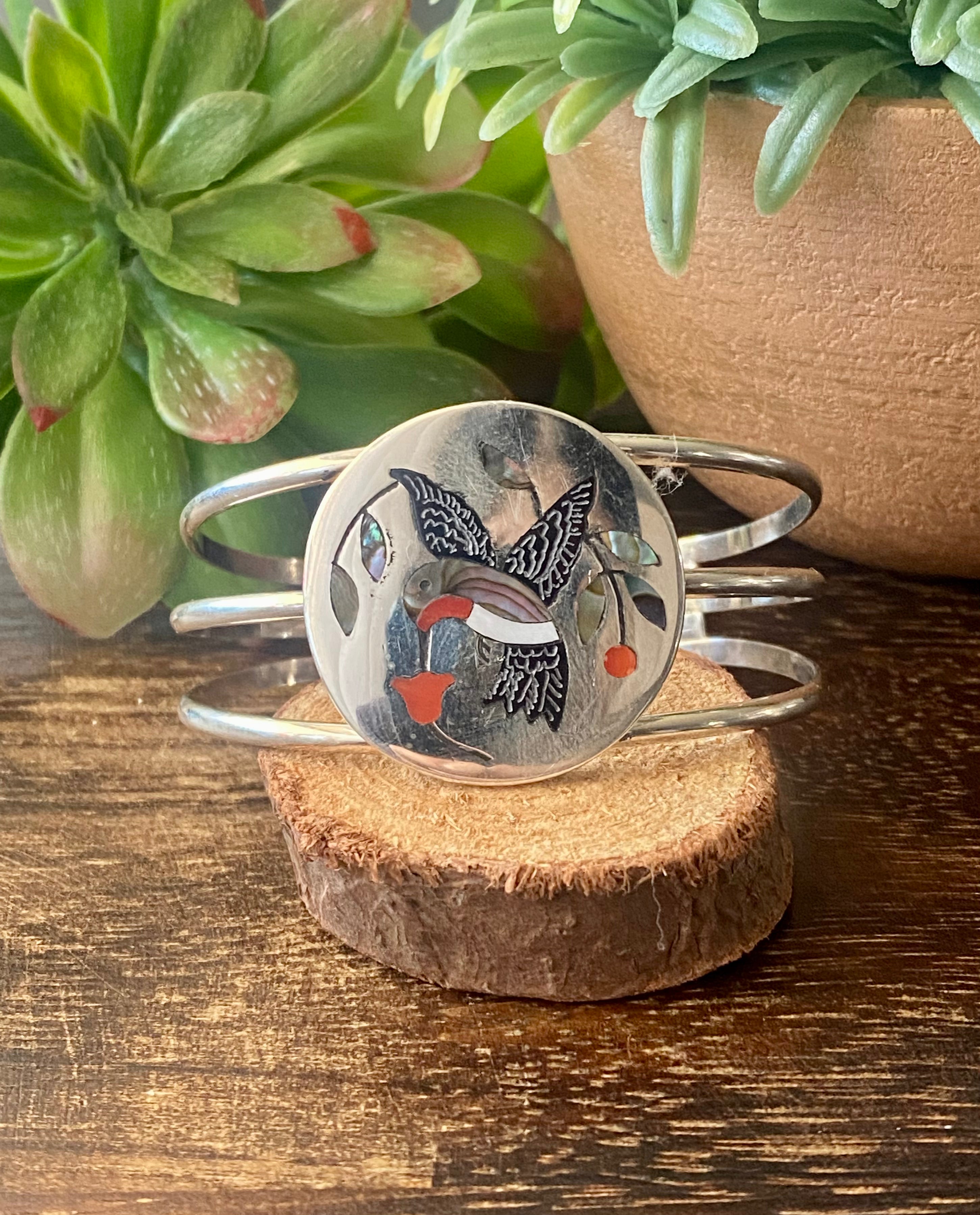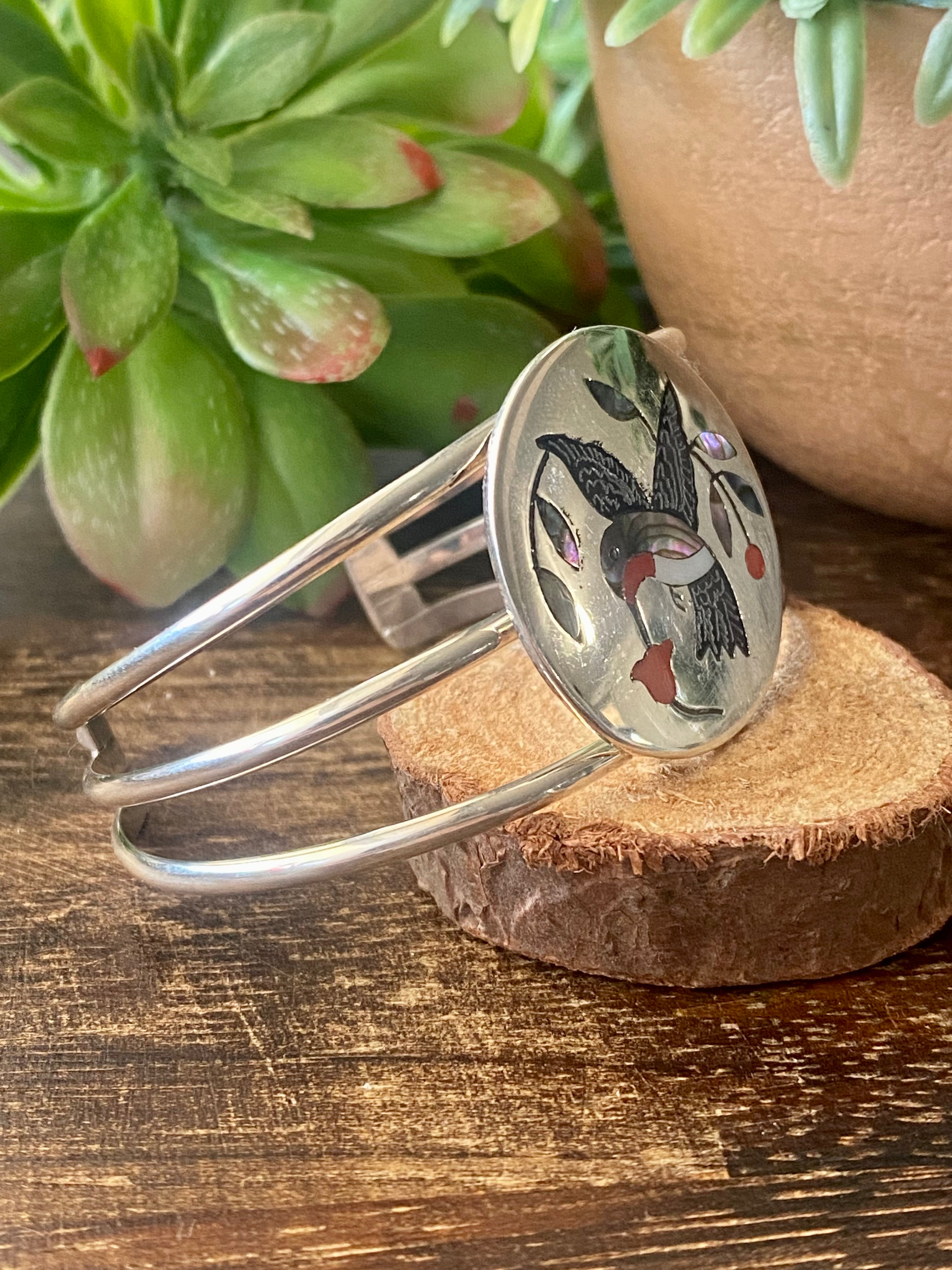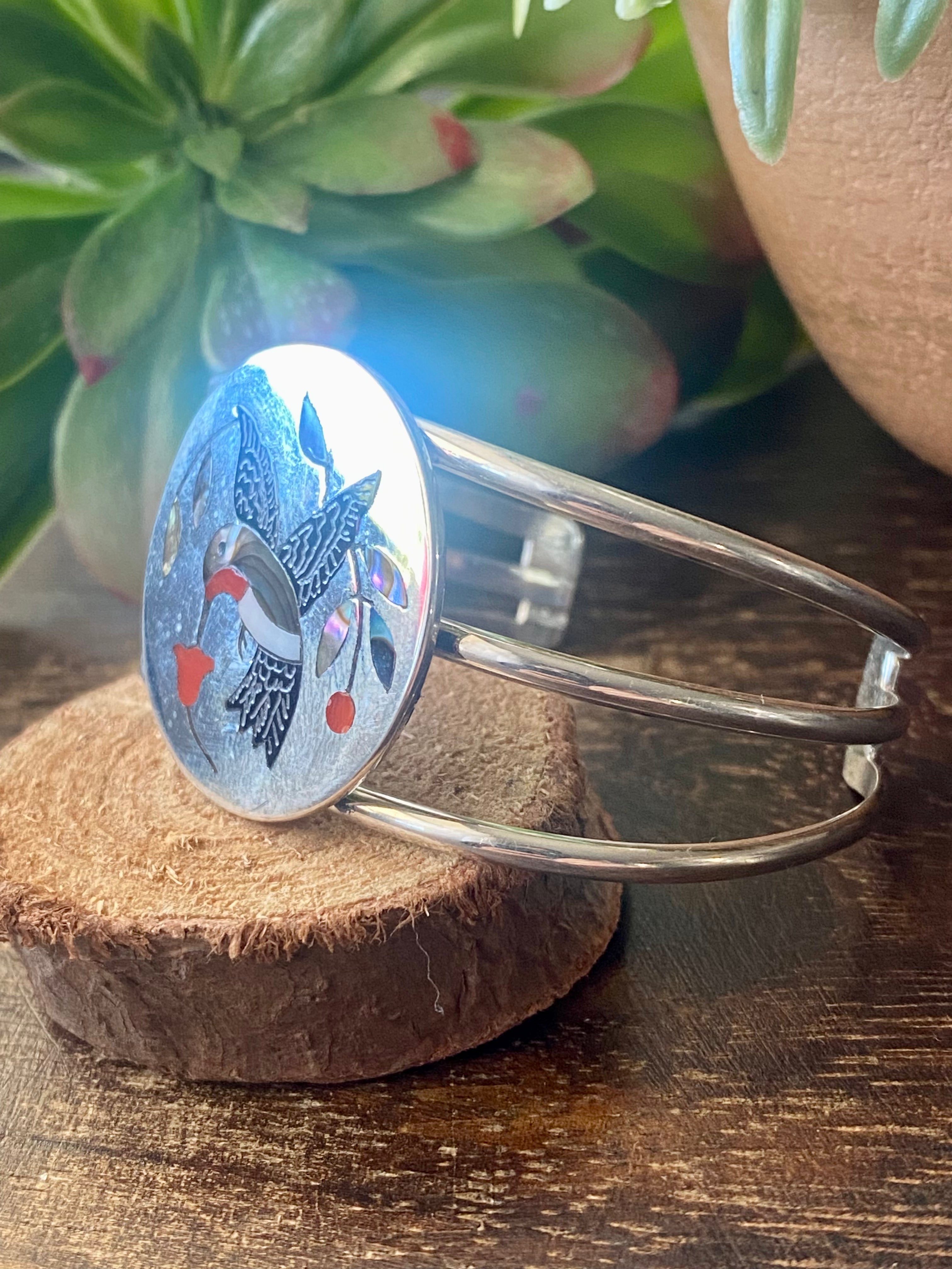 Zuni Made Multi Stone & Sterling Silver Micro-Inlay Cuff Bracelet