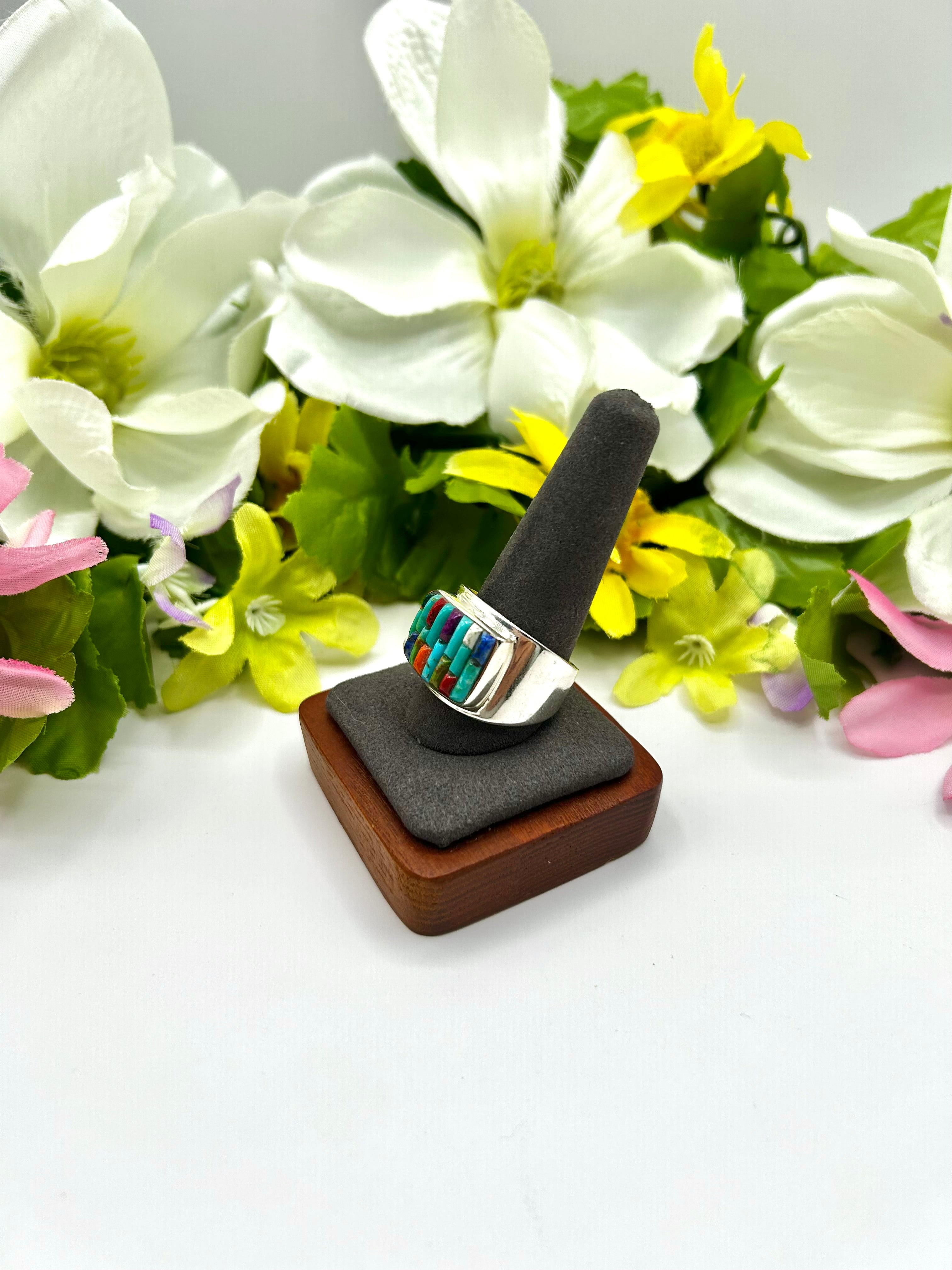 Navajo Made Multi Stone & Sterling Silver Ring Size 12