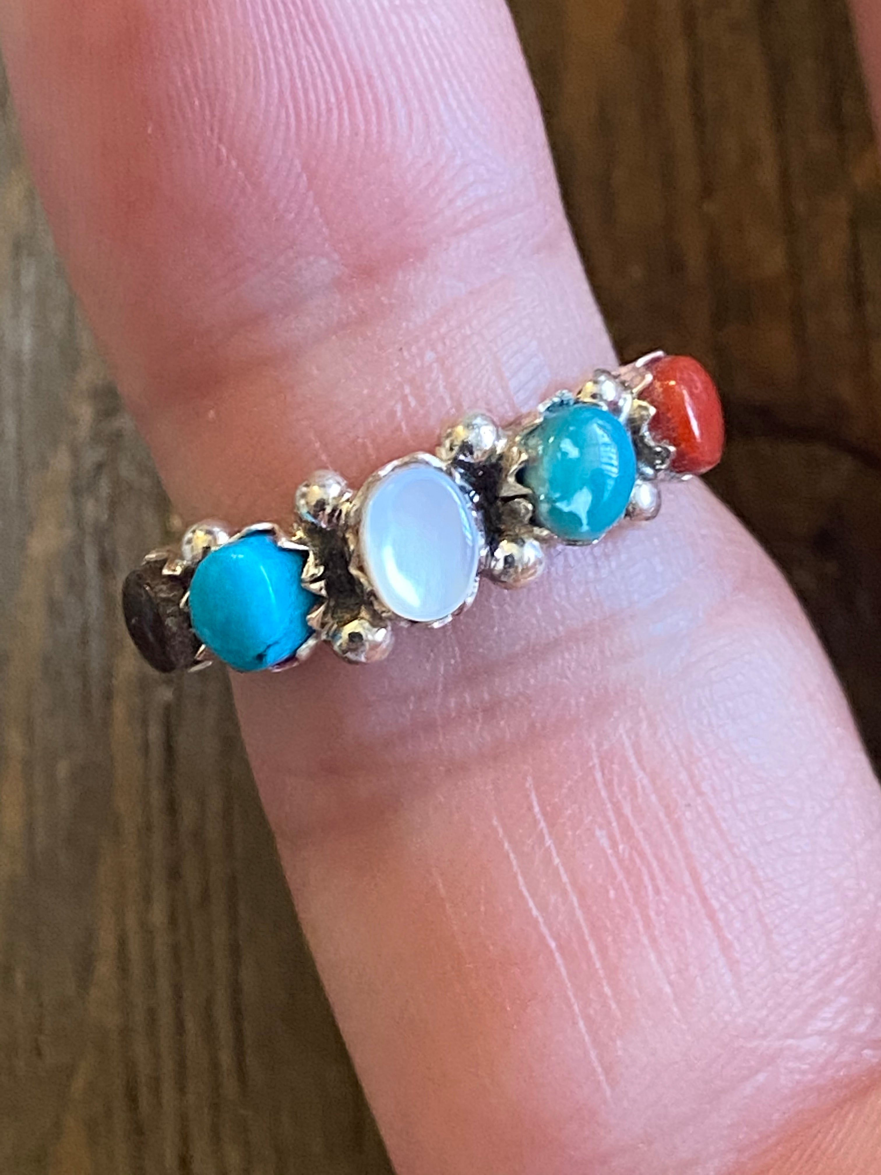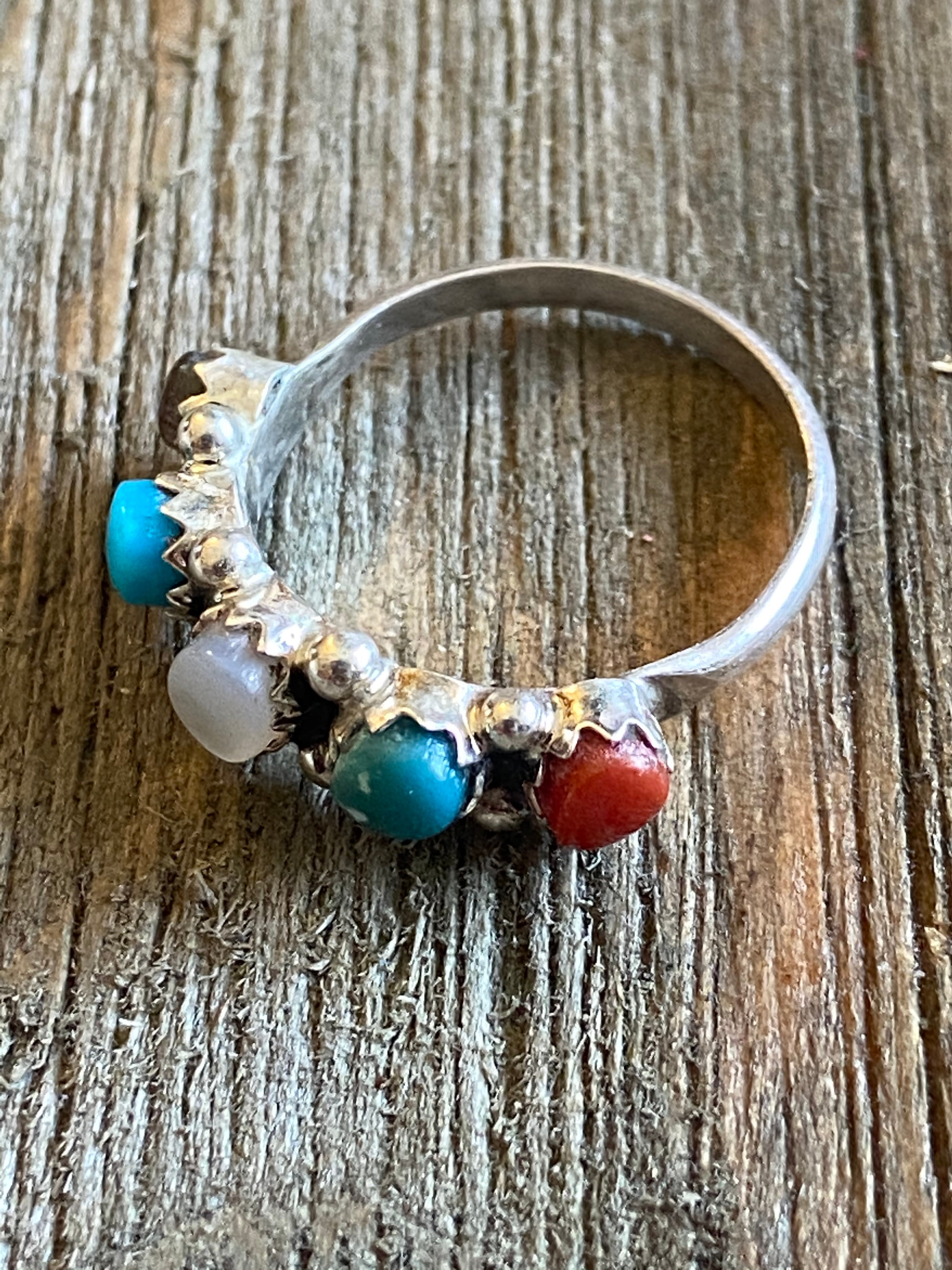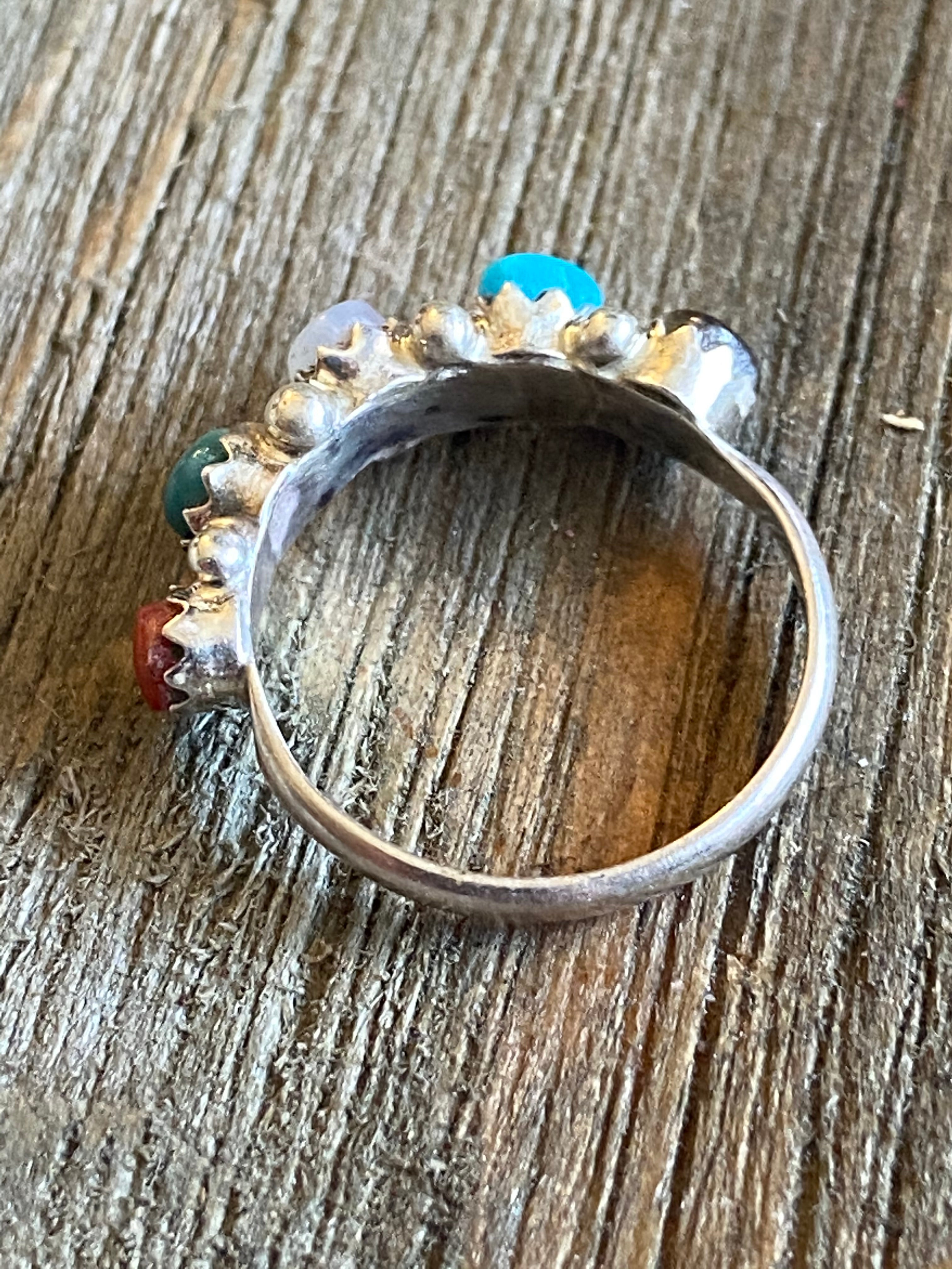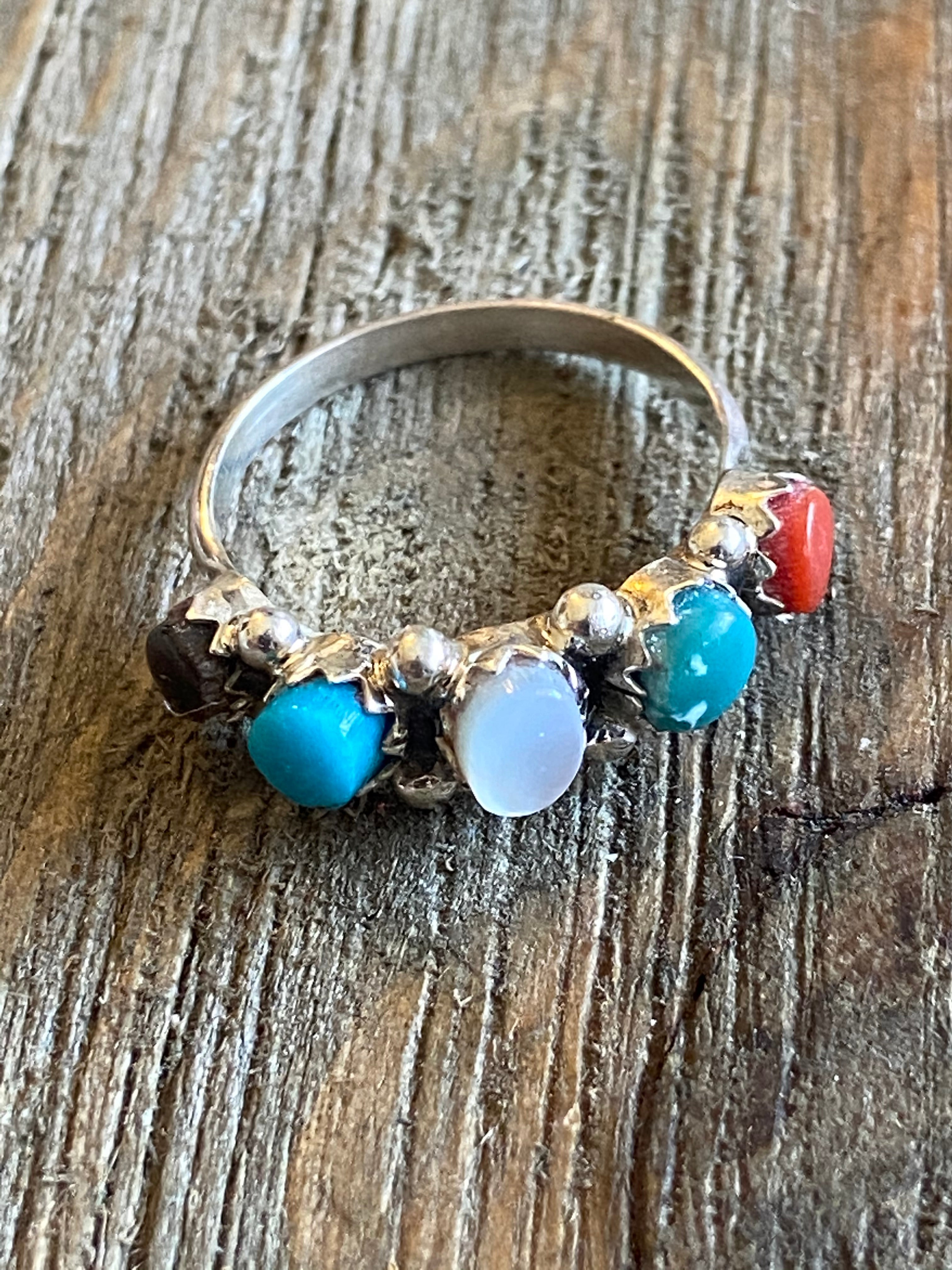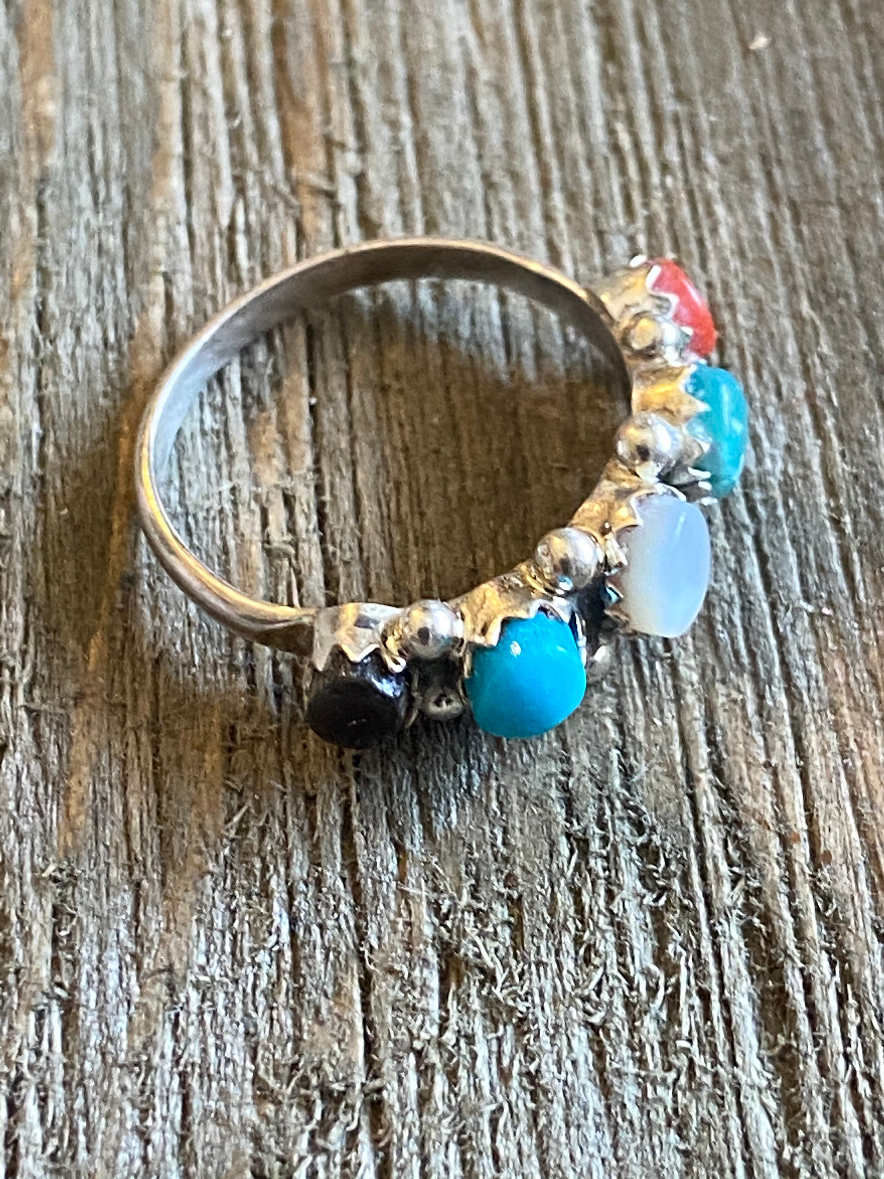 Zuni Multi Stone & Sterling Silver Ring Size 5