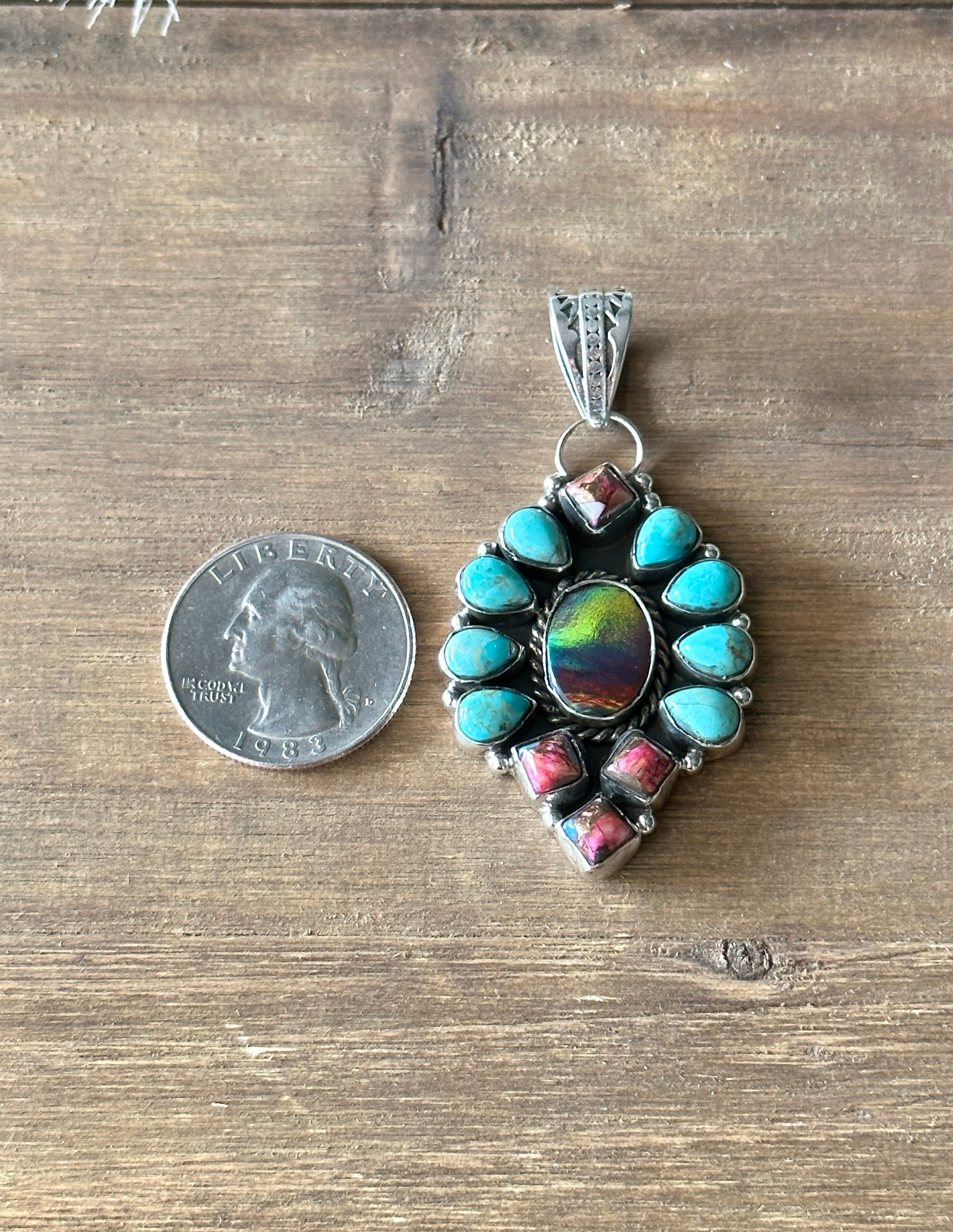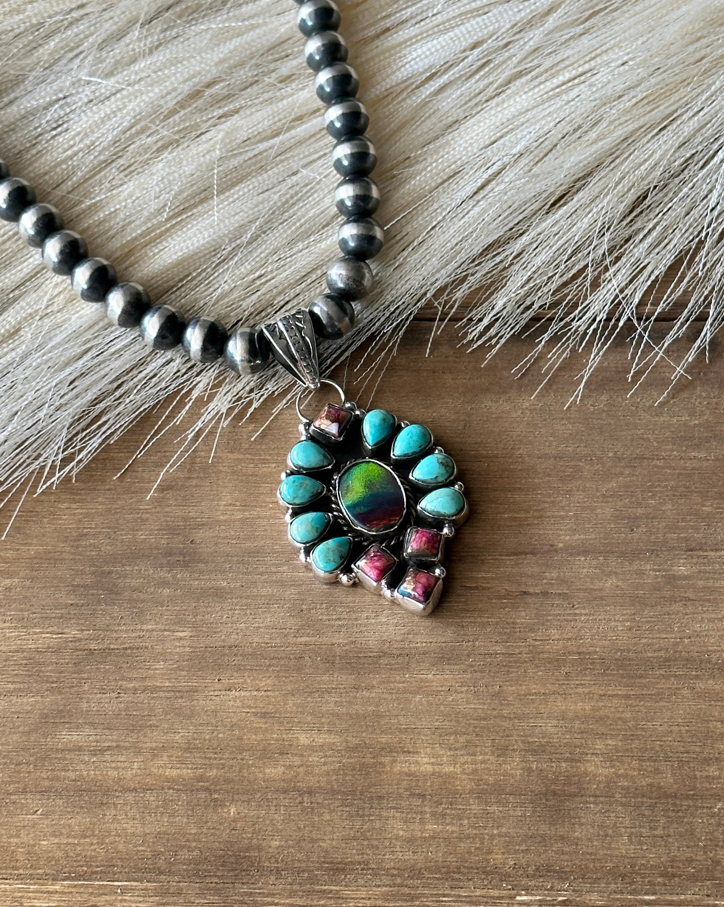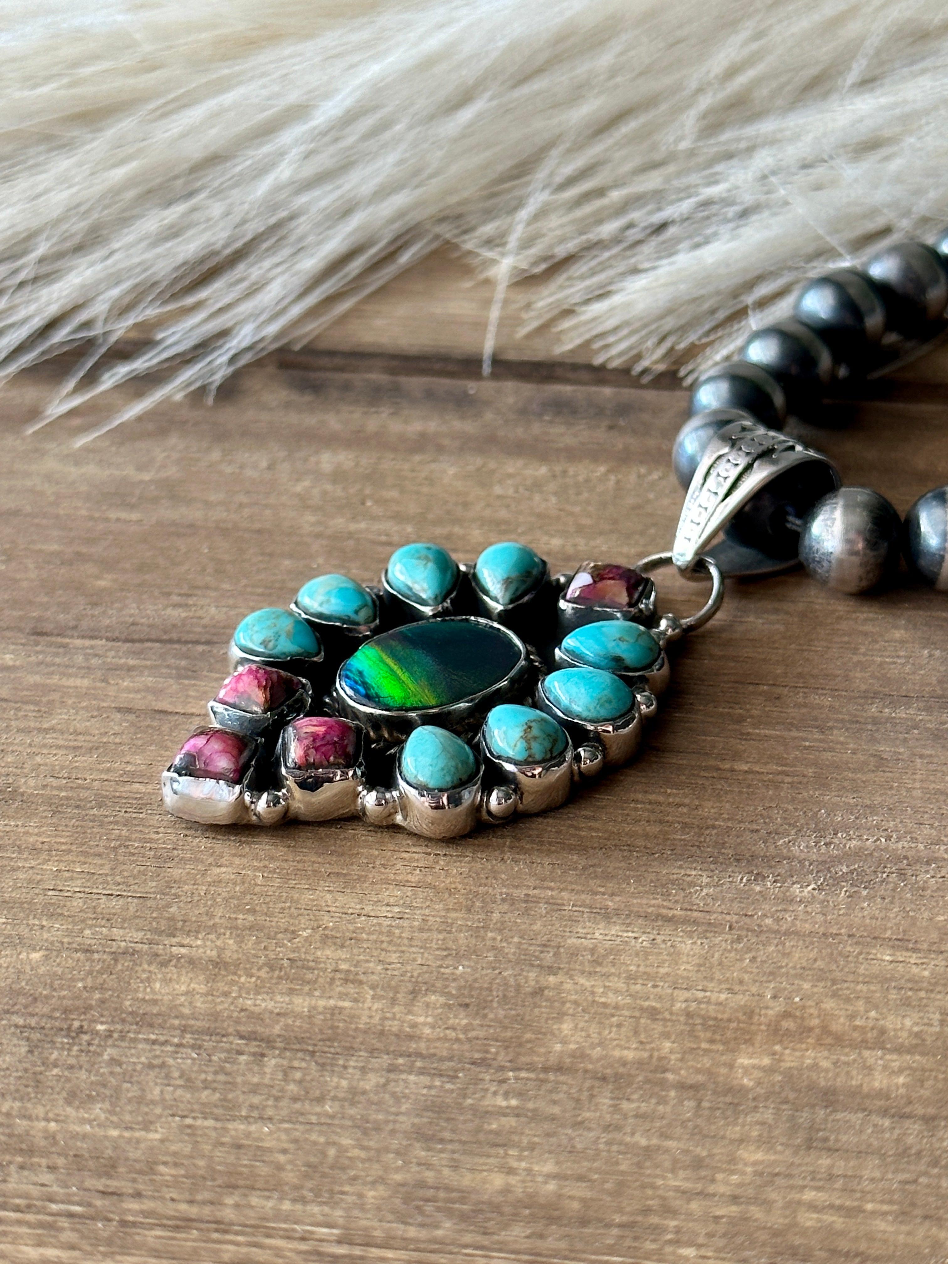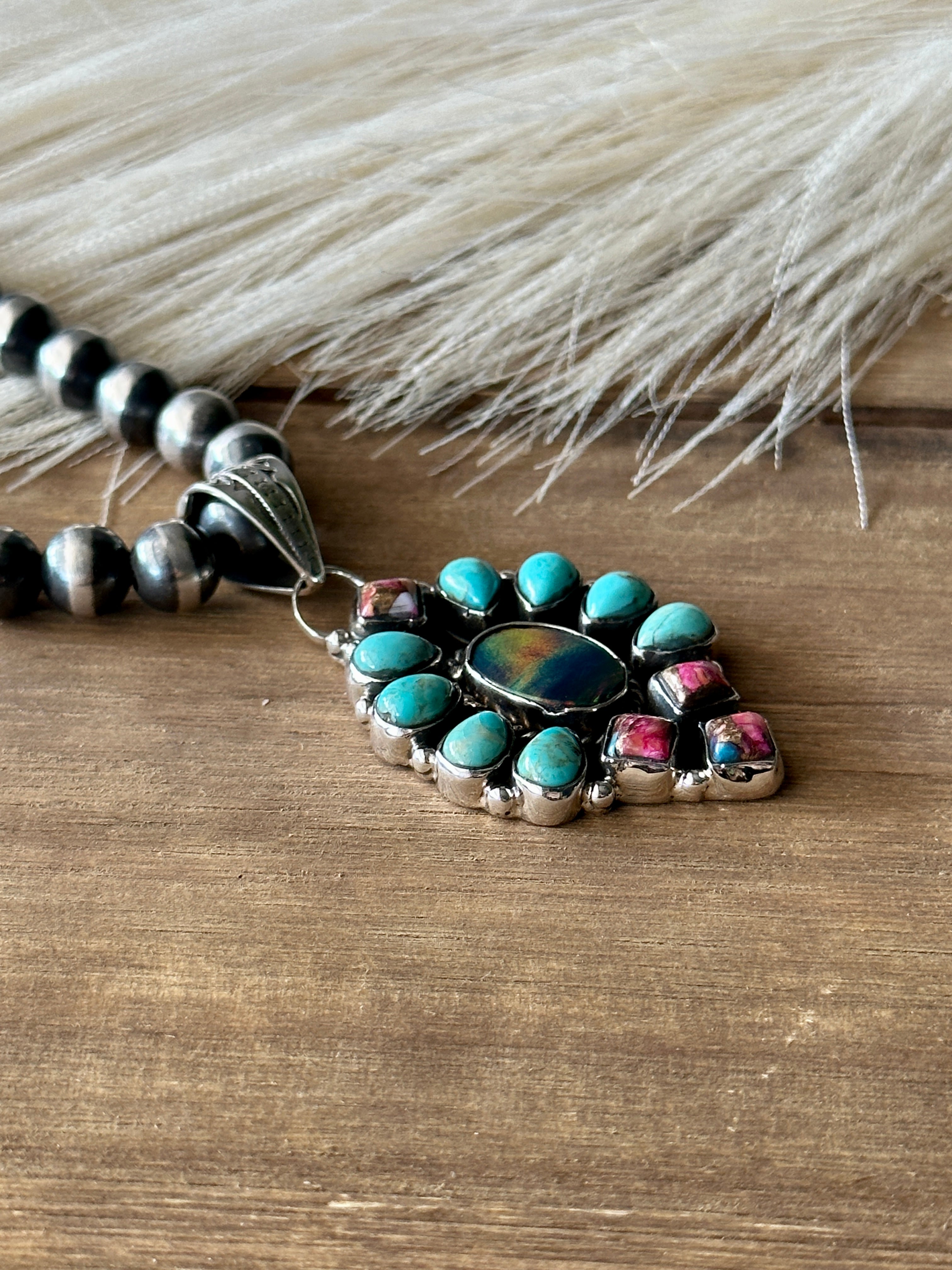 #3 Southwest Handmade Multi Stone & Sterling Silver Cluster Pendant