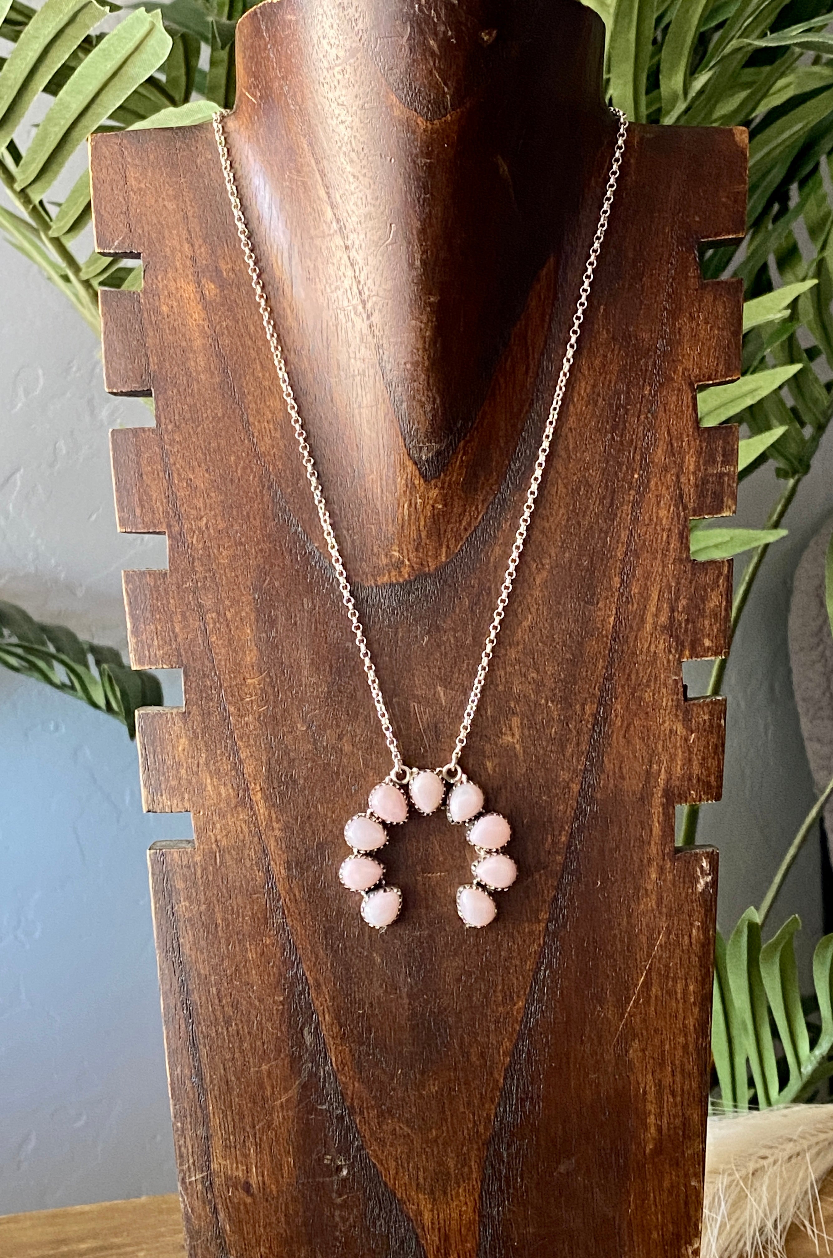 #3 Southwest Handmade Pink Opal & Sterling Silver Naja Necklace