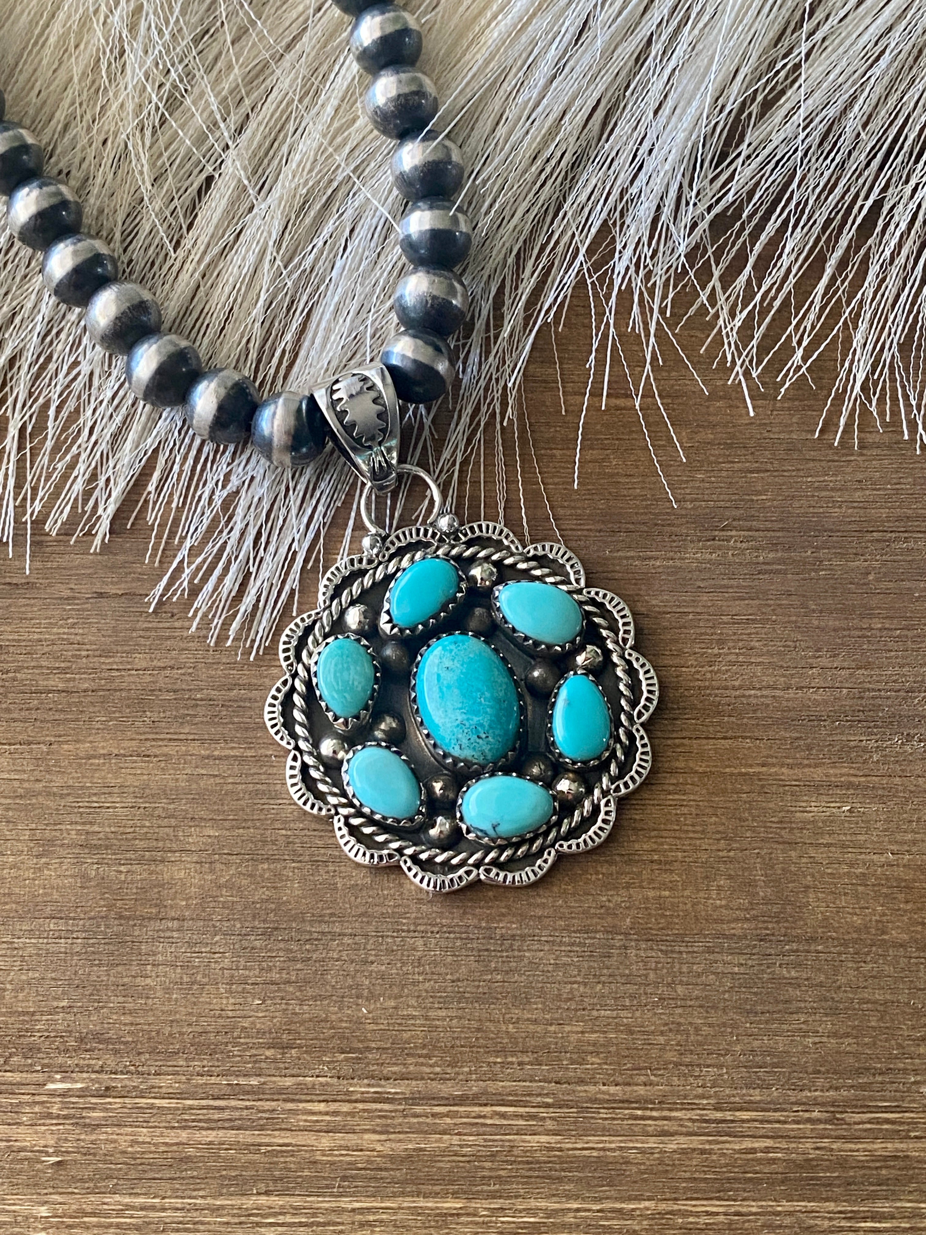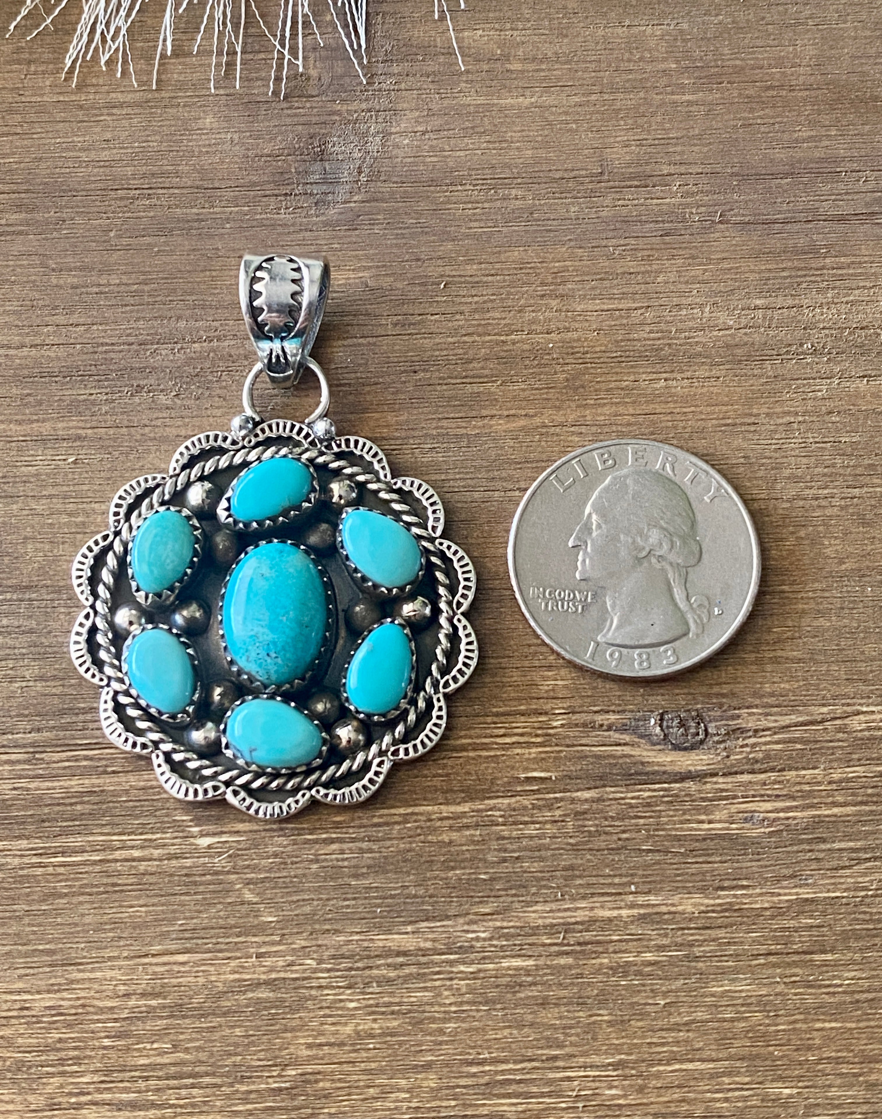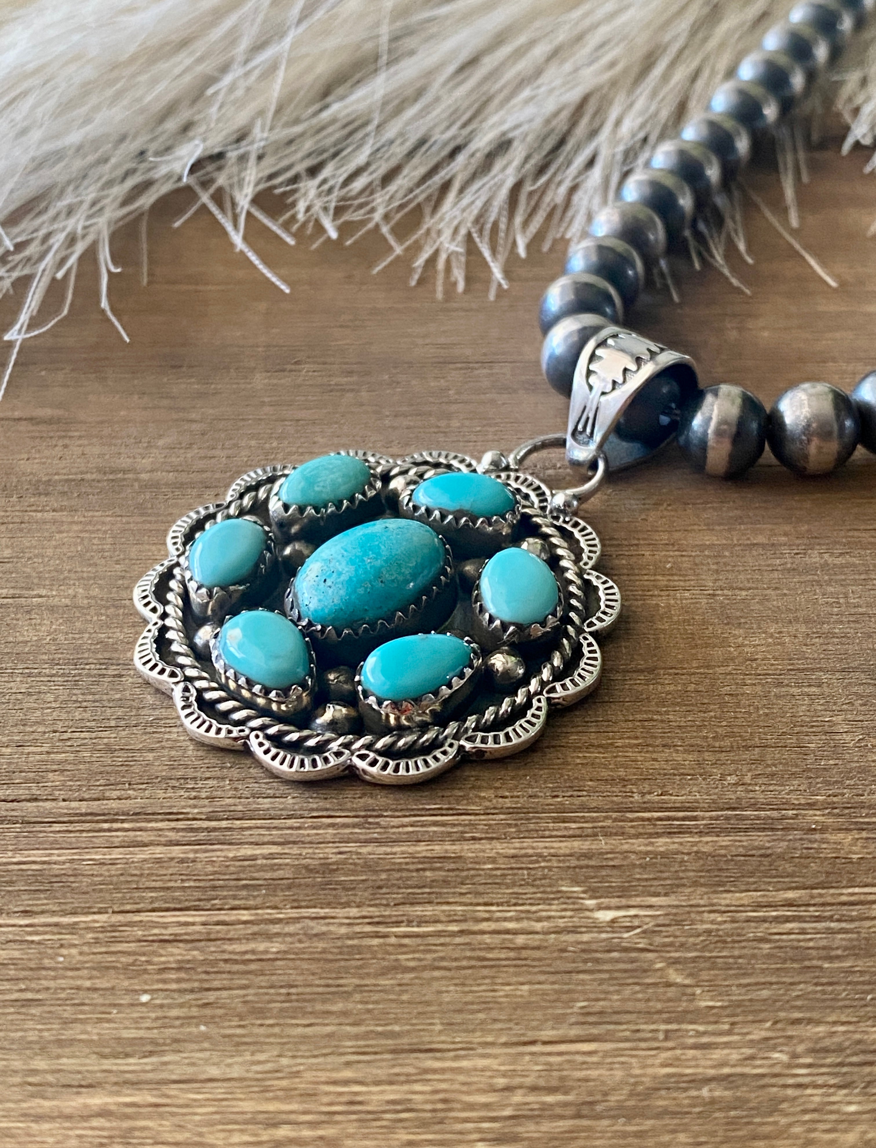 #5 Southwest Handmade Kingman Turquoise & Sterling Silver Cluster Pendant