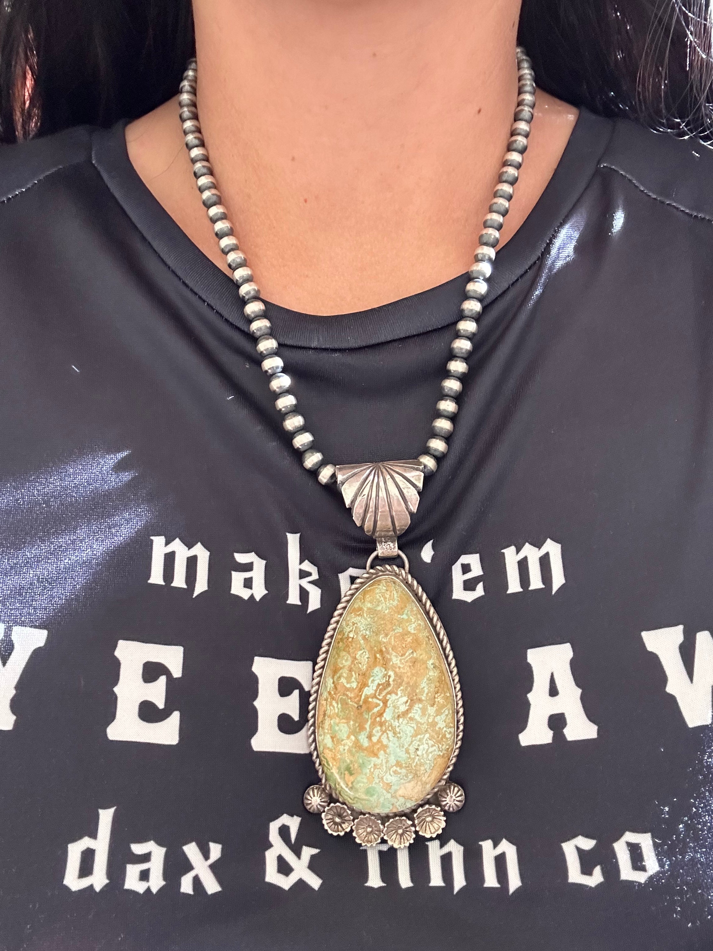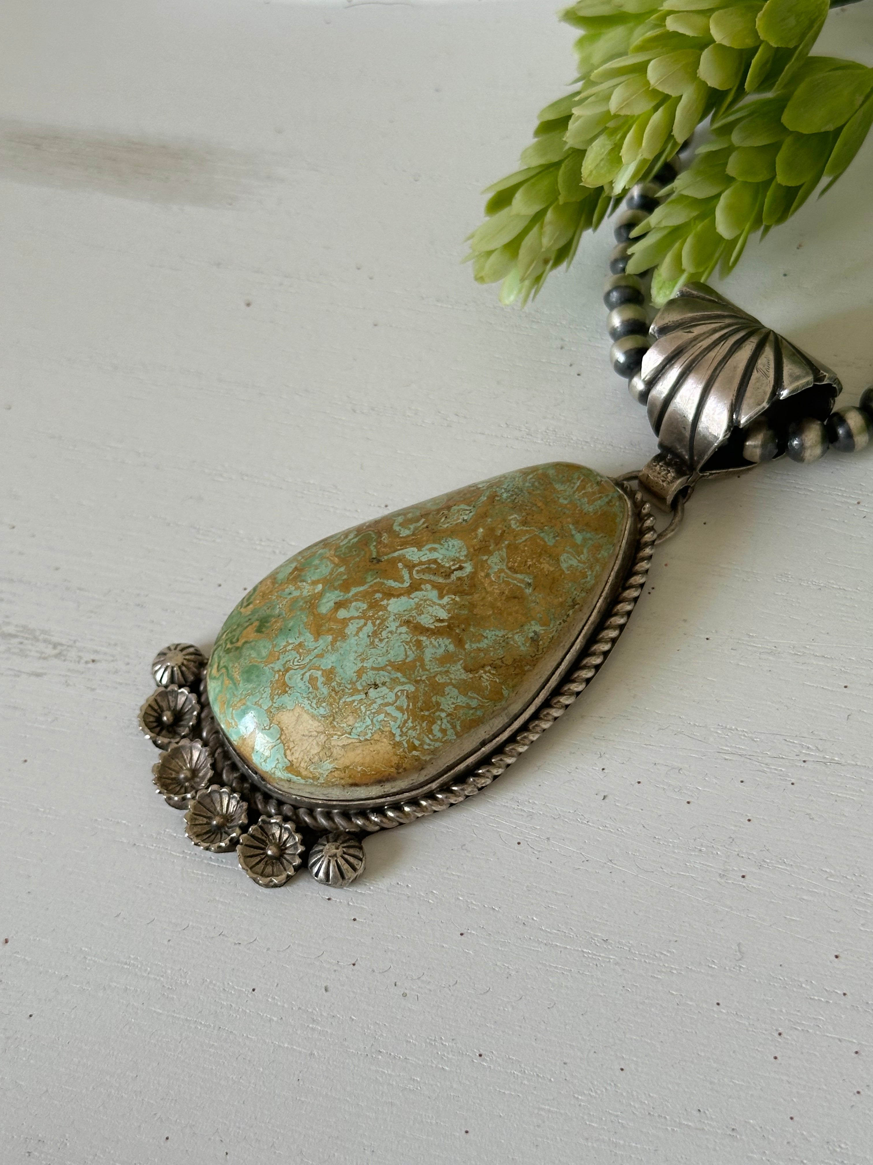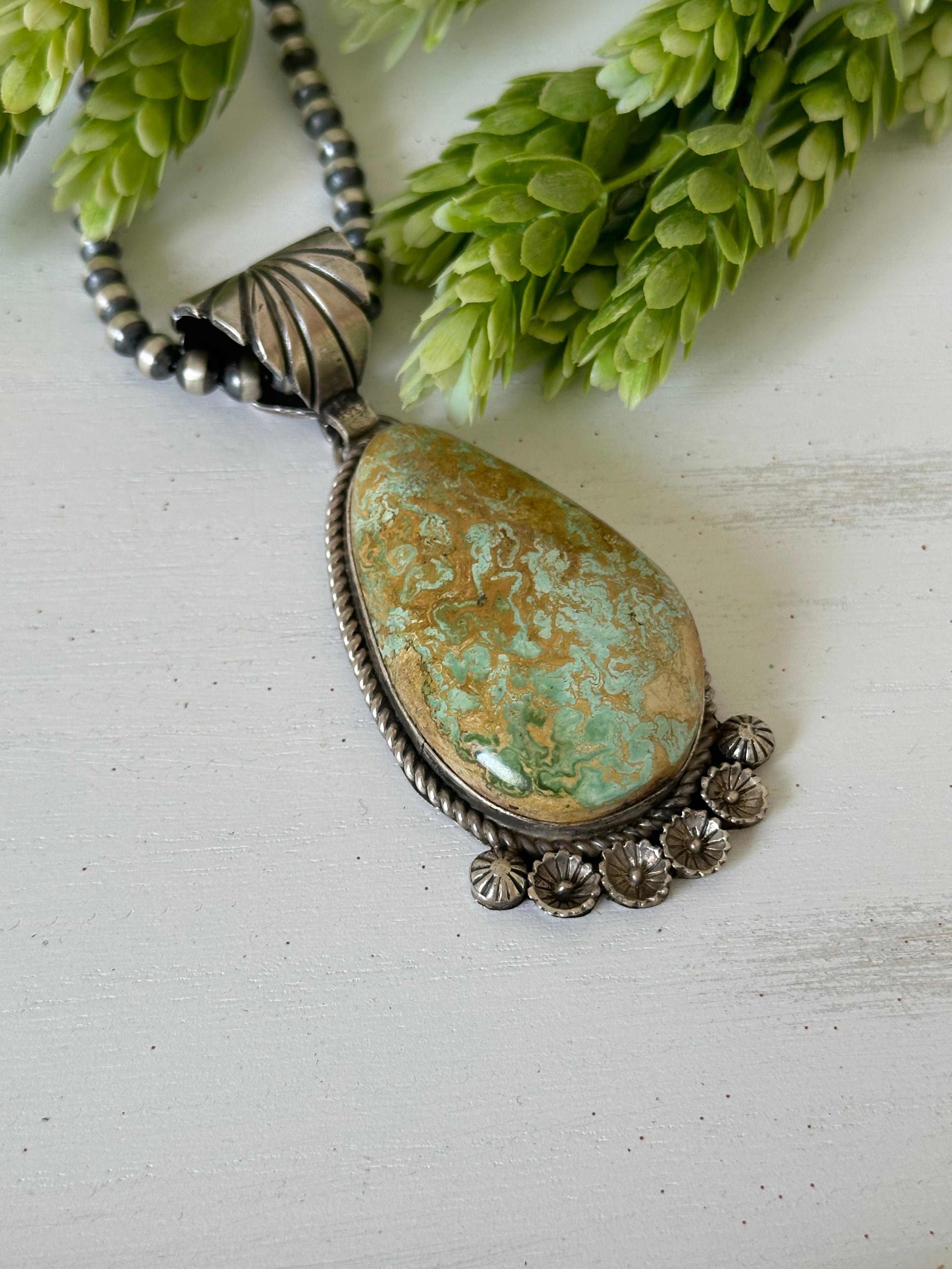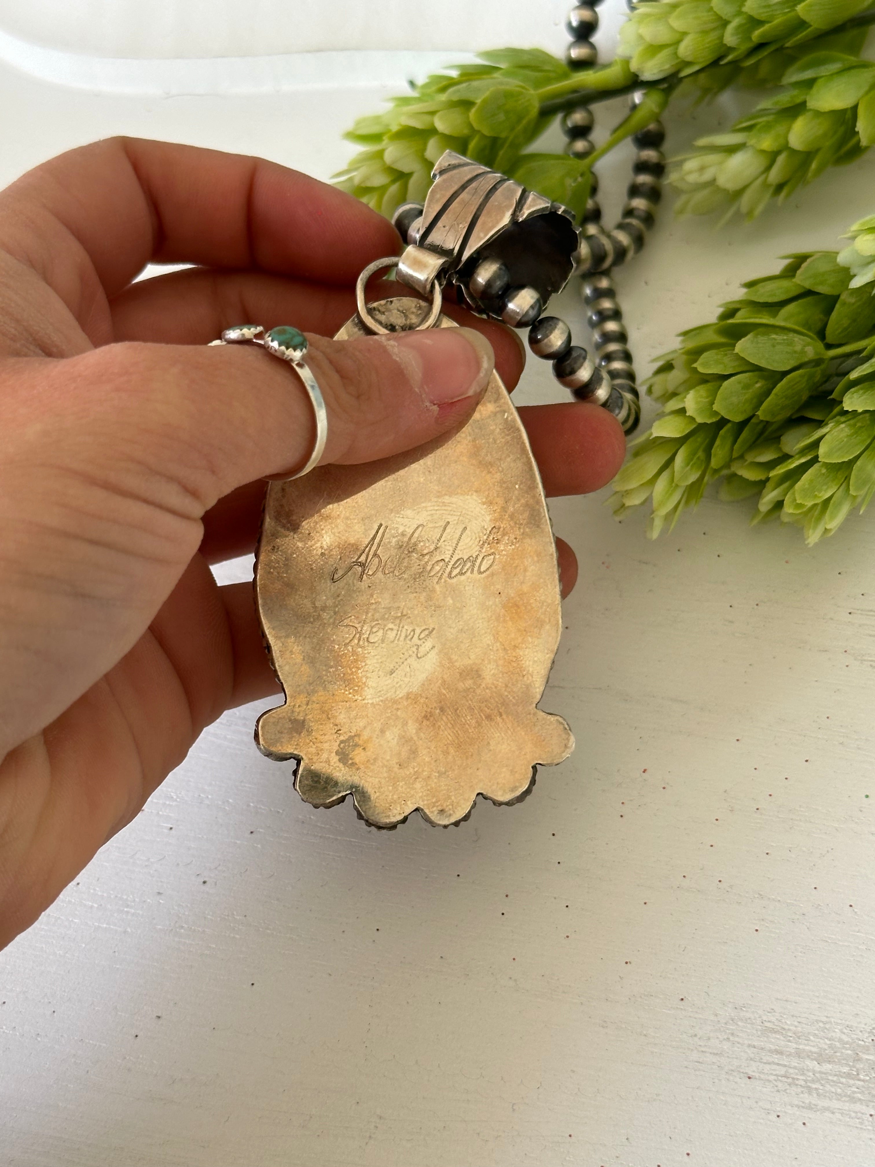 Abel Toledo Royston Turquoise & Sterling Silver Pendant. It measures 4 inches long and 1 5/8 inches wide. Pendant Only!! Signed by the artist and stamped sterling silver.