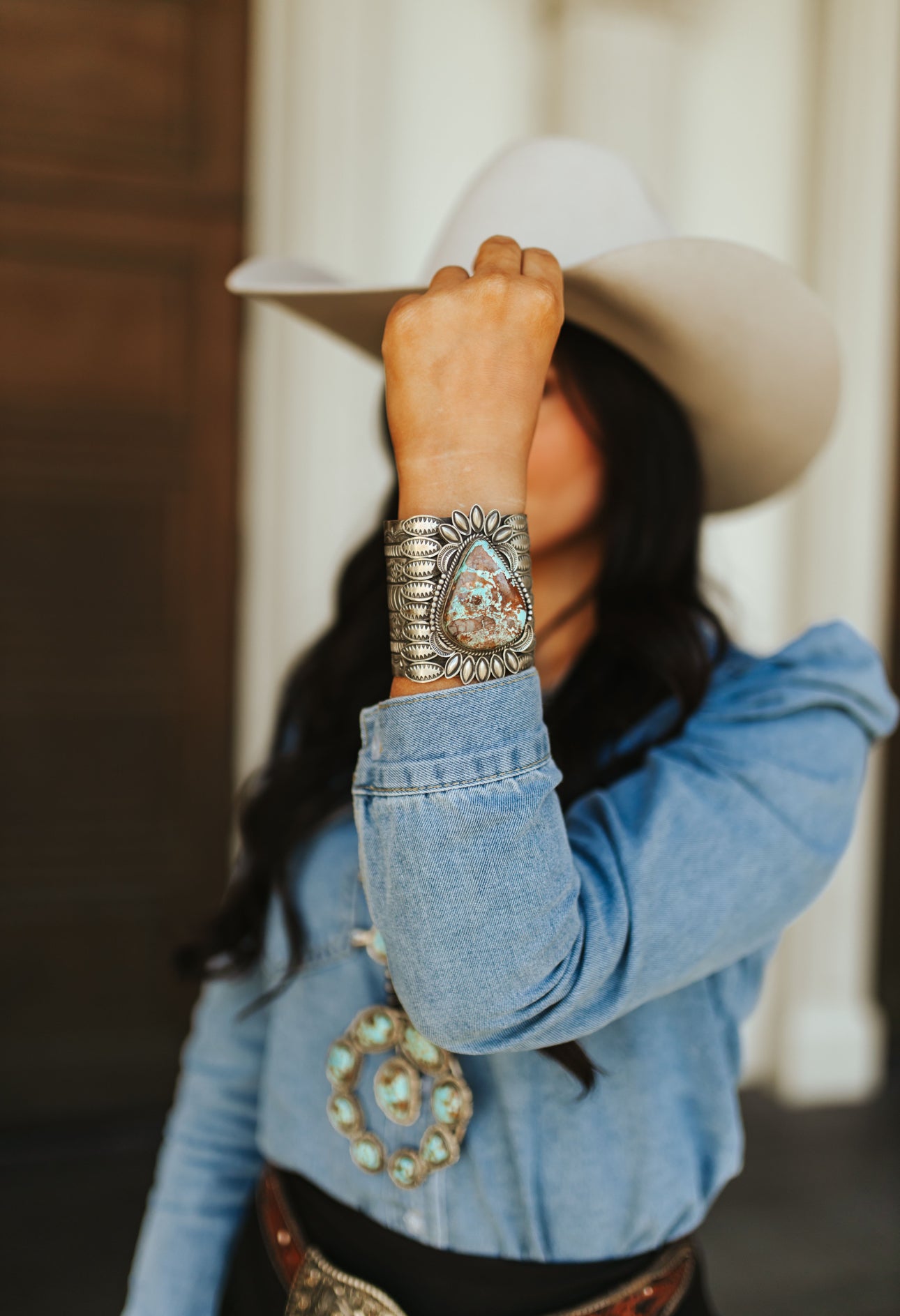 Alex Sanchez Natural Royston Turquoise & Sterling Silver Cuff Bracelet