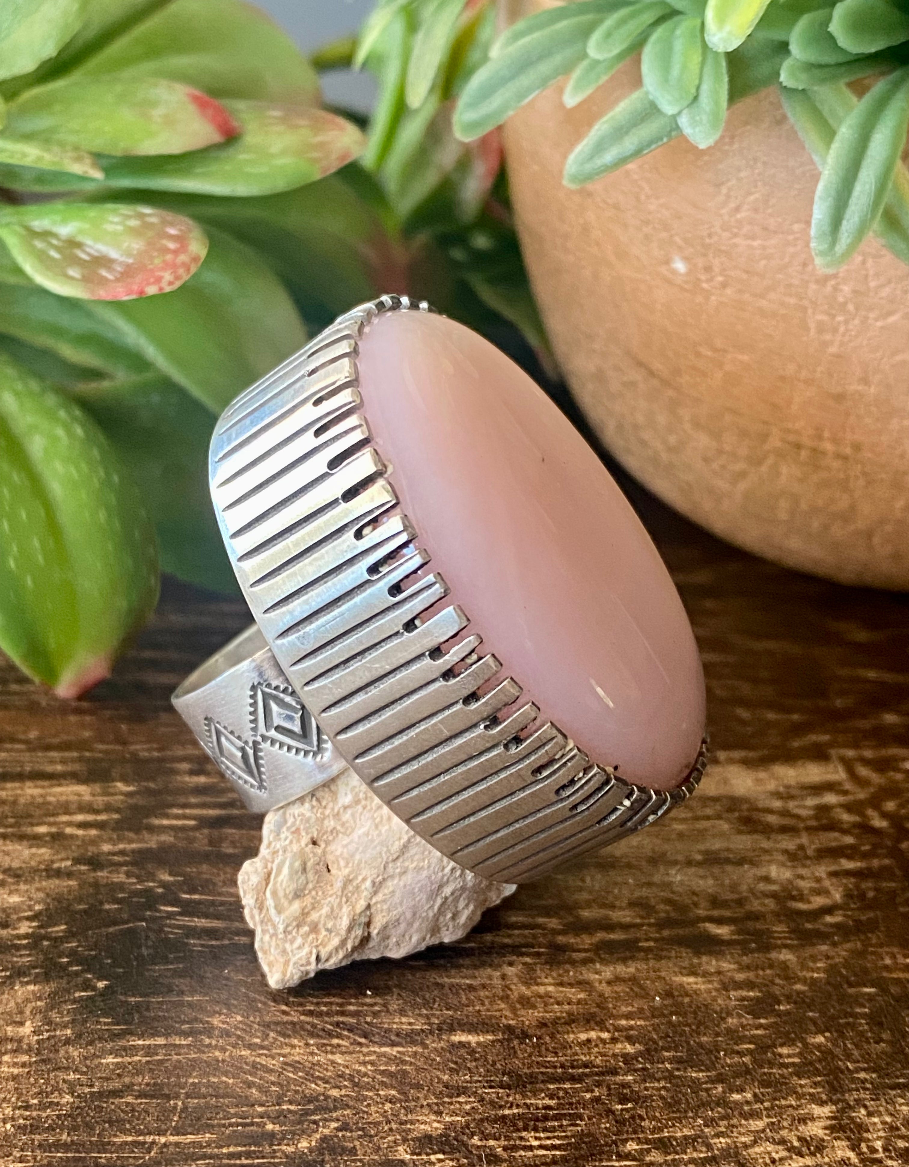 Alex Sanchez Pink Coral & Sterling Silver Ring Size 6.5