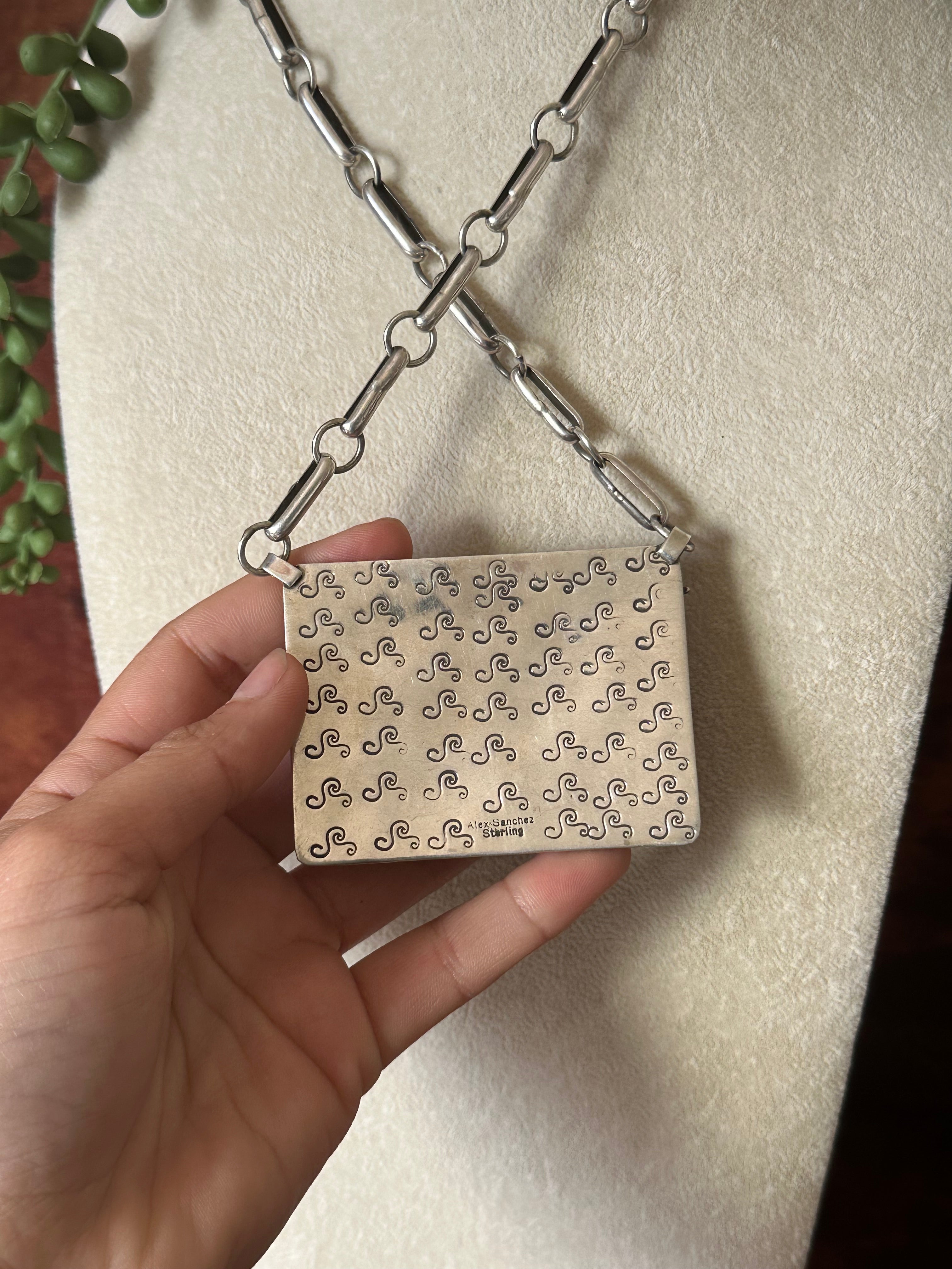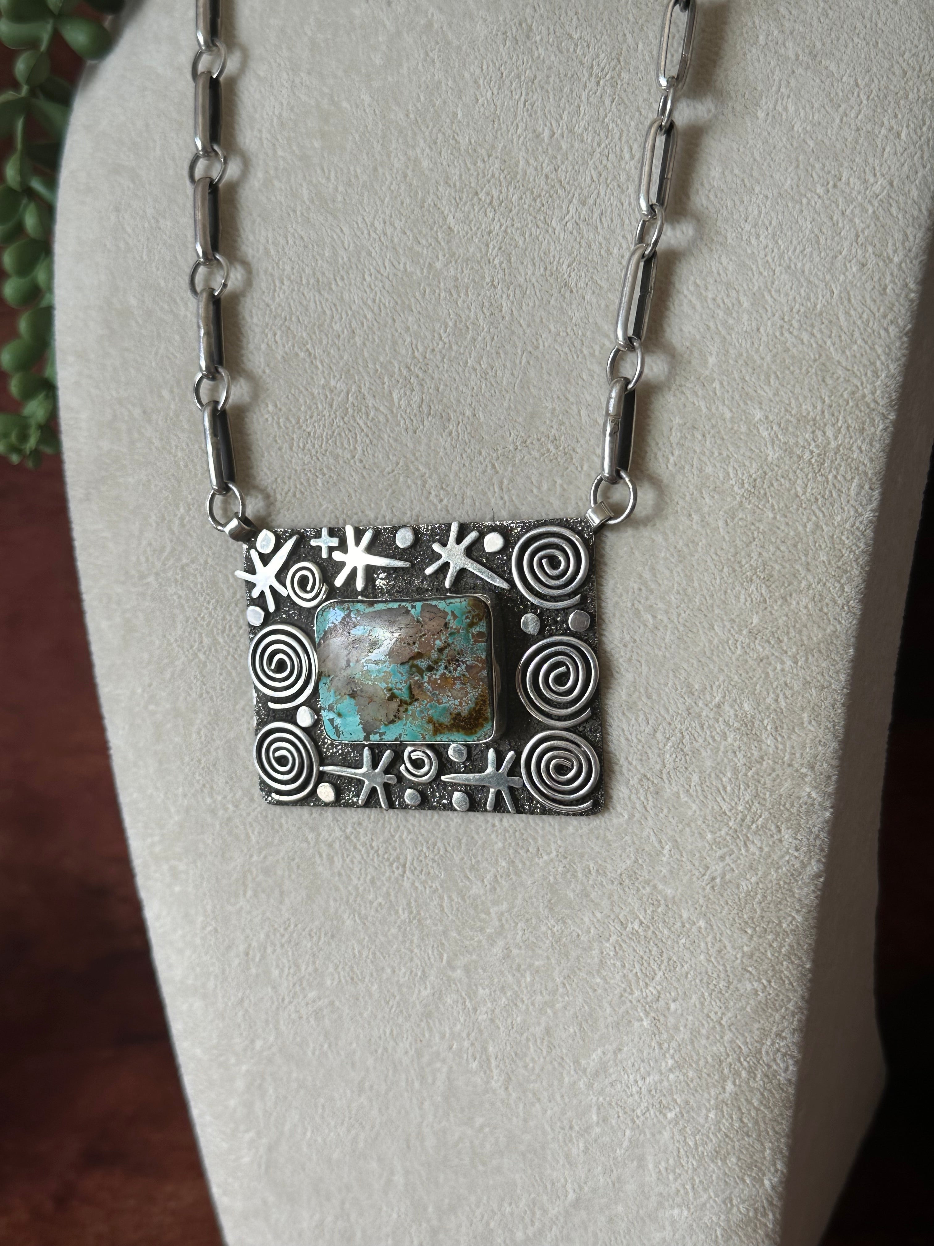 Beautiful Necklace. Alex Sanchez Royston Turquoise & Sterling Silver Necklace. It measures 22 inches long with hang while the chain measures 18 inches long. Signed by the artist and stamped sterling silver.