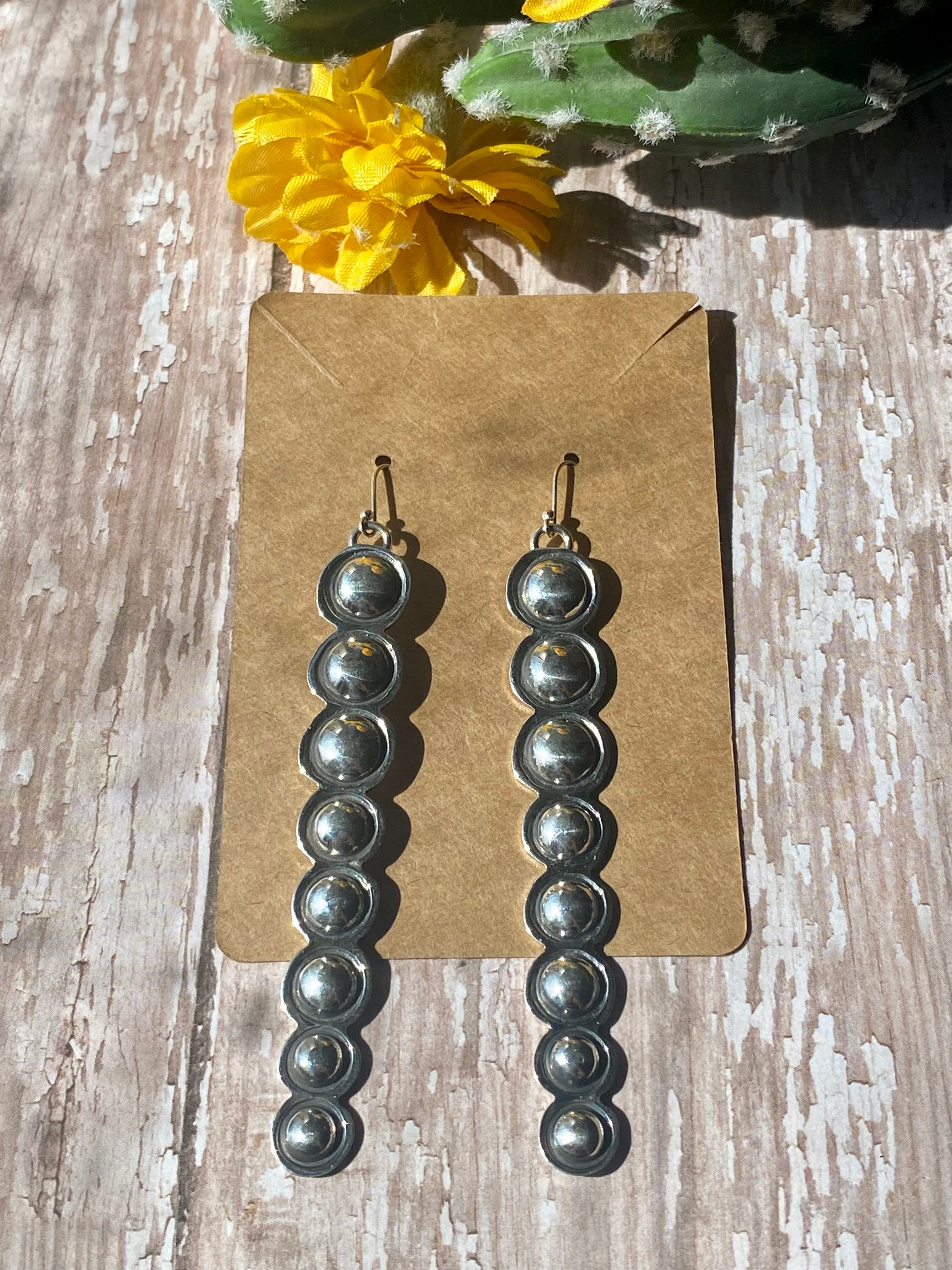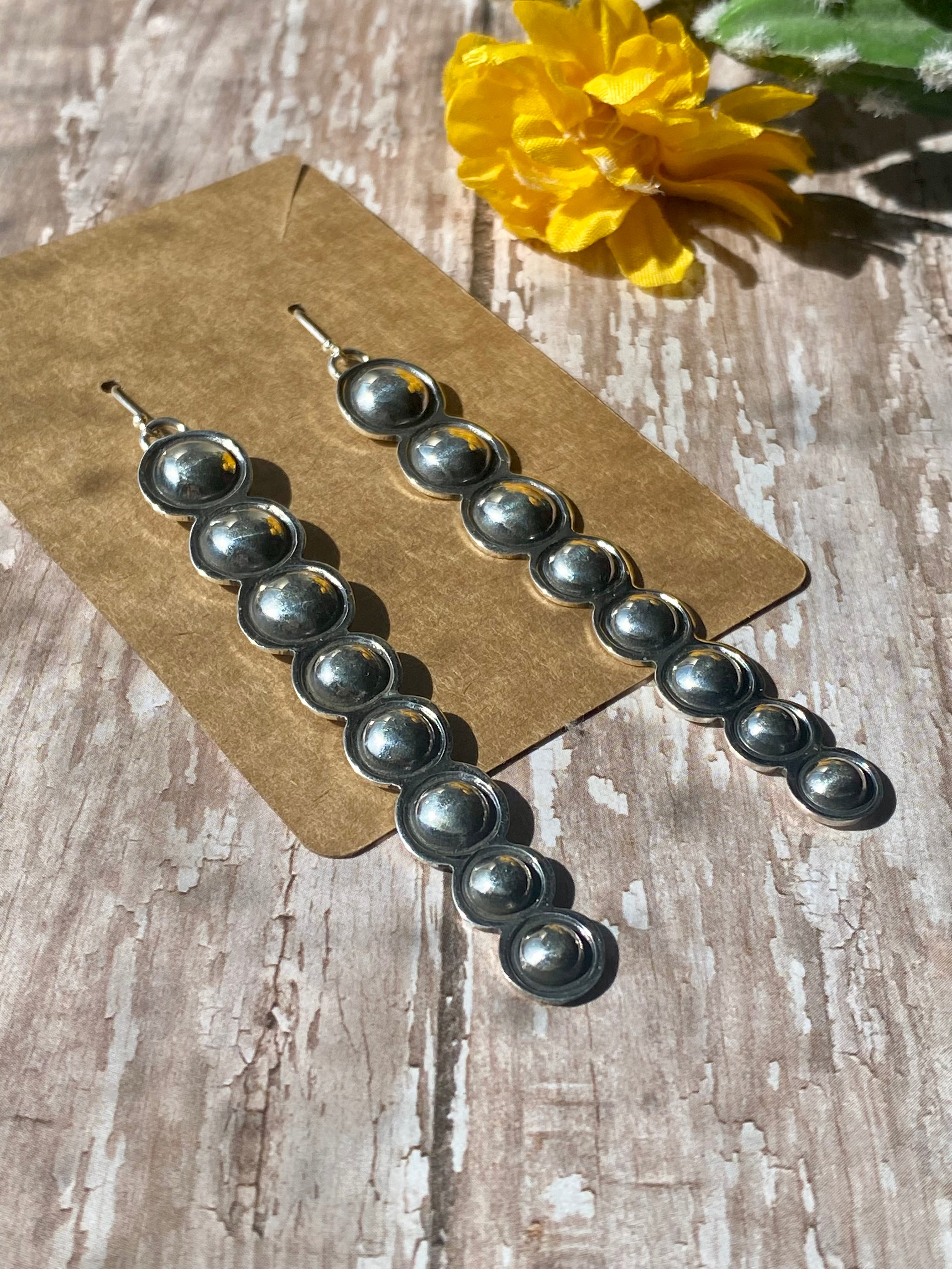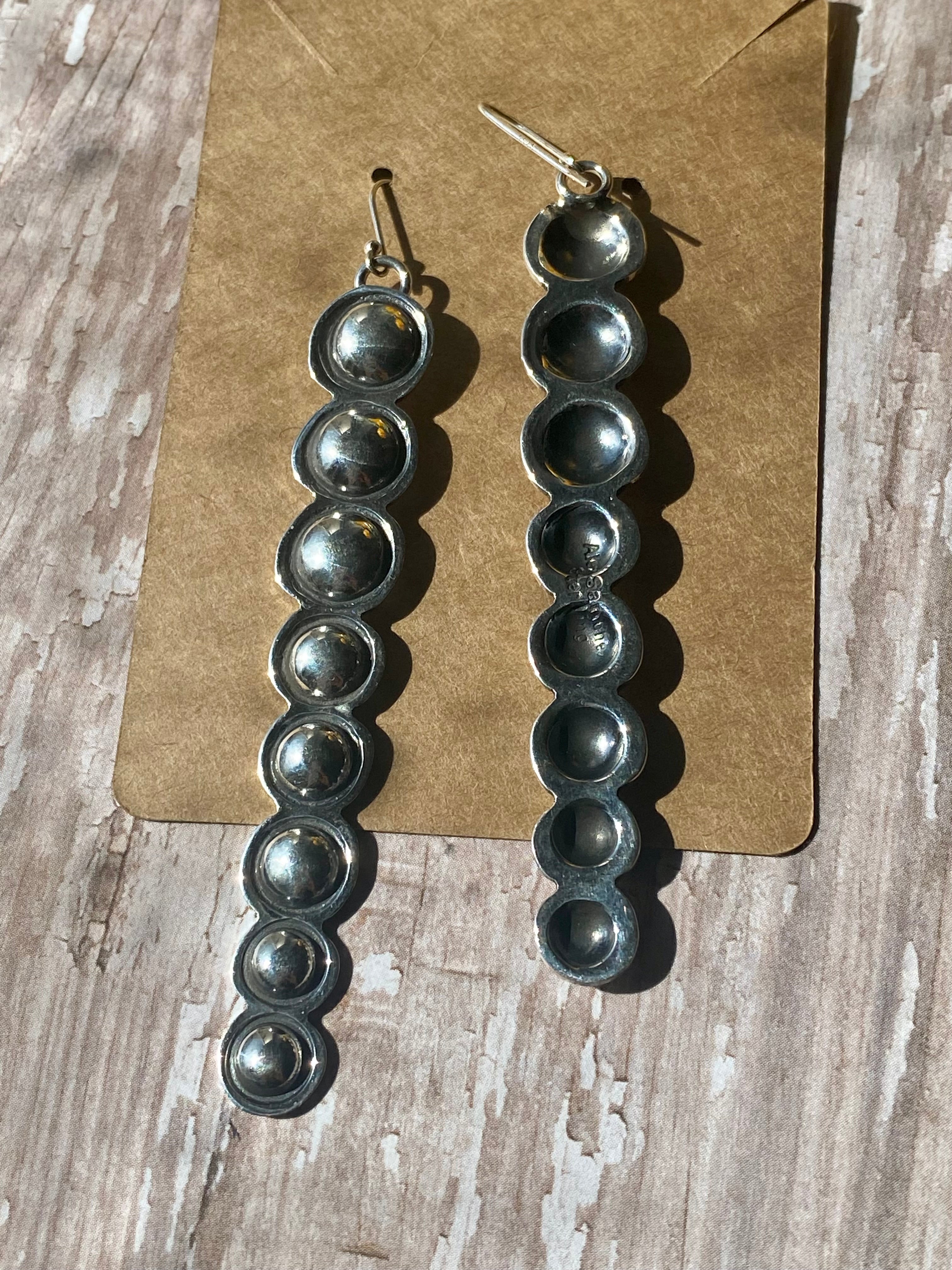 Alex Sanchez Sterling Silver Dangle Earrings. They measures just over 3 1/2 inches long and 1/2 of an inch wide. Signed by the artist and stamped sterling silver.