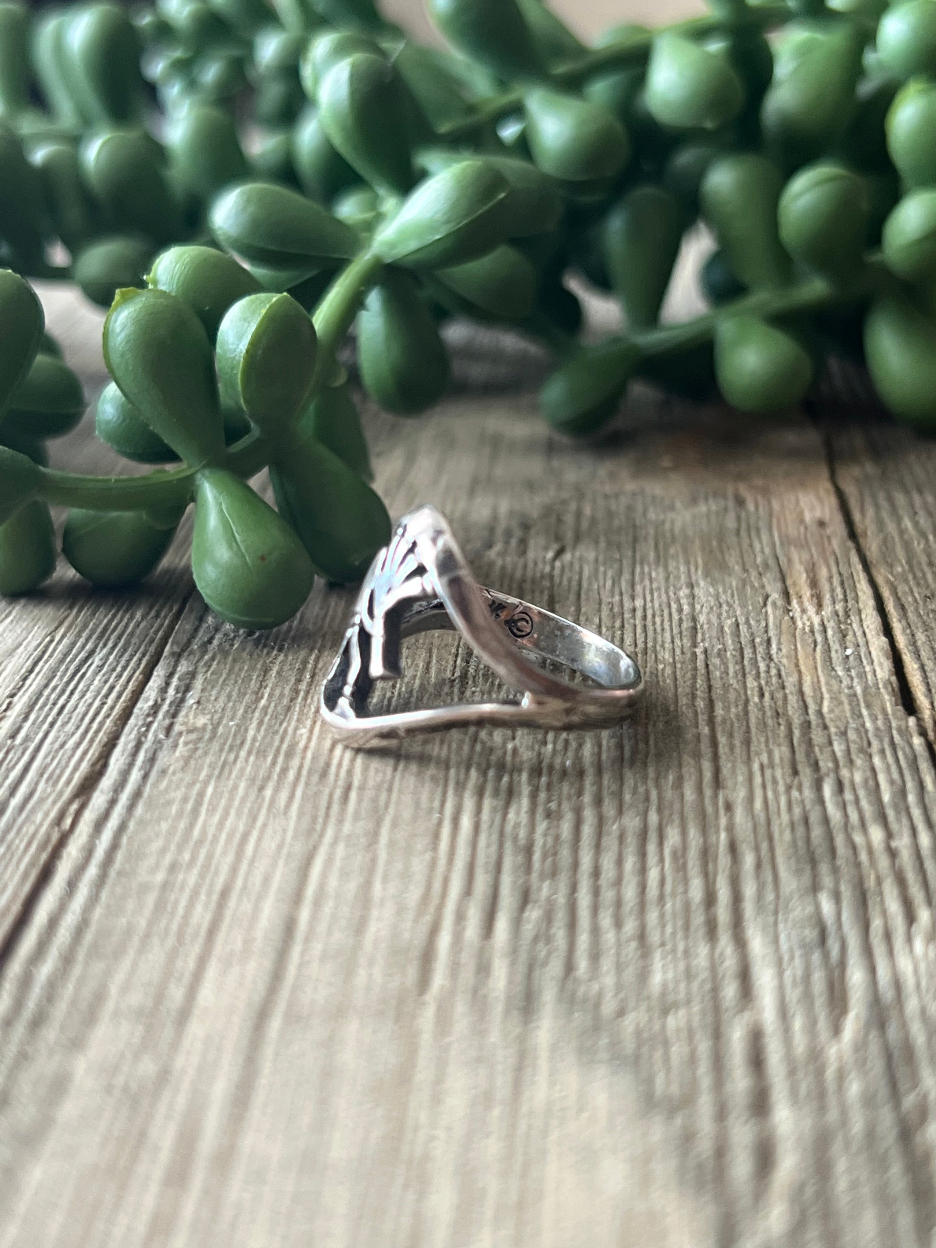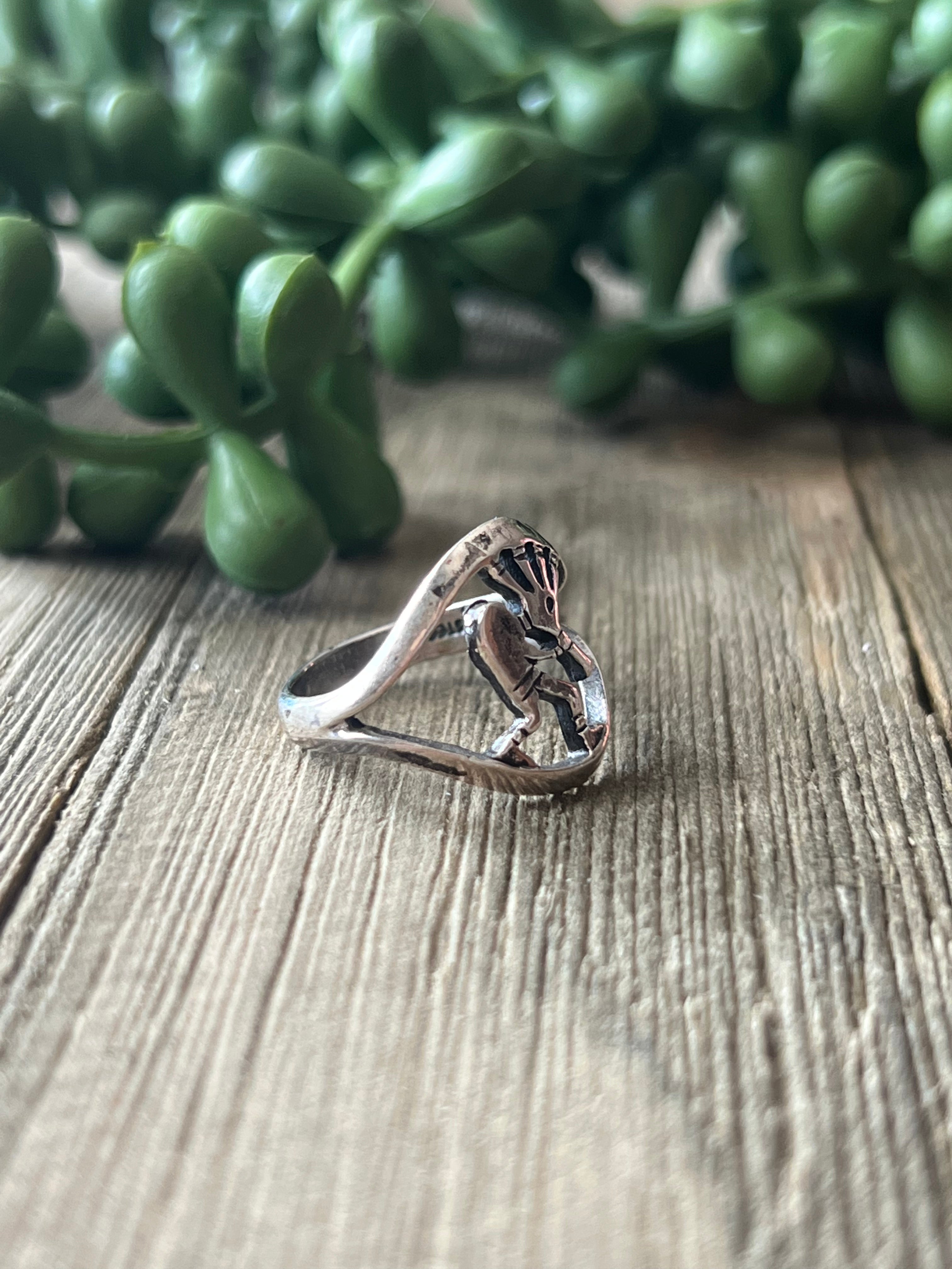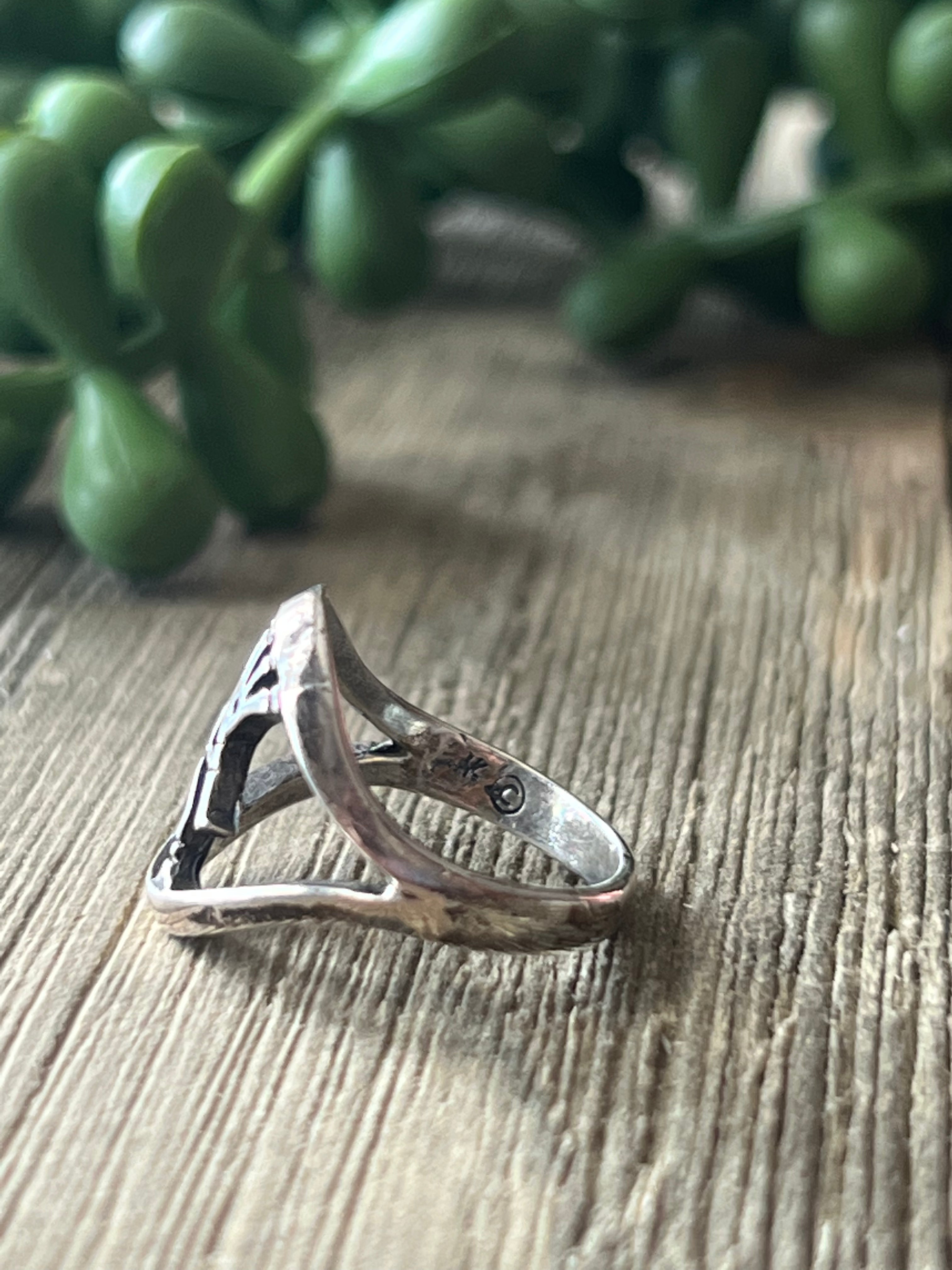 Allen Tolino Sterling Silver Ring Size 4.5. It measures 5/8 of an inch long. Signed by artist and stamped sterling silver.