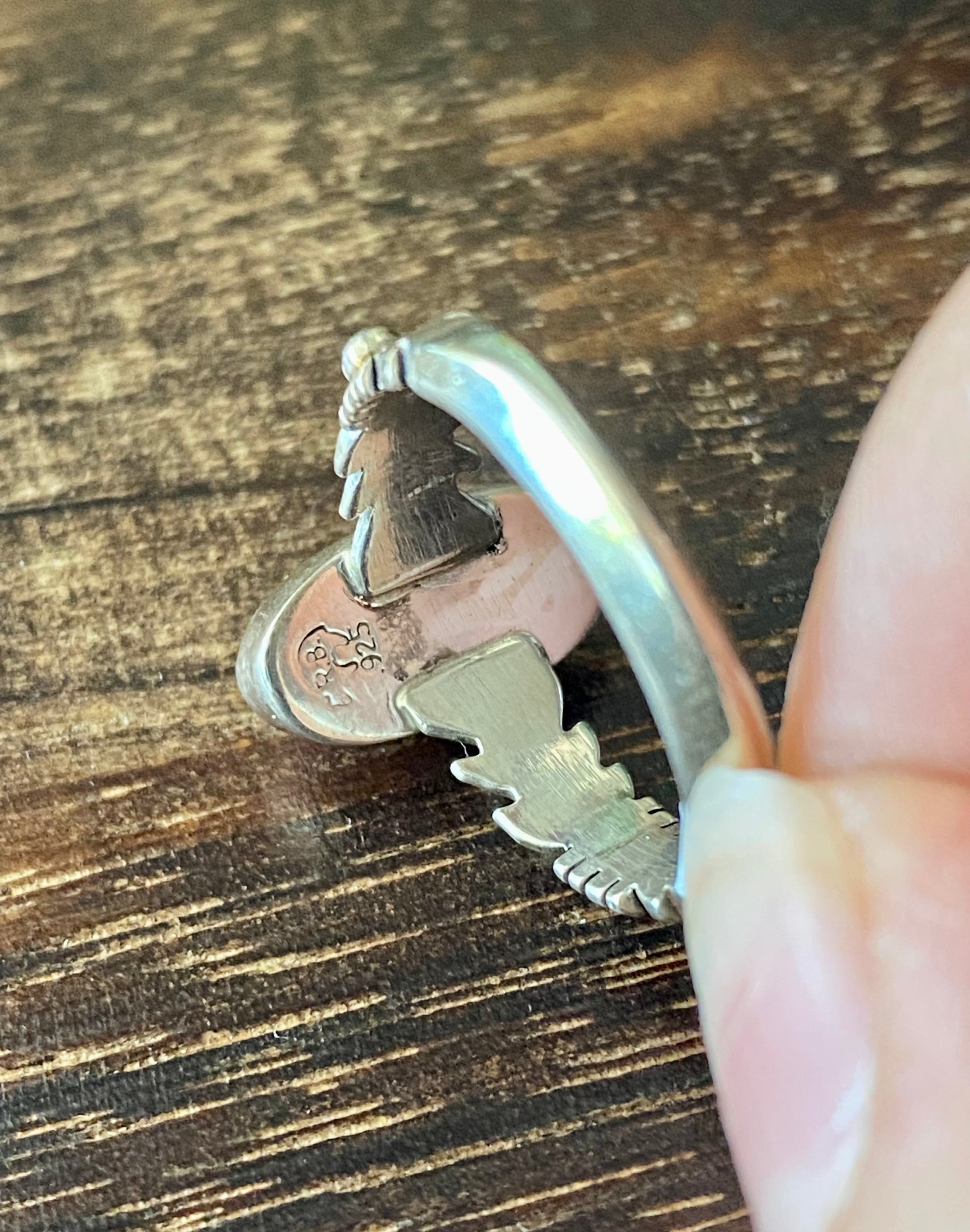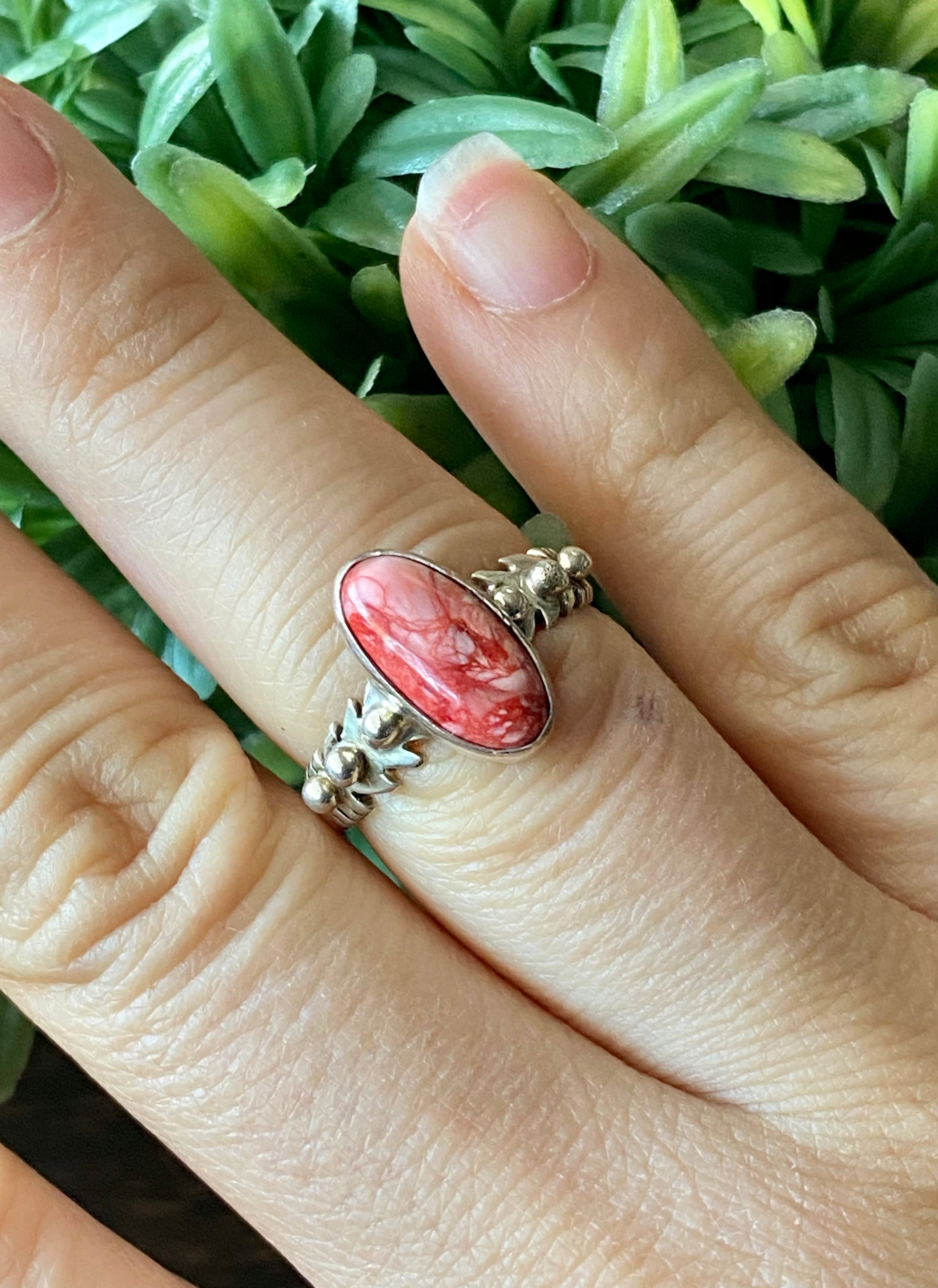 Andrew Vandever Spiny Oys & Sterling Silver Ring Size 7.75. It measures just over 1/2 of an inch long and 3/4 of an inch wide. Signed by the artist and stamped sterling silver.