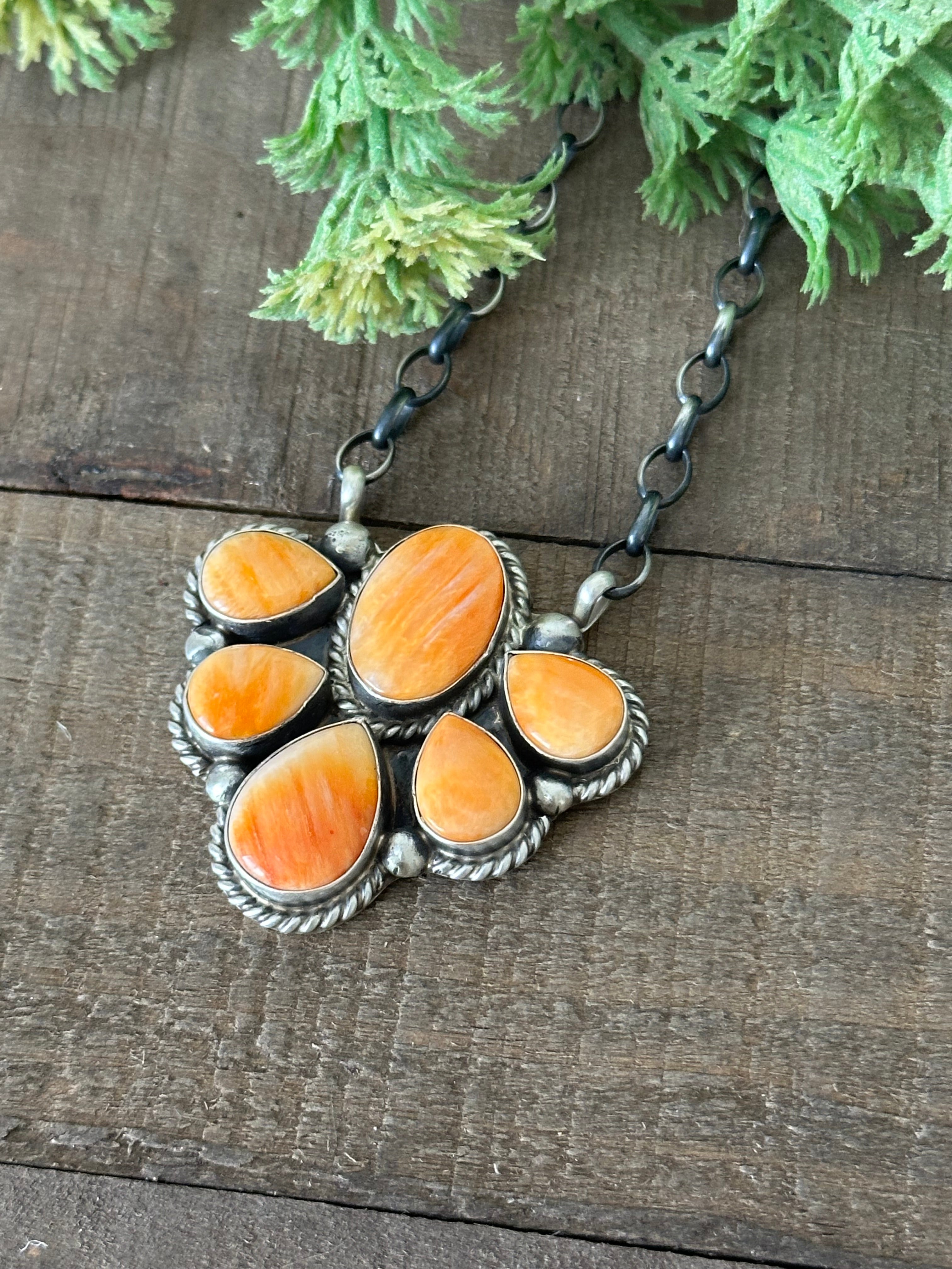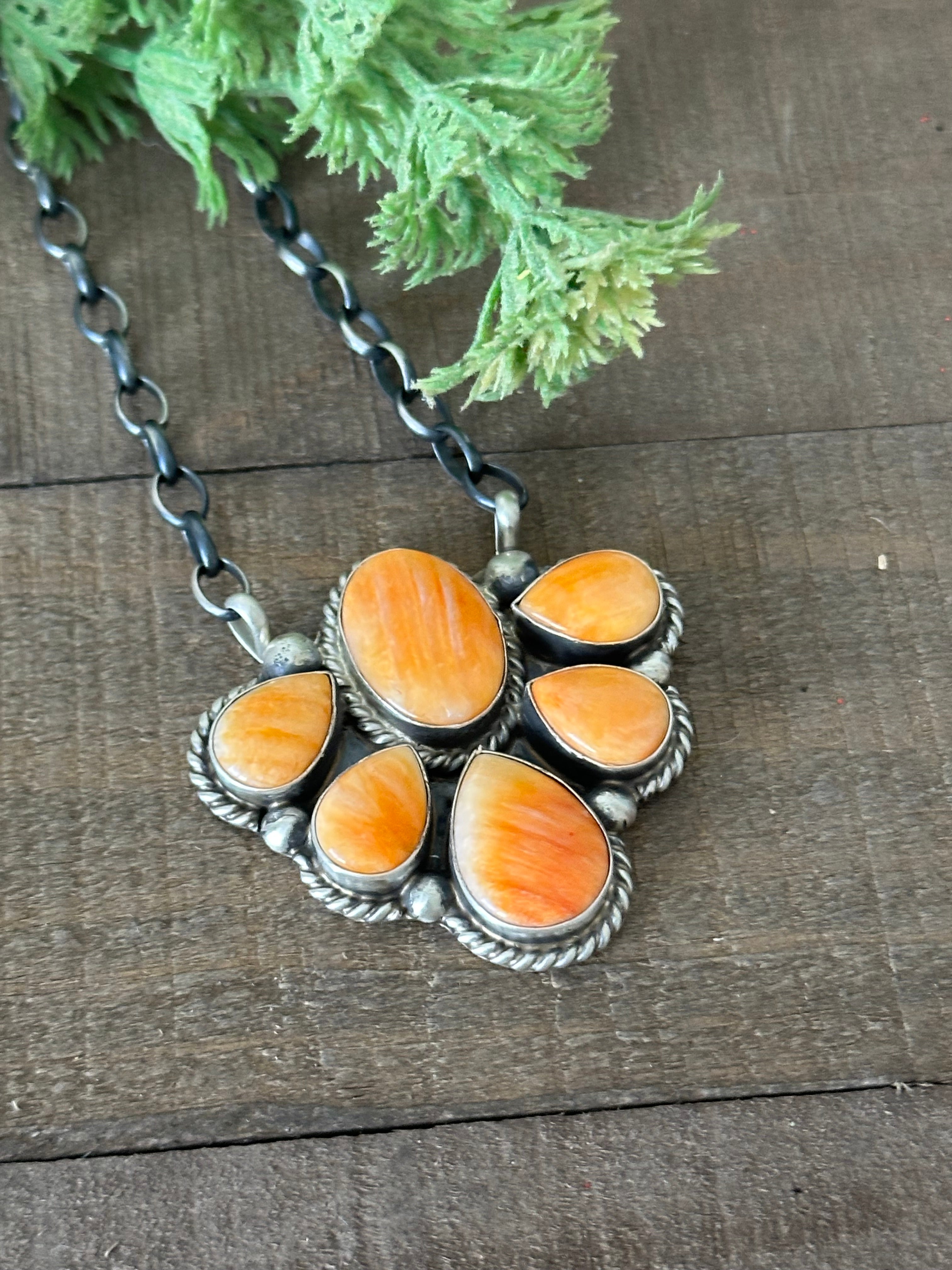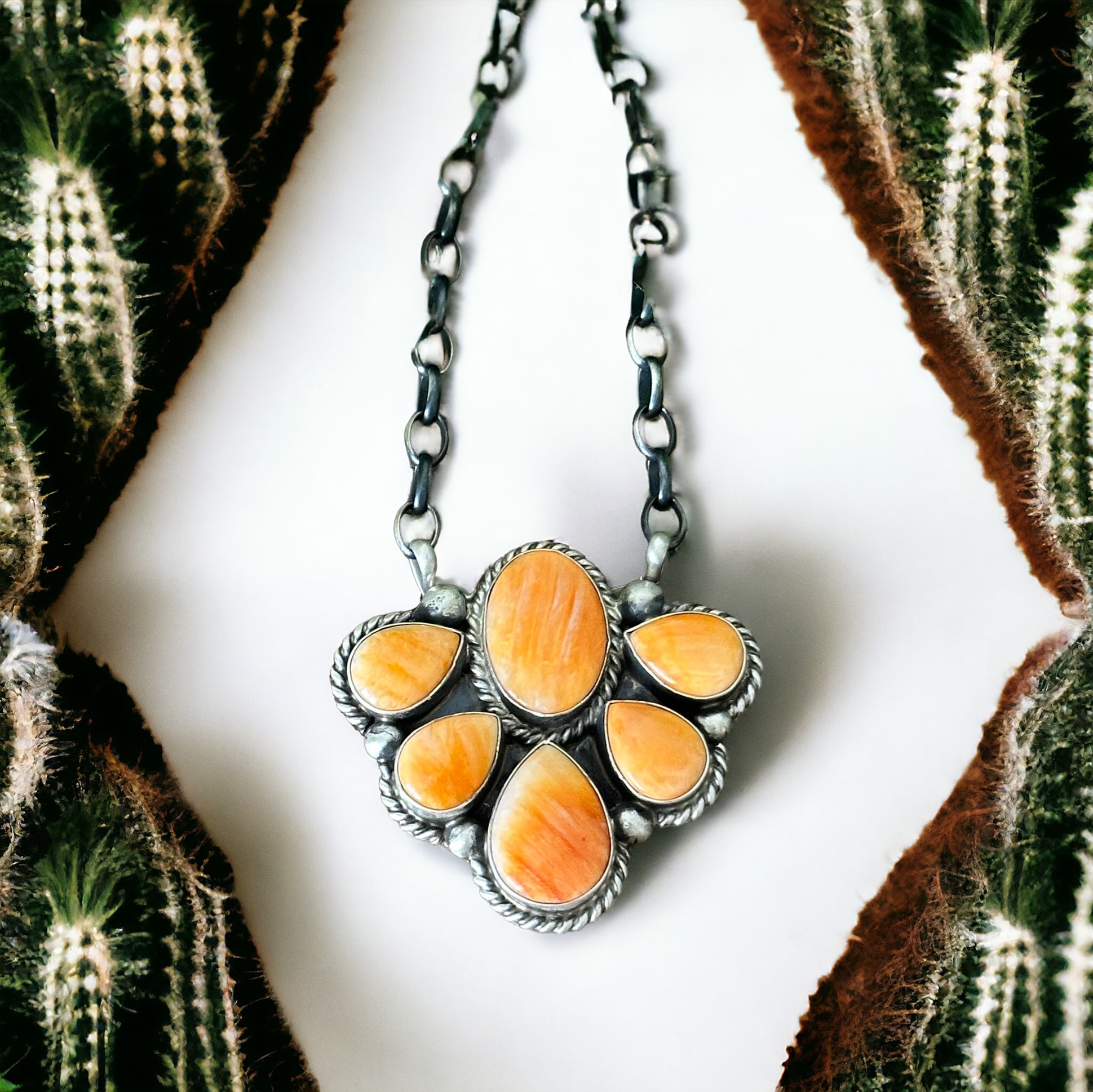 Beautiful necklace. Augustine Largo Spiny Oyster & Sterling Silver Necklace. It measures 19 inches long with hang while the chain by itself measures 16 inches long. Signed by the artist and stamped sterling silver.