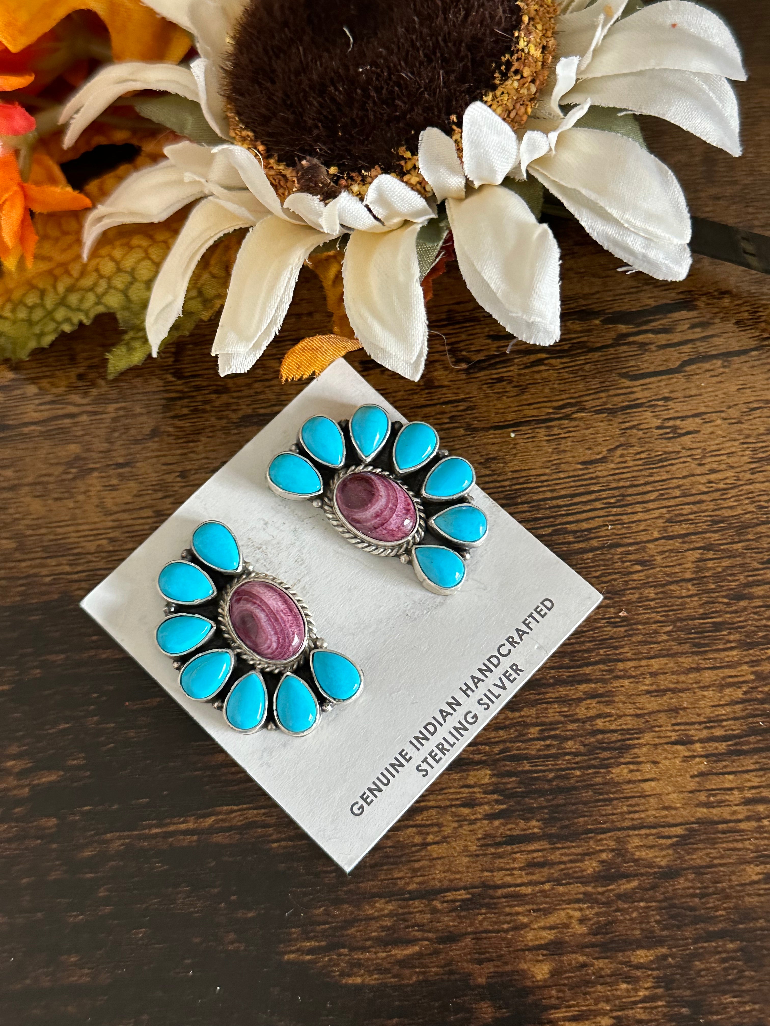 Belinda Begay Multi Stone & Sterling Silver Post Dangle Cluster Earrings