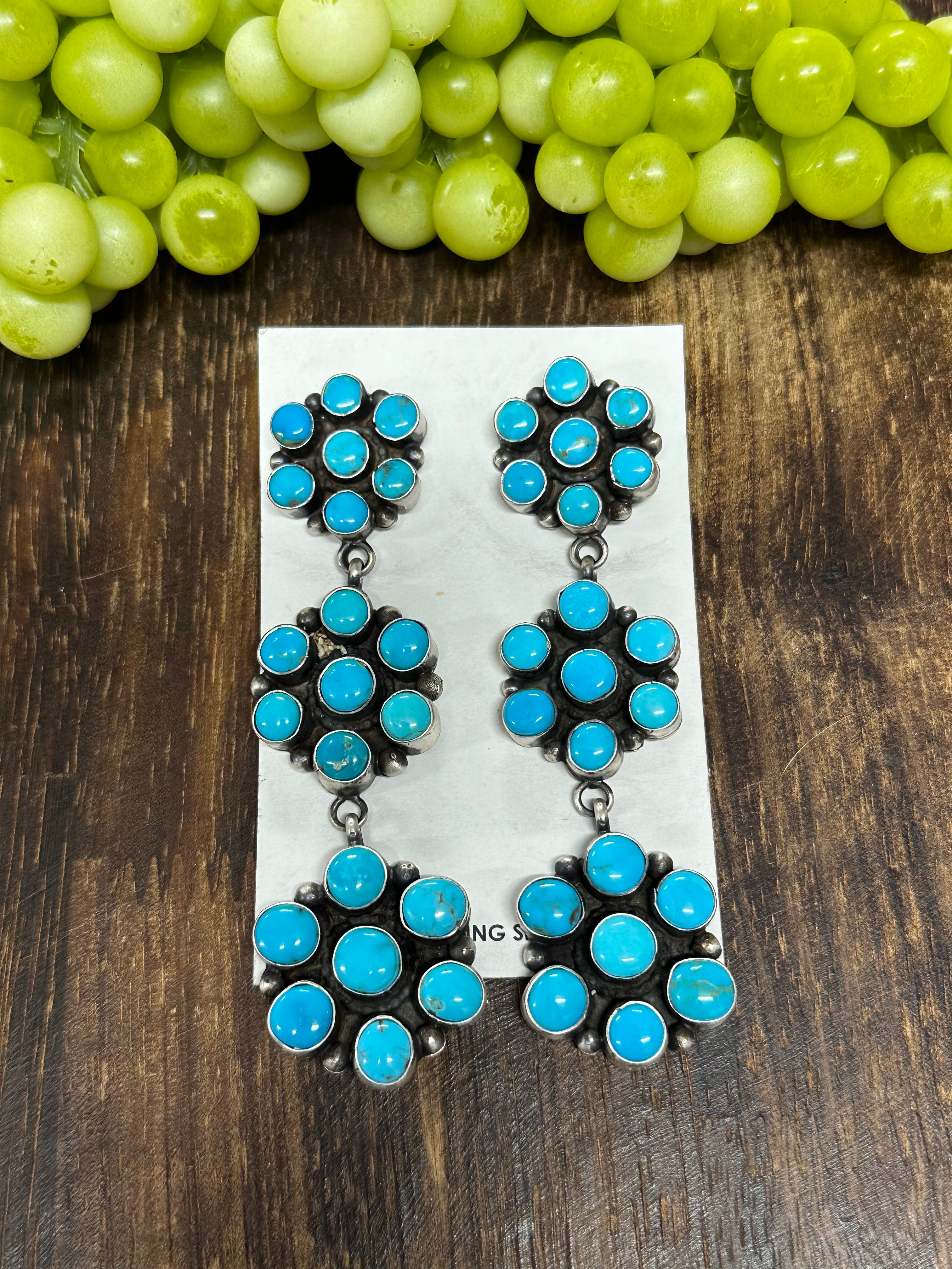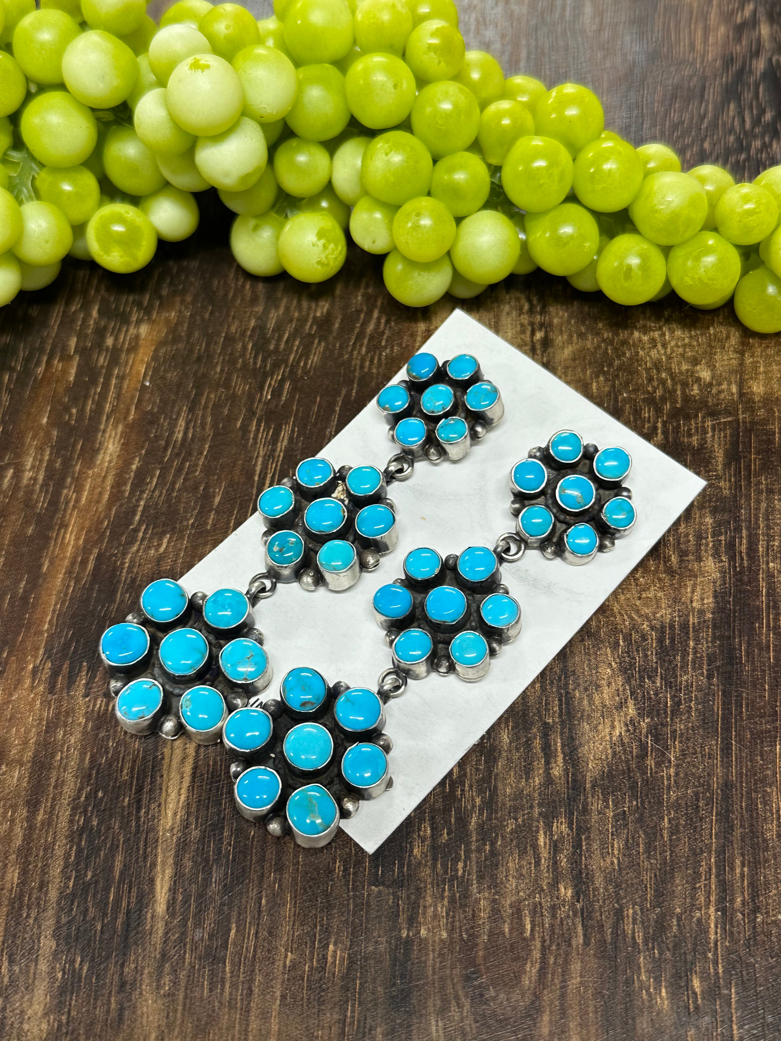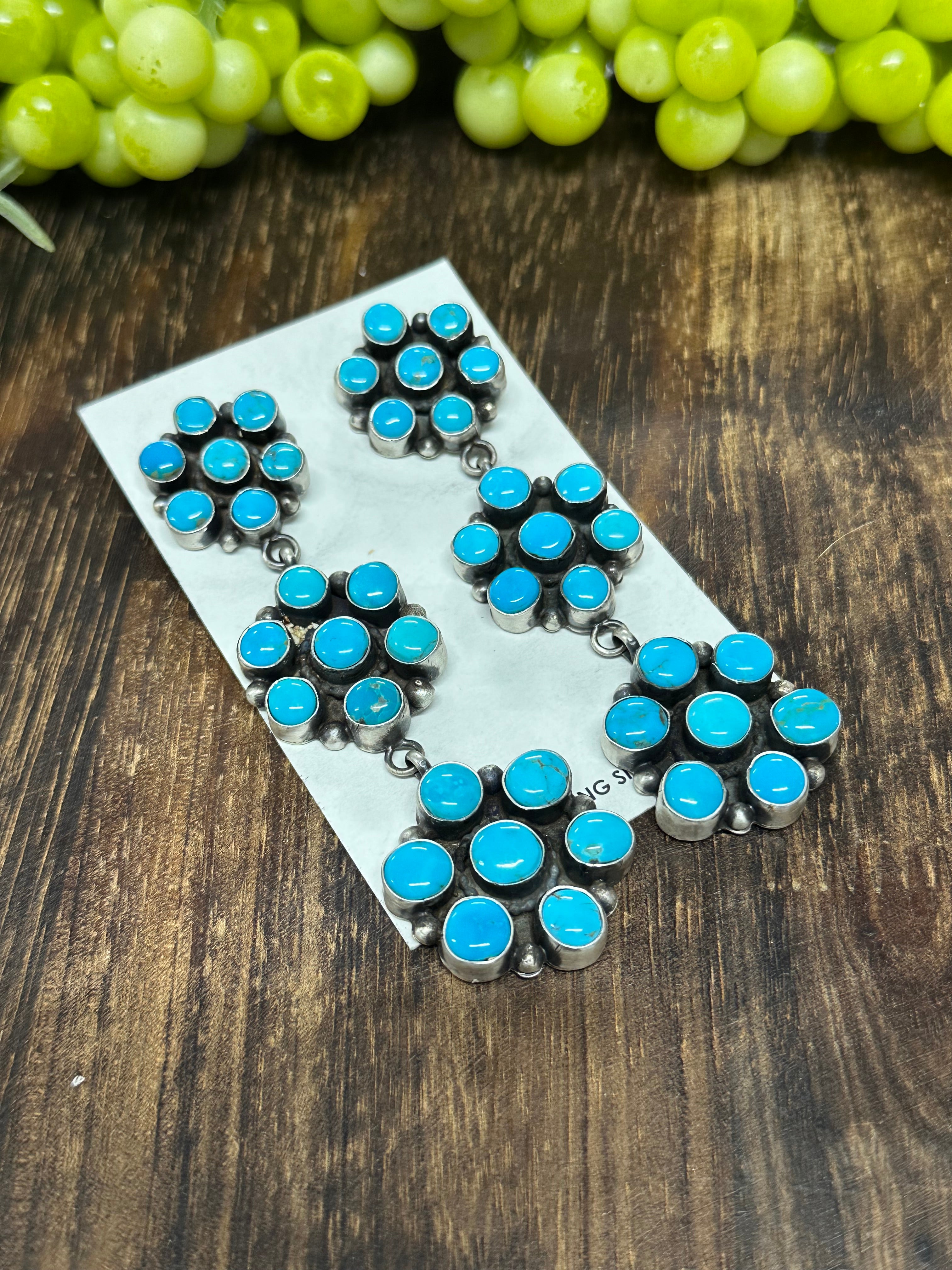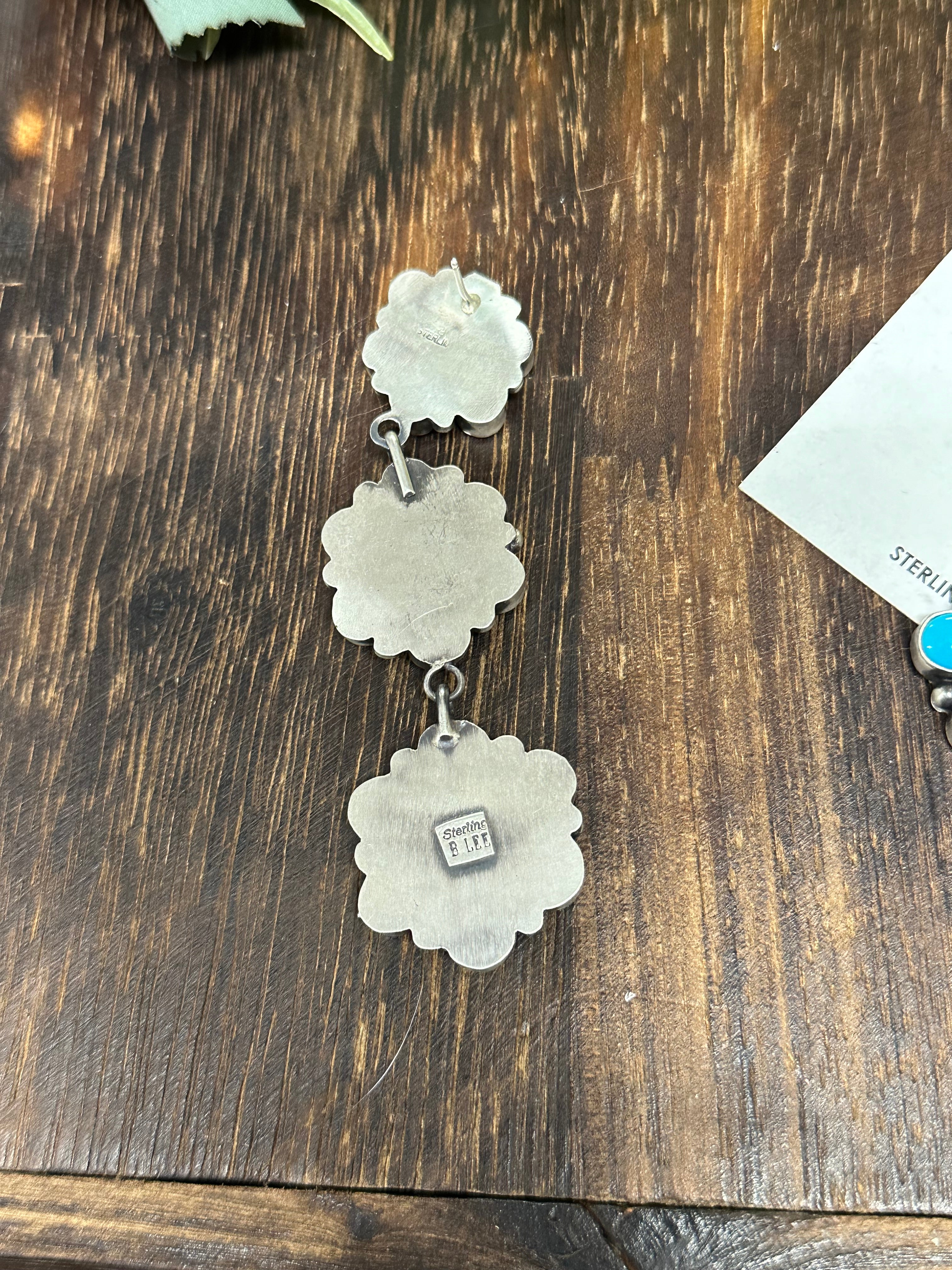 Betta Lee Sonoran Bella Turquoise & Sterling Silver Post Dangle Earrings. They measure 3 1/4 inches long and 1 inch wide. Stamped sterling silver and signed by the artist.