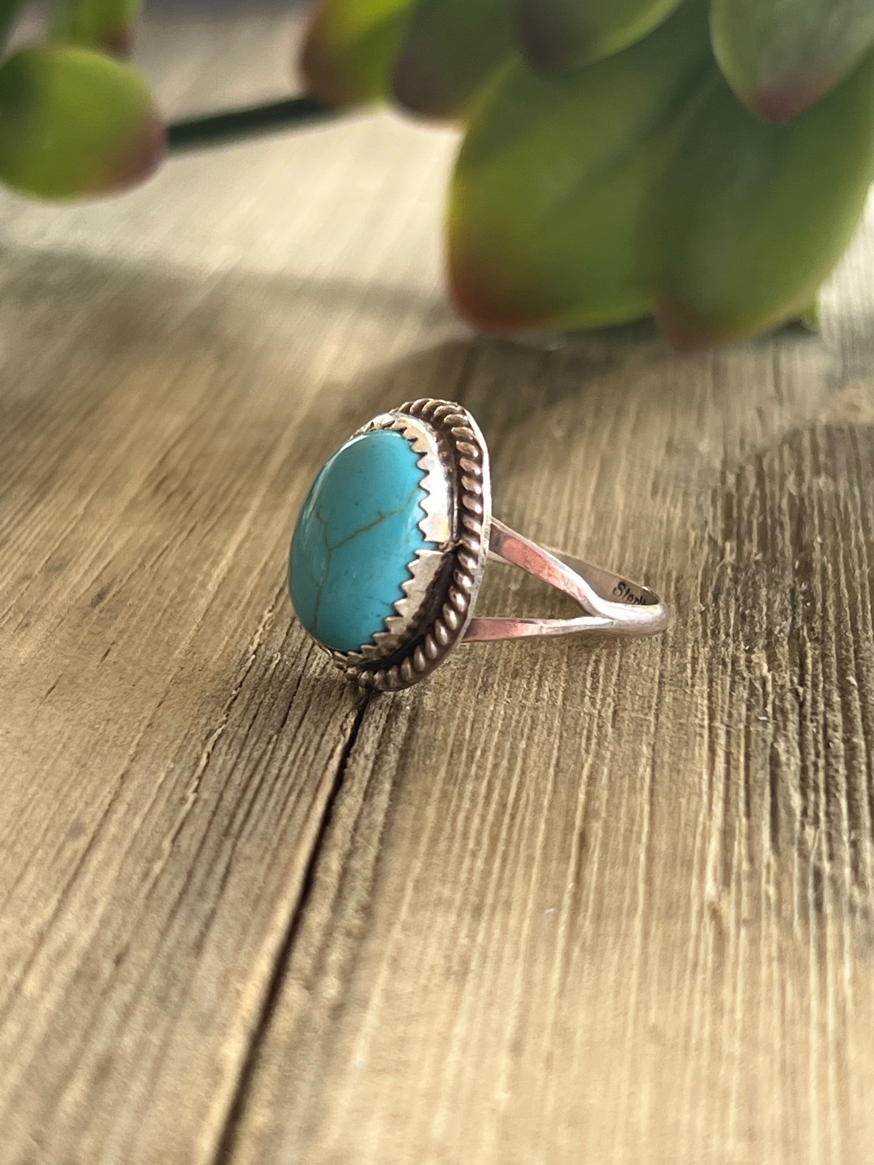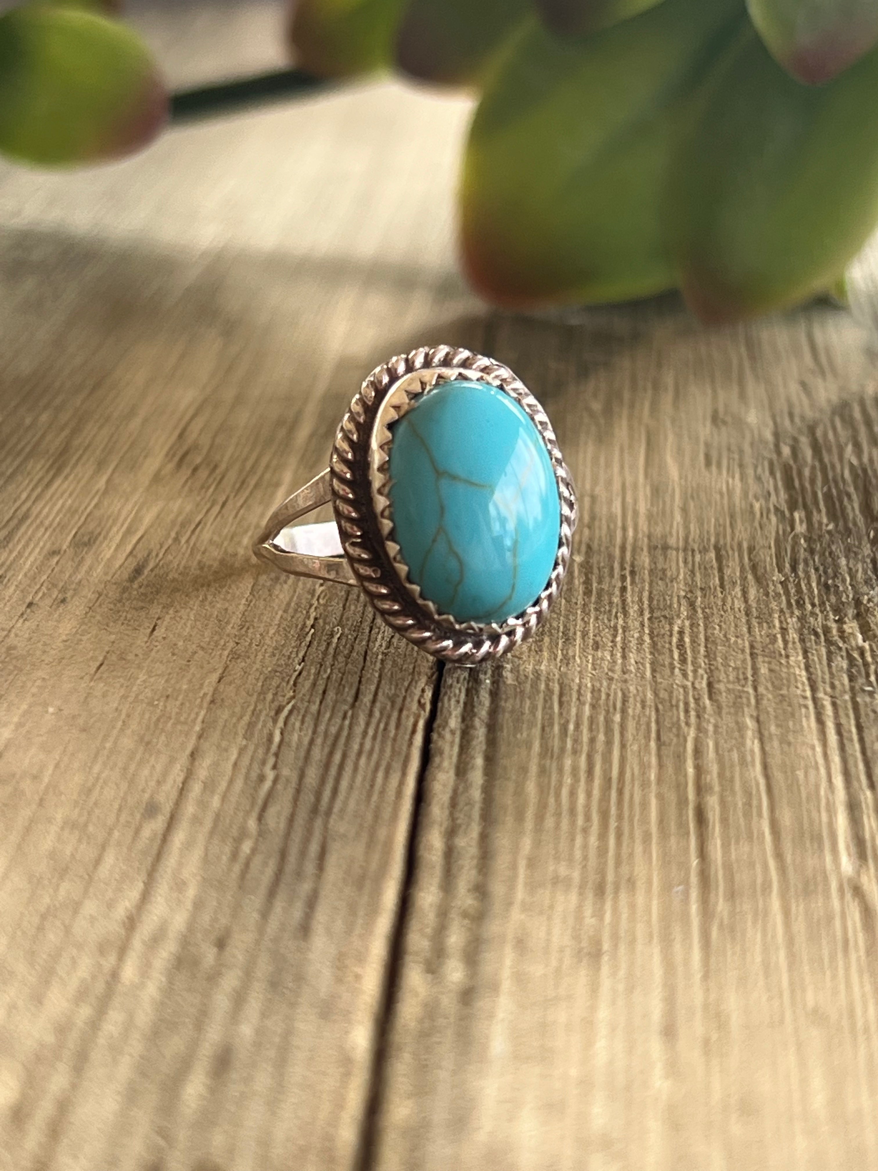 Bobby Martinez Sterling Silver Ring Size 7.5. It measures 3/4 of an inch long and 1/2 of an inch wide. Signed by artist and stamped sterling silver.