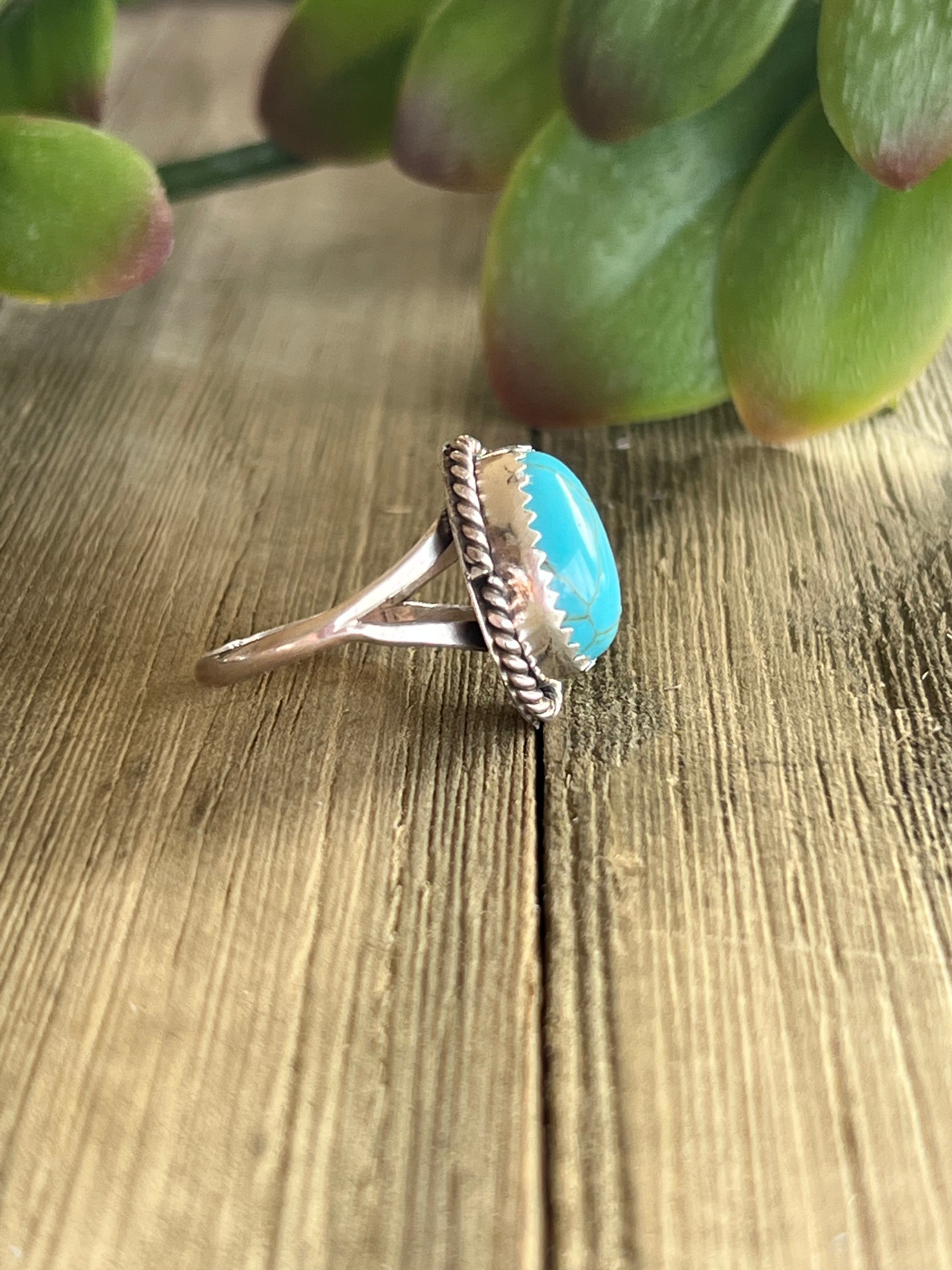 Bobby Martinez Sterling Silver Ring Size 8.25. It measures 3/4 of an inch long and 1/2 of an inch wide. Signed by artist and stamped sterling silver.