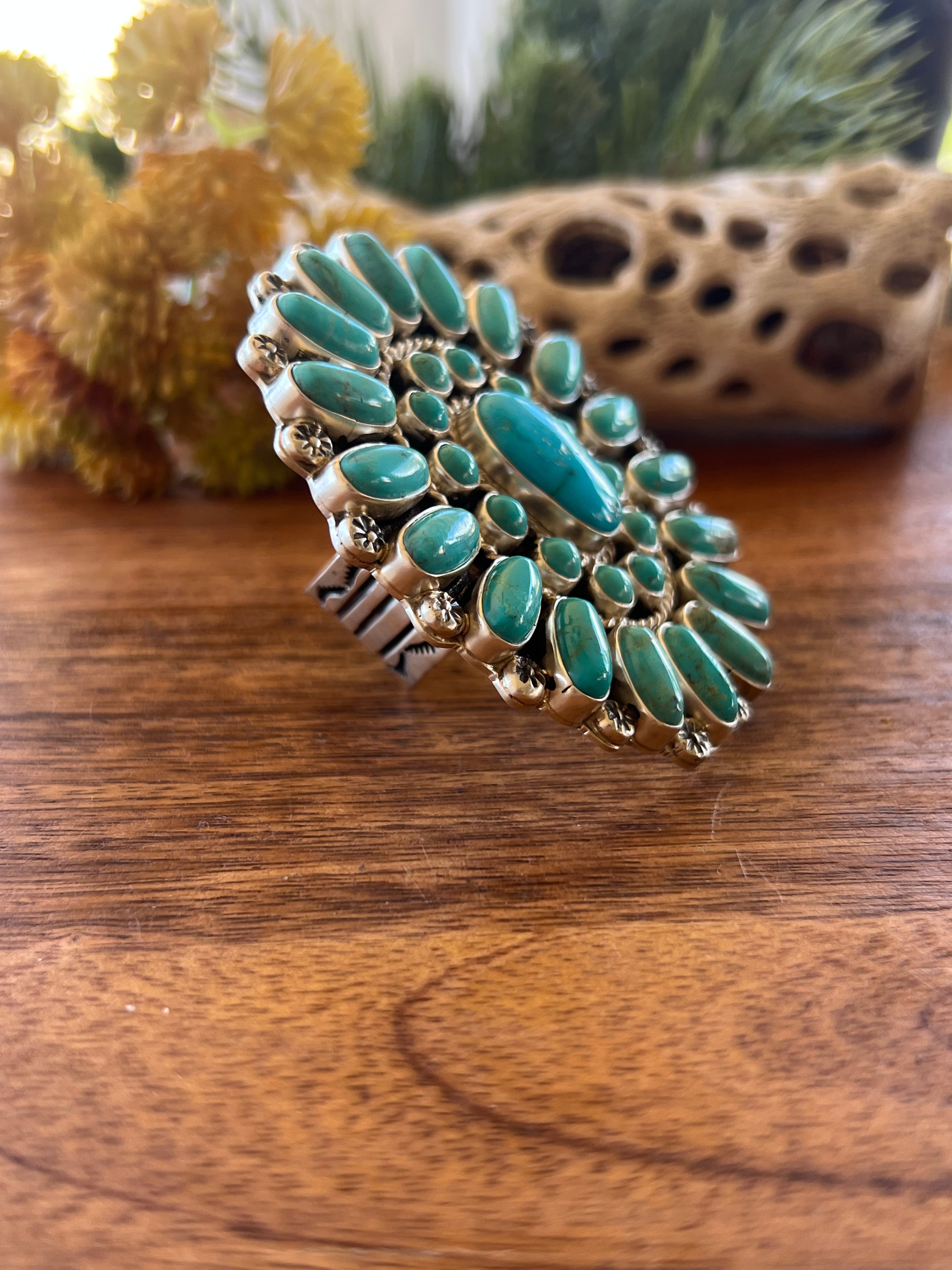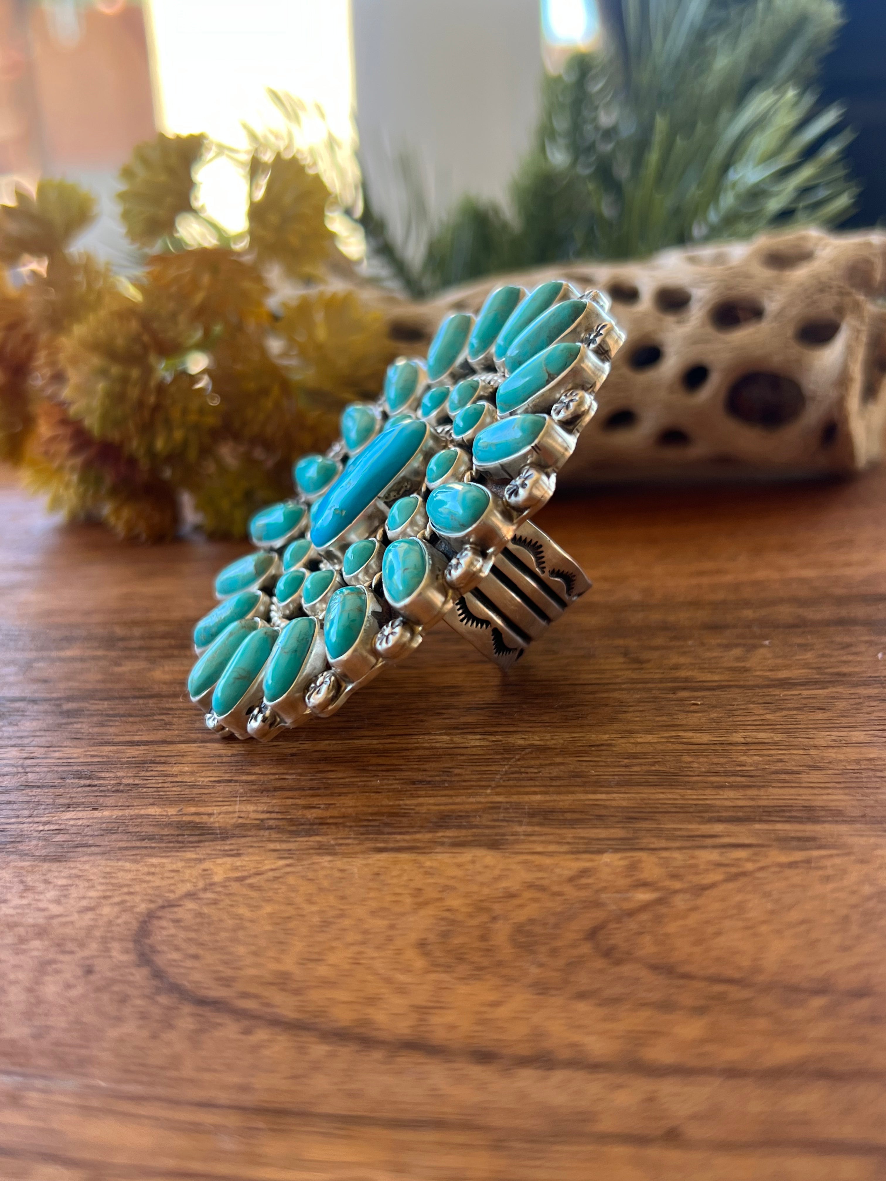 C. Yazzie Kingman Turquoise & Sterling Silver Cluster Ring Size 11