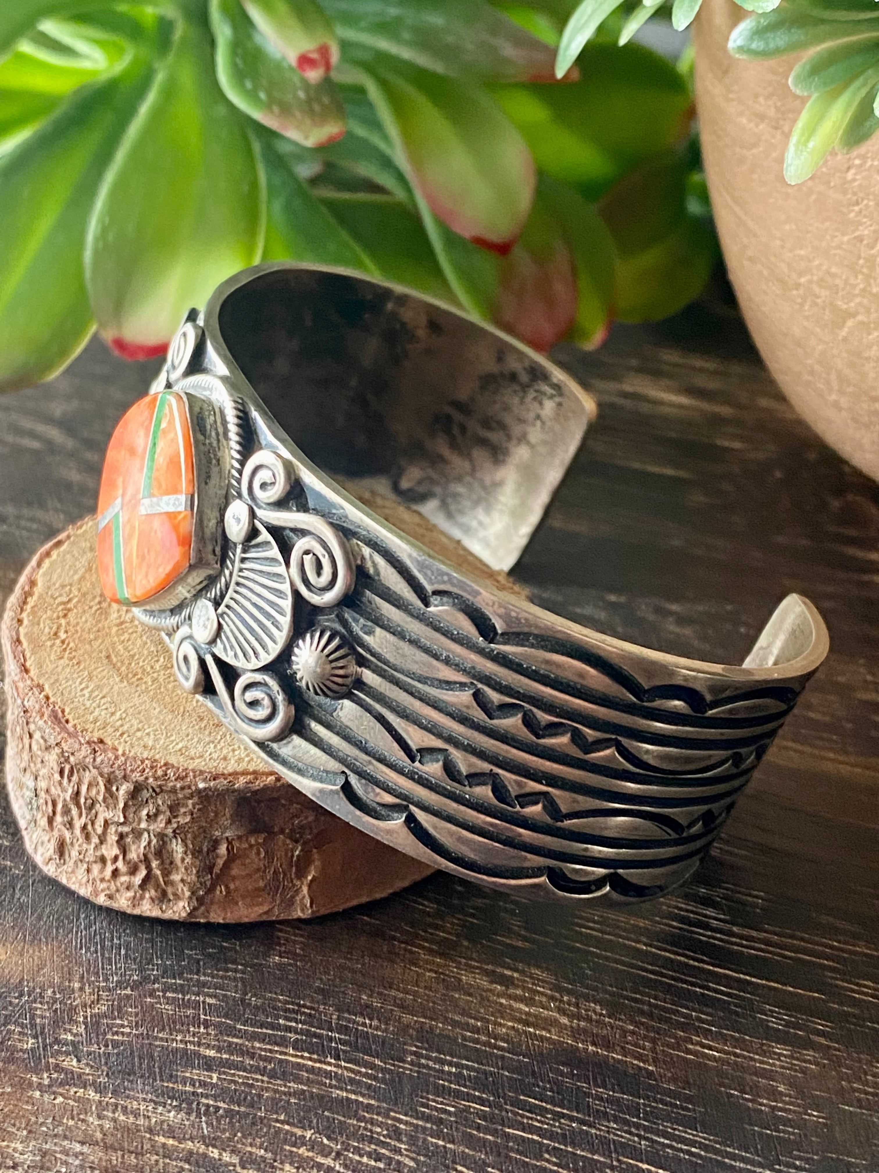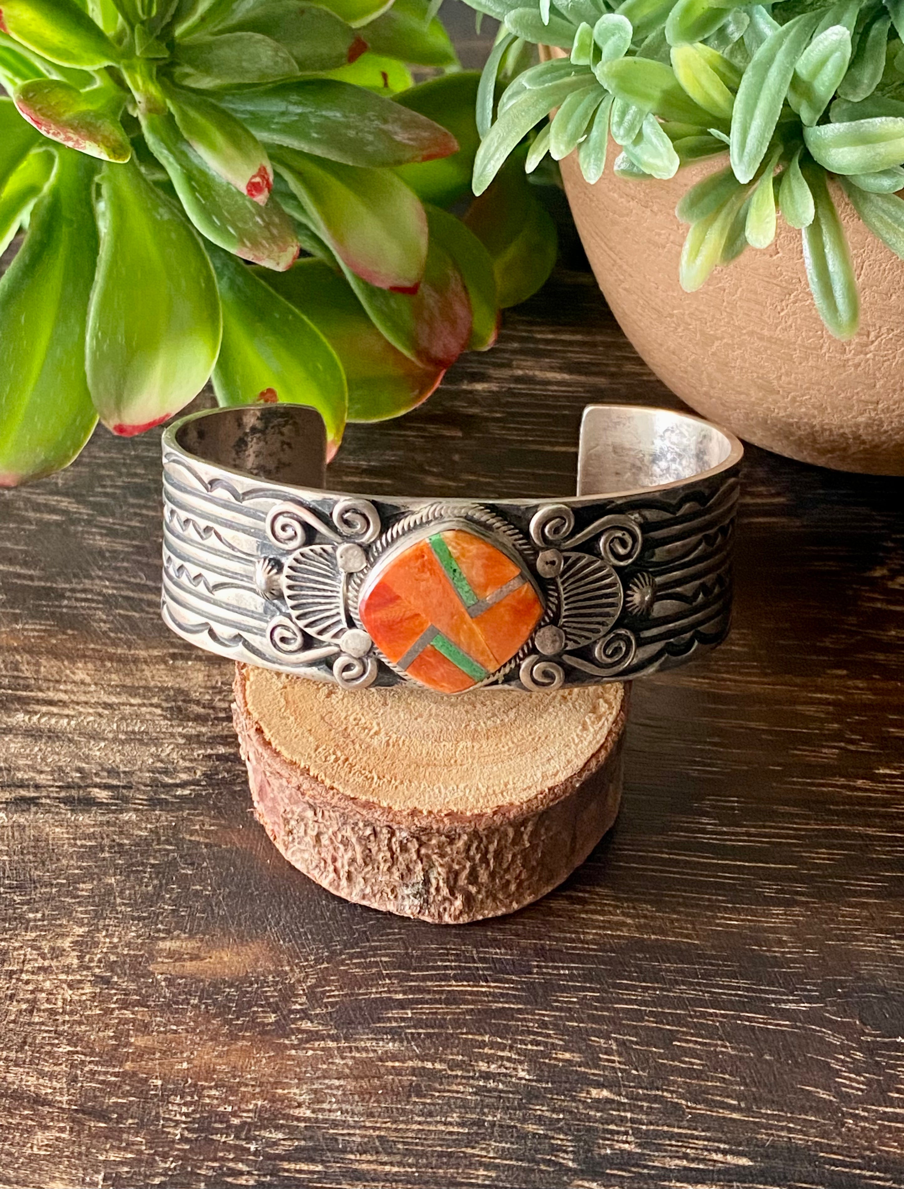 Charles Johnson Multi Stone & Sterling Silver Inlay Cuff Bracelet