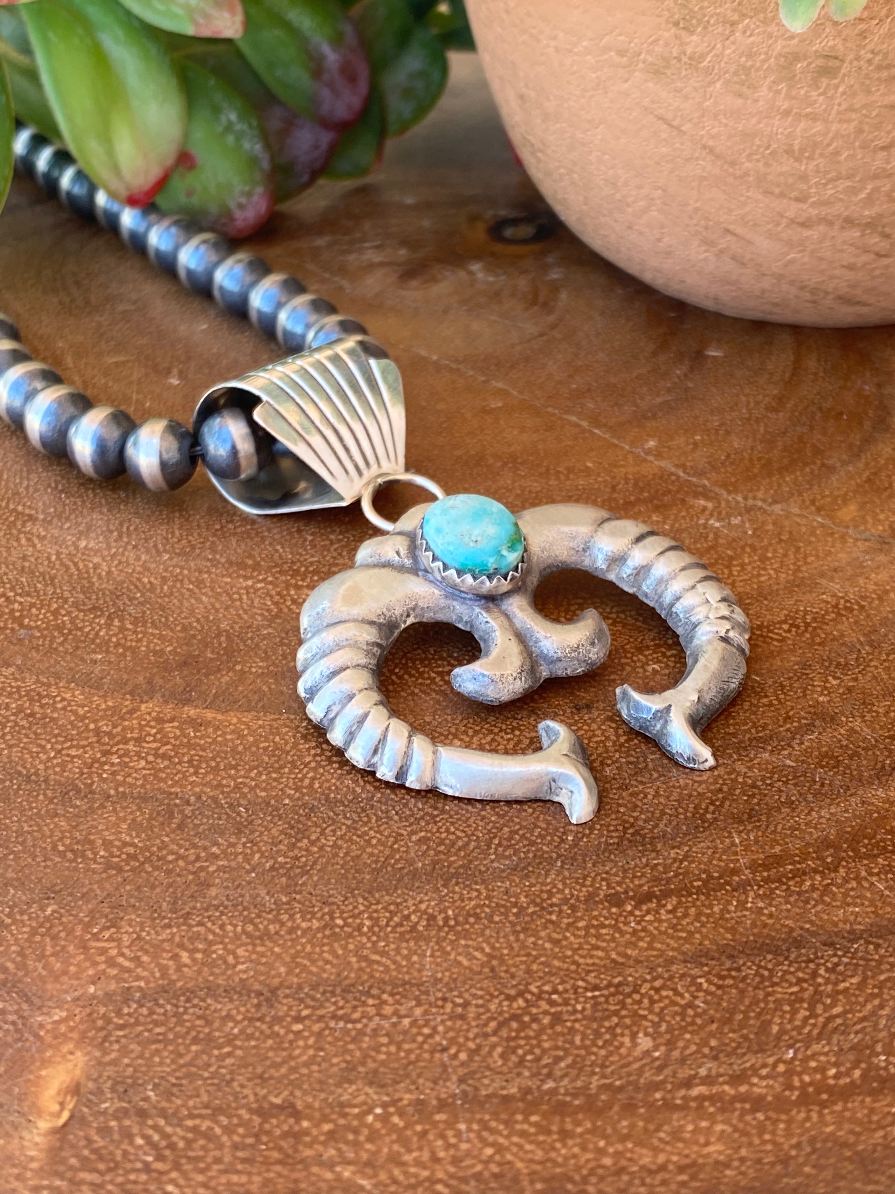Cheryl Yazzie Sonoran Gold Turquoise & Sterling Silver Sand Cast Naja Pendant