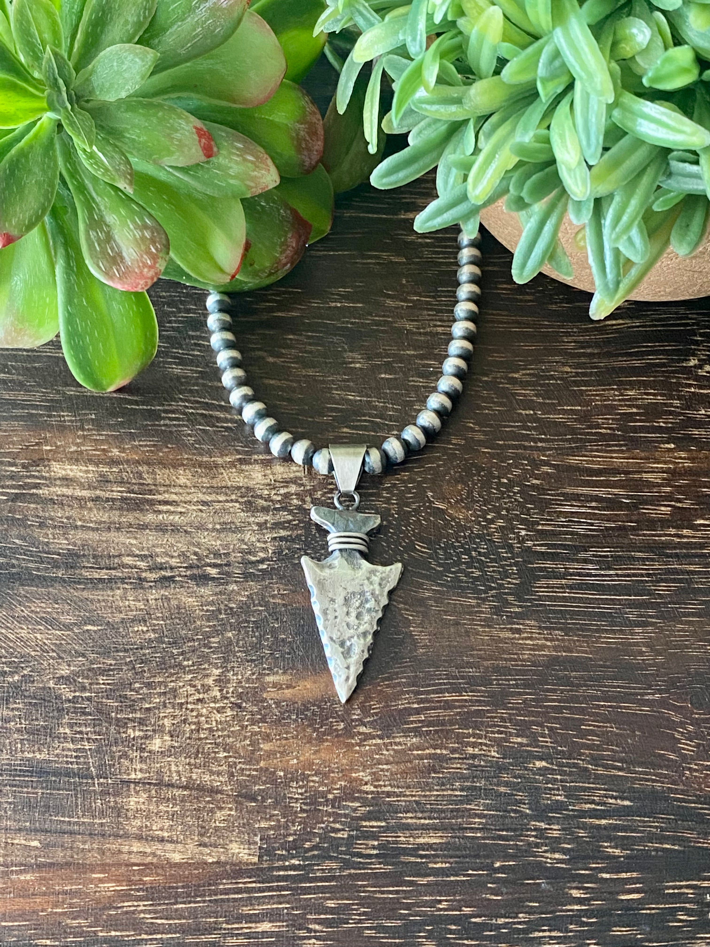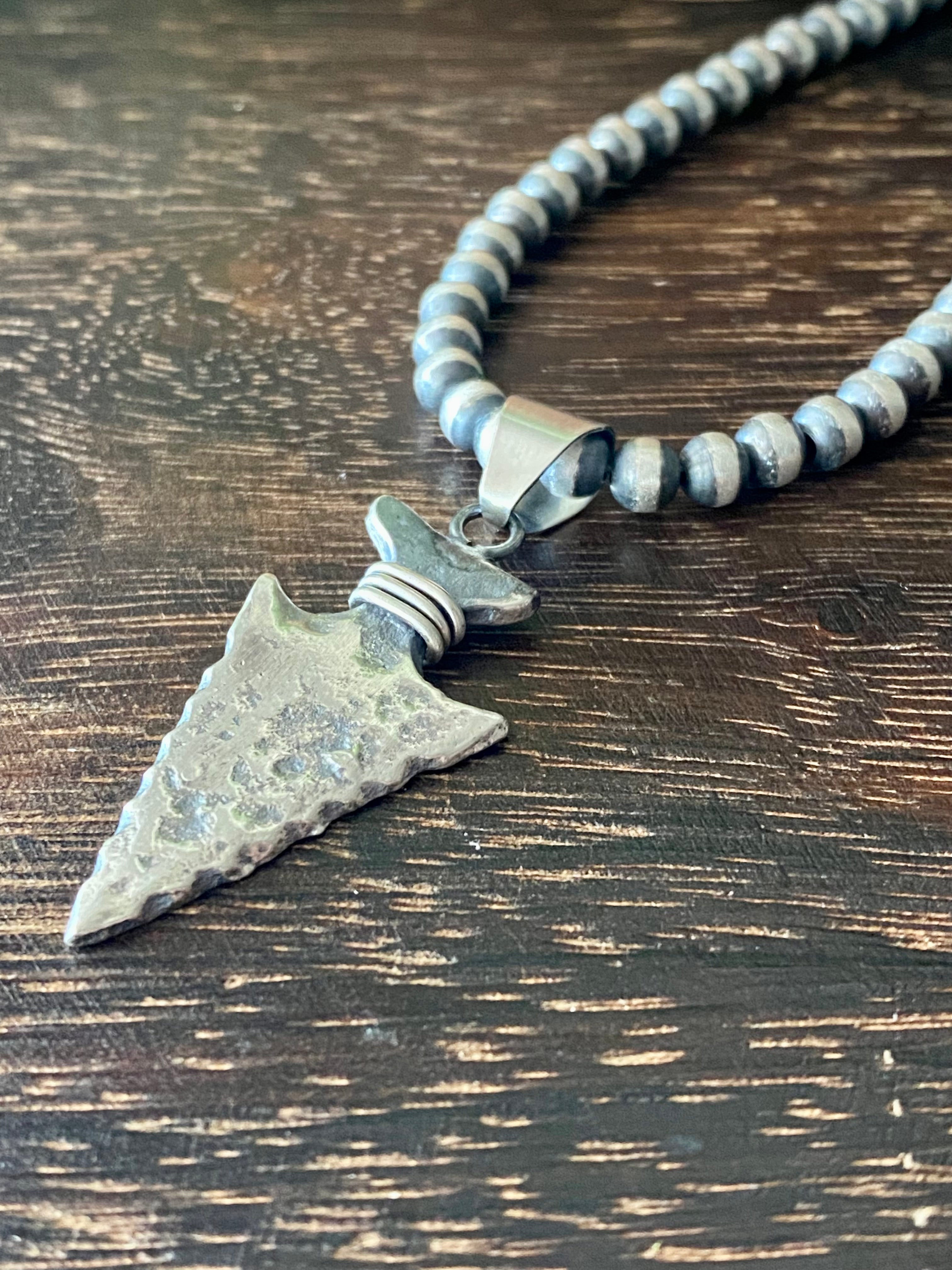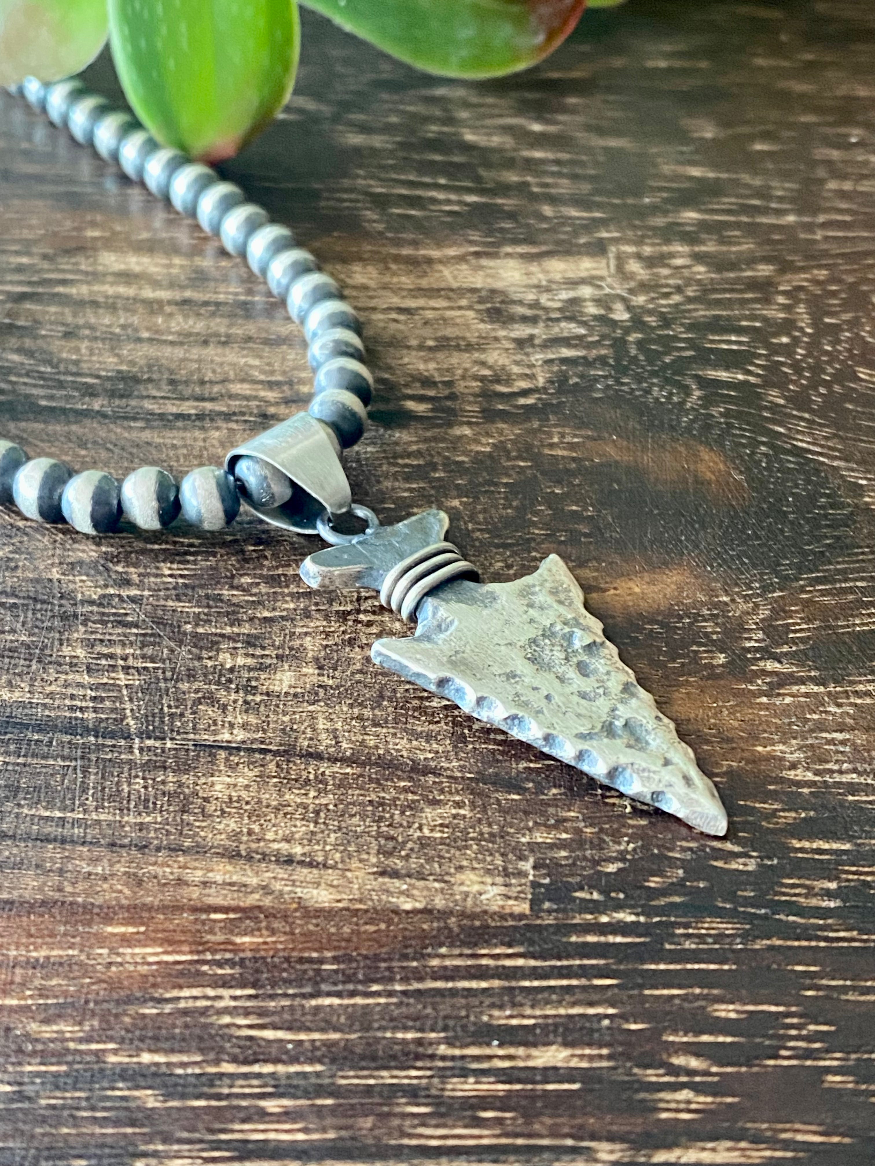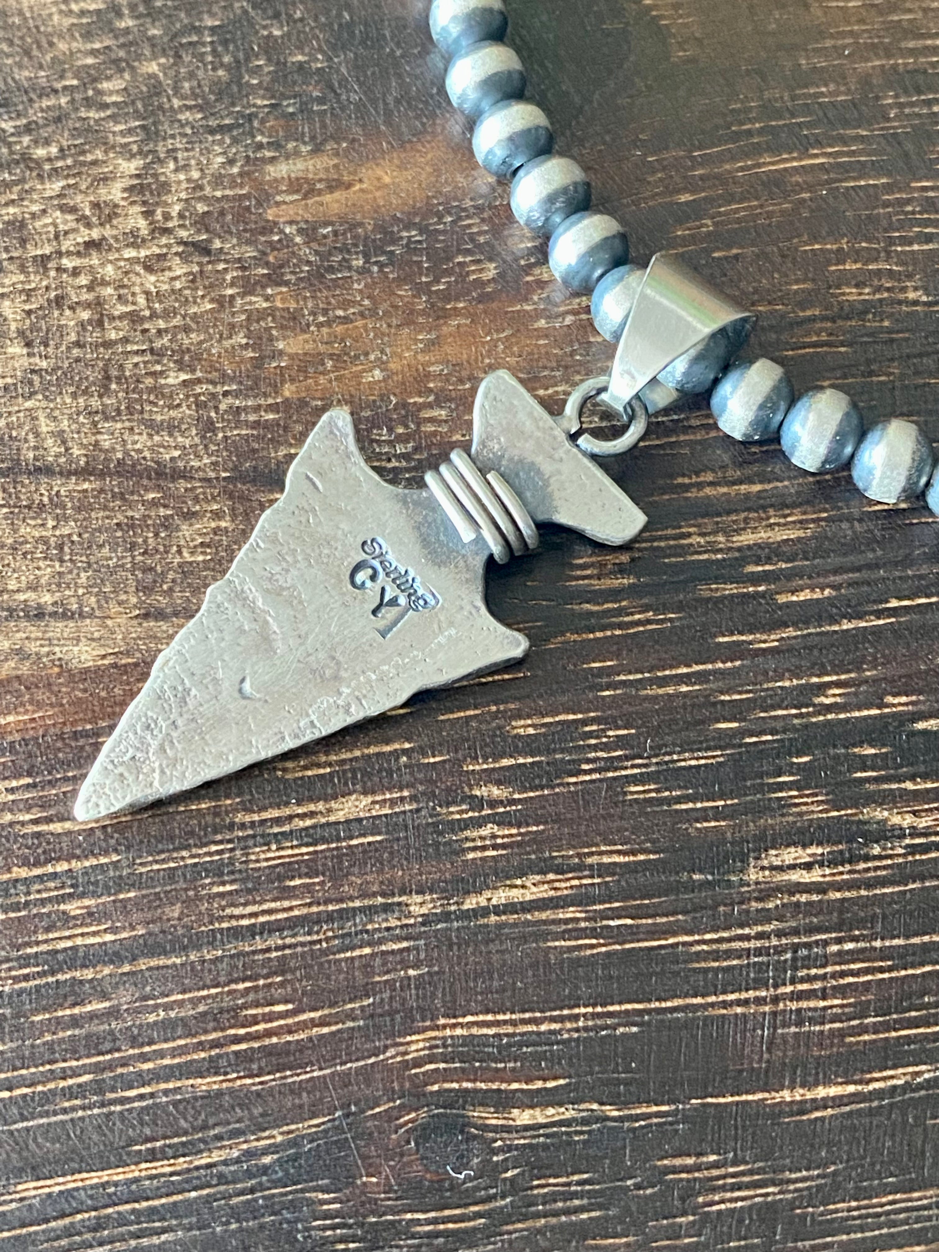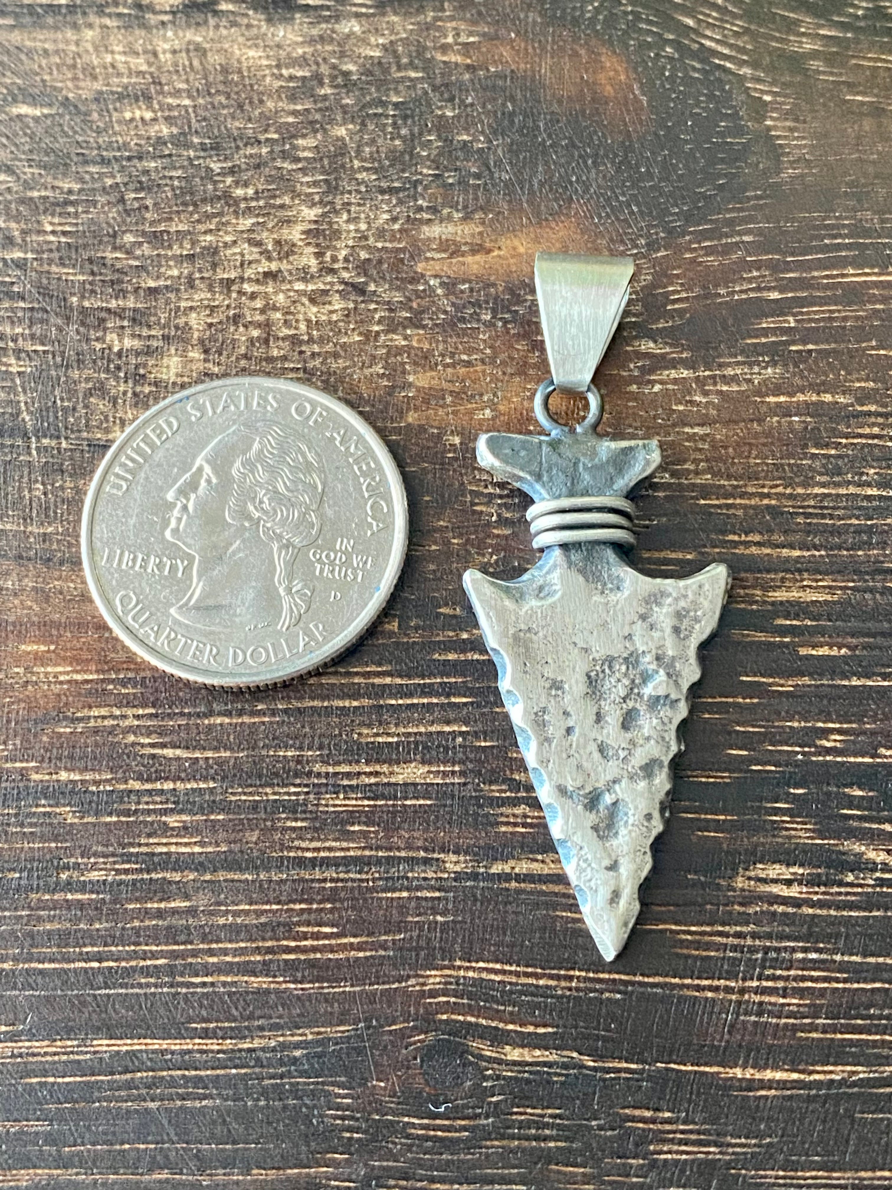 Cheryl Yazzie Sterling Silver Arrow Pendant. It measures 2 inches long and just over 3/4 of an inch wide. Pendant Only!! Signed by the artist and stamped sterling silver.