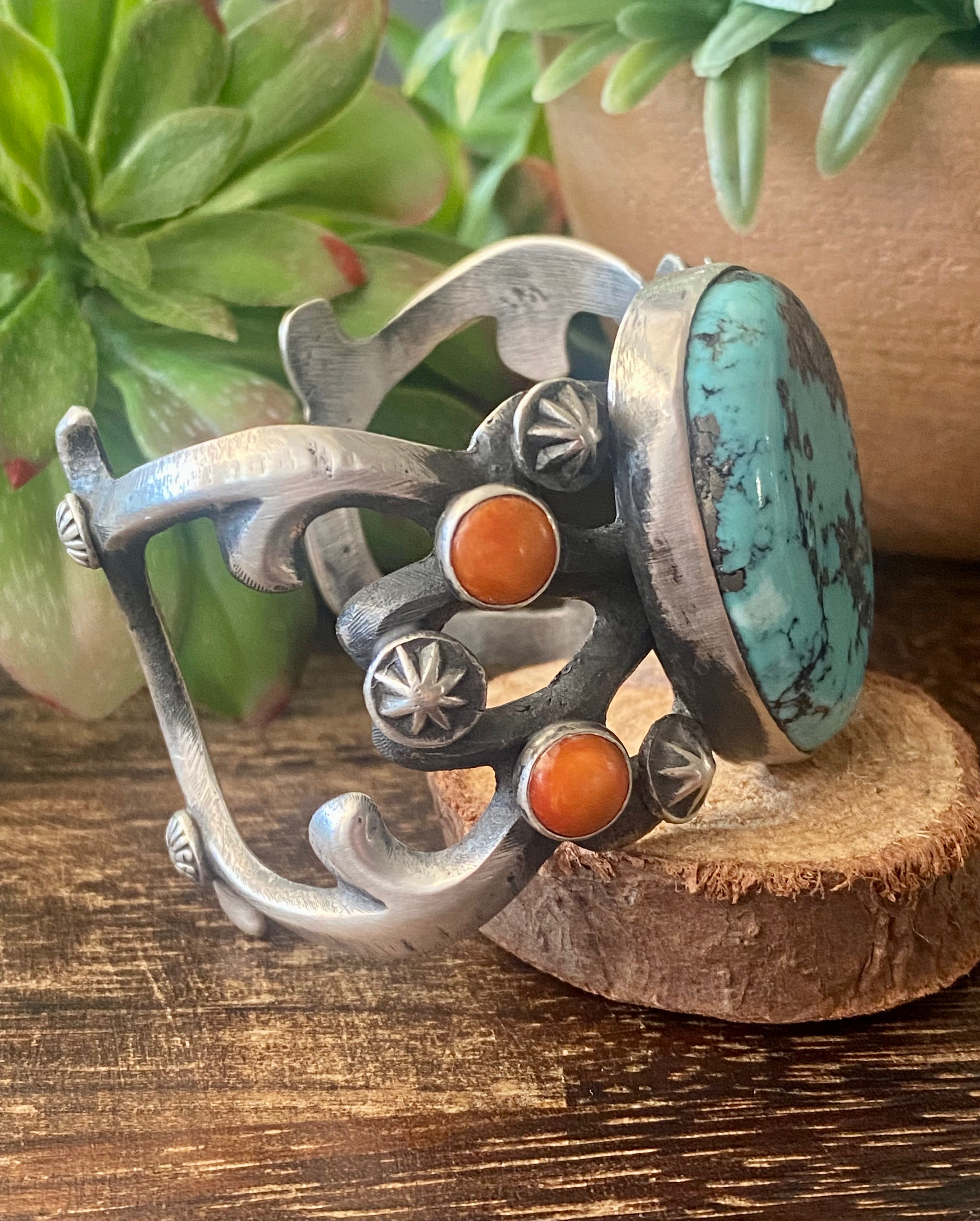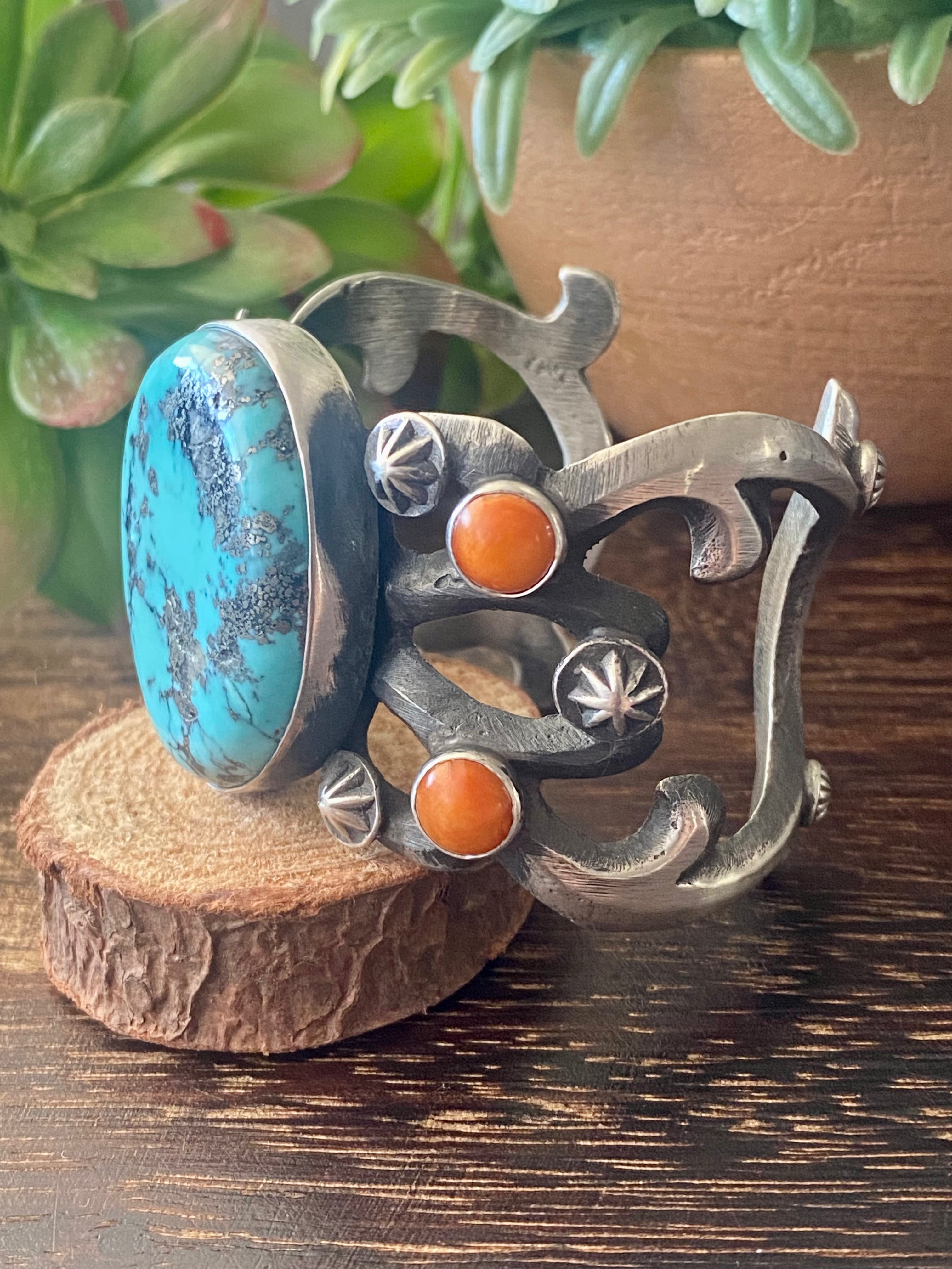 Chimney Butte Kingman Turquoise & Spiny Oys Sterling Silver Cuff Bracelet