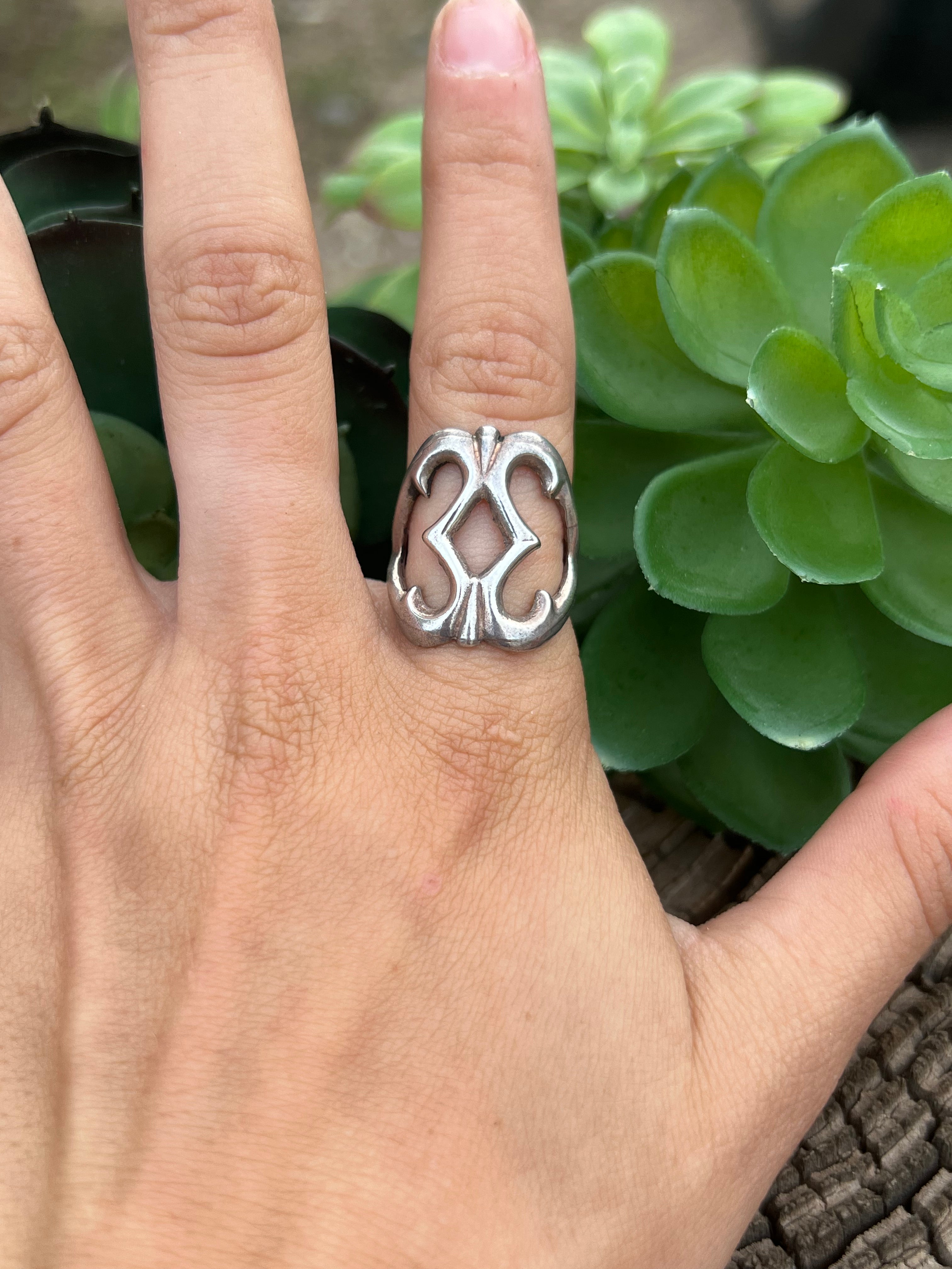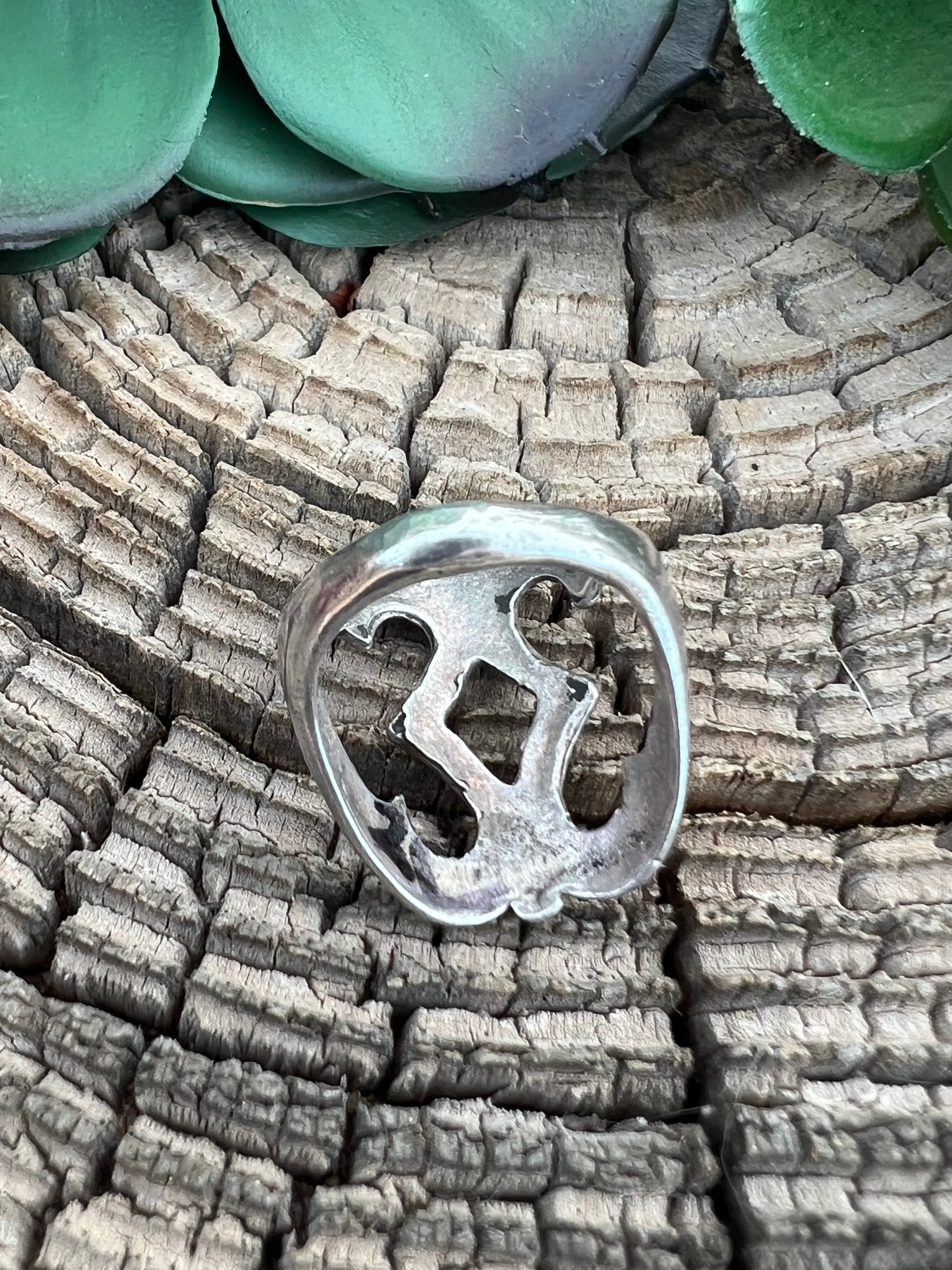 Chimney Butte Sterling Silver Ring Size 10.75. It measures 1 1/8 inches long and 7/8 of an inch wide. Signed by artist and stamped sterling silver.