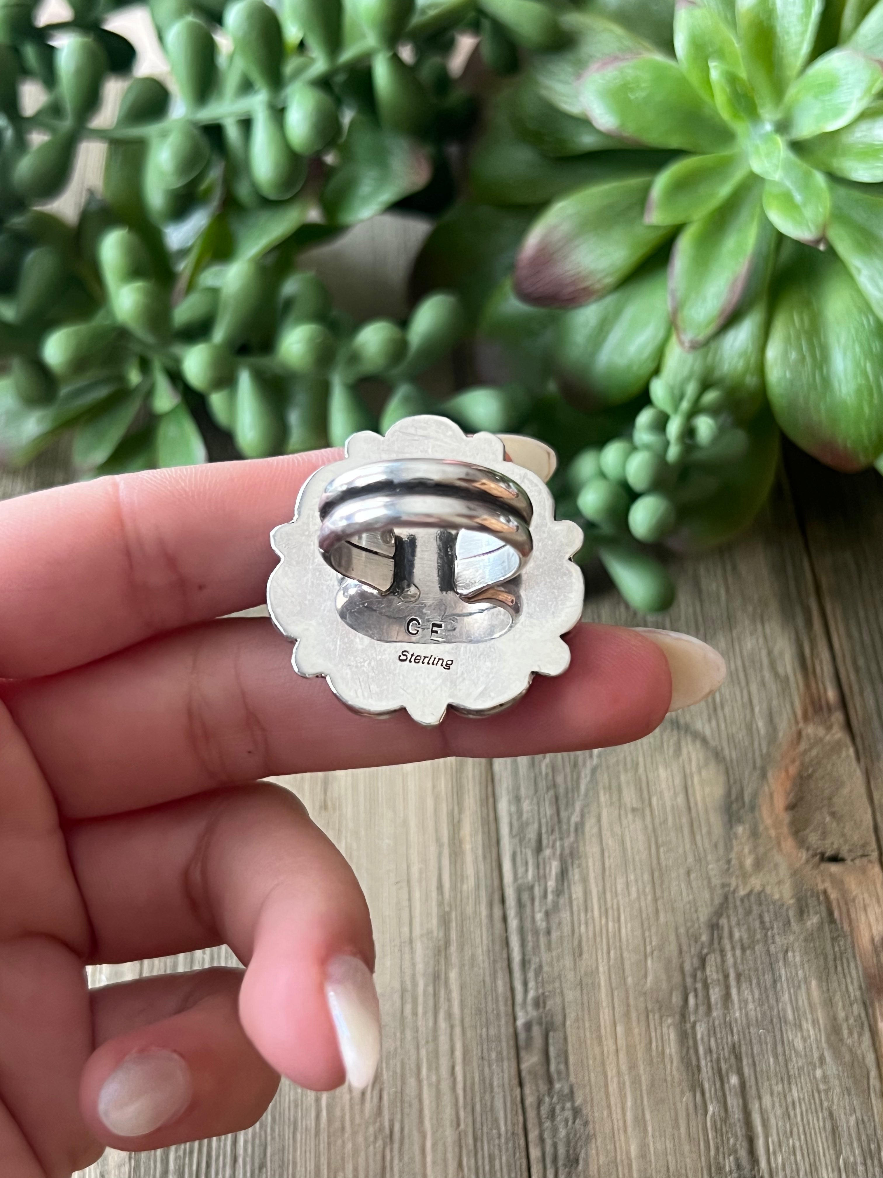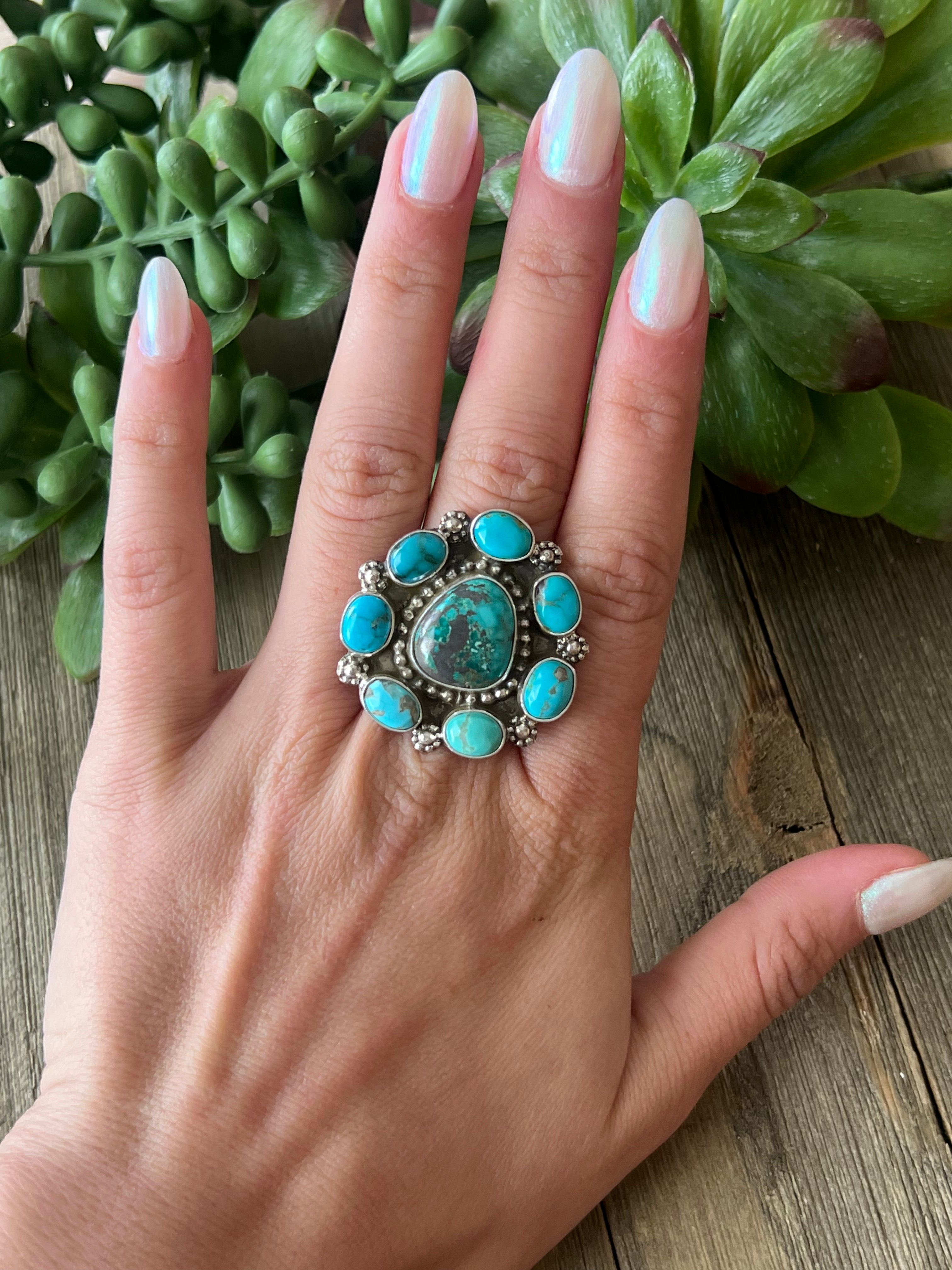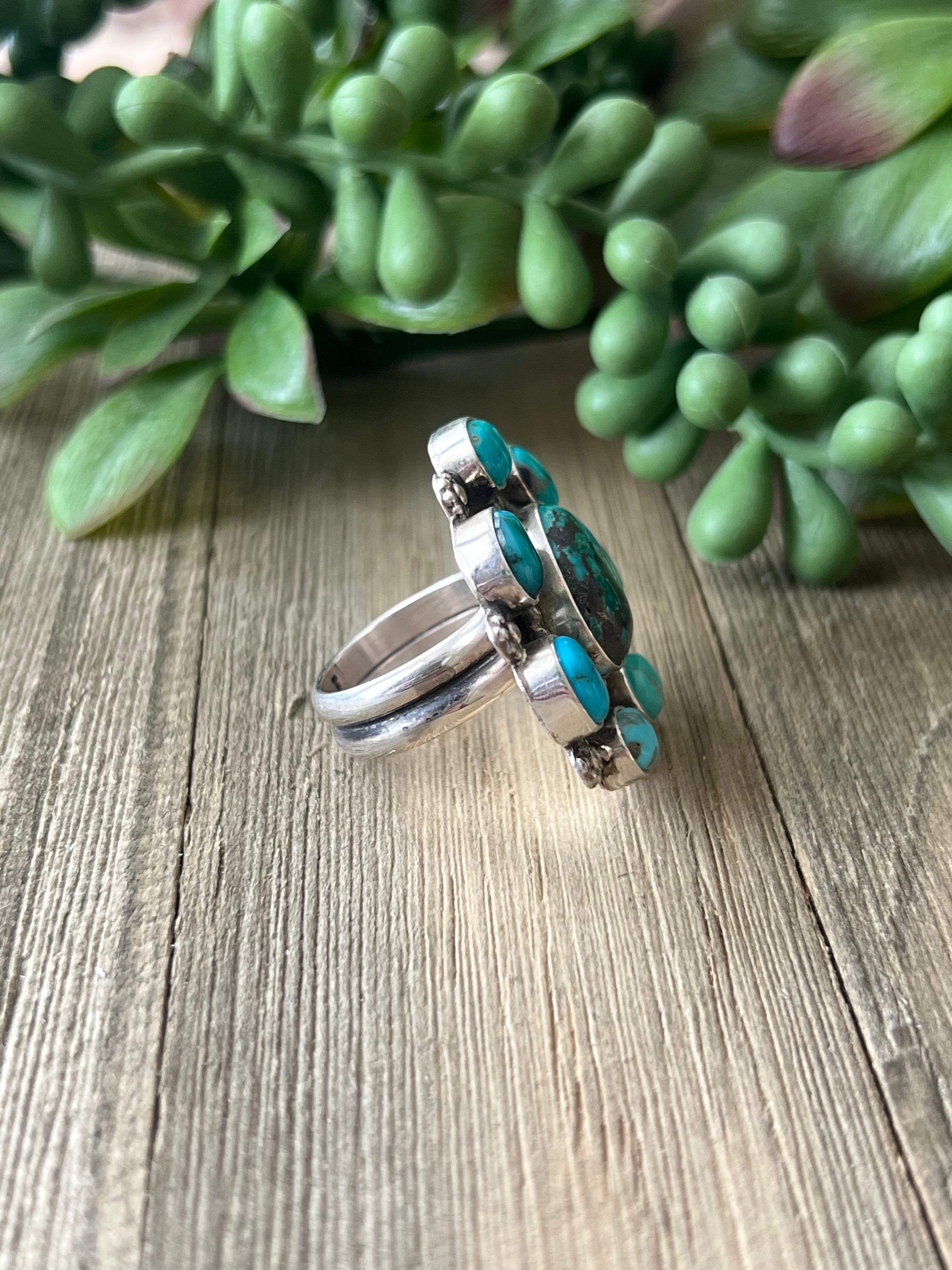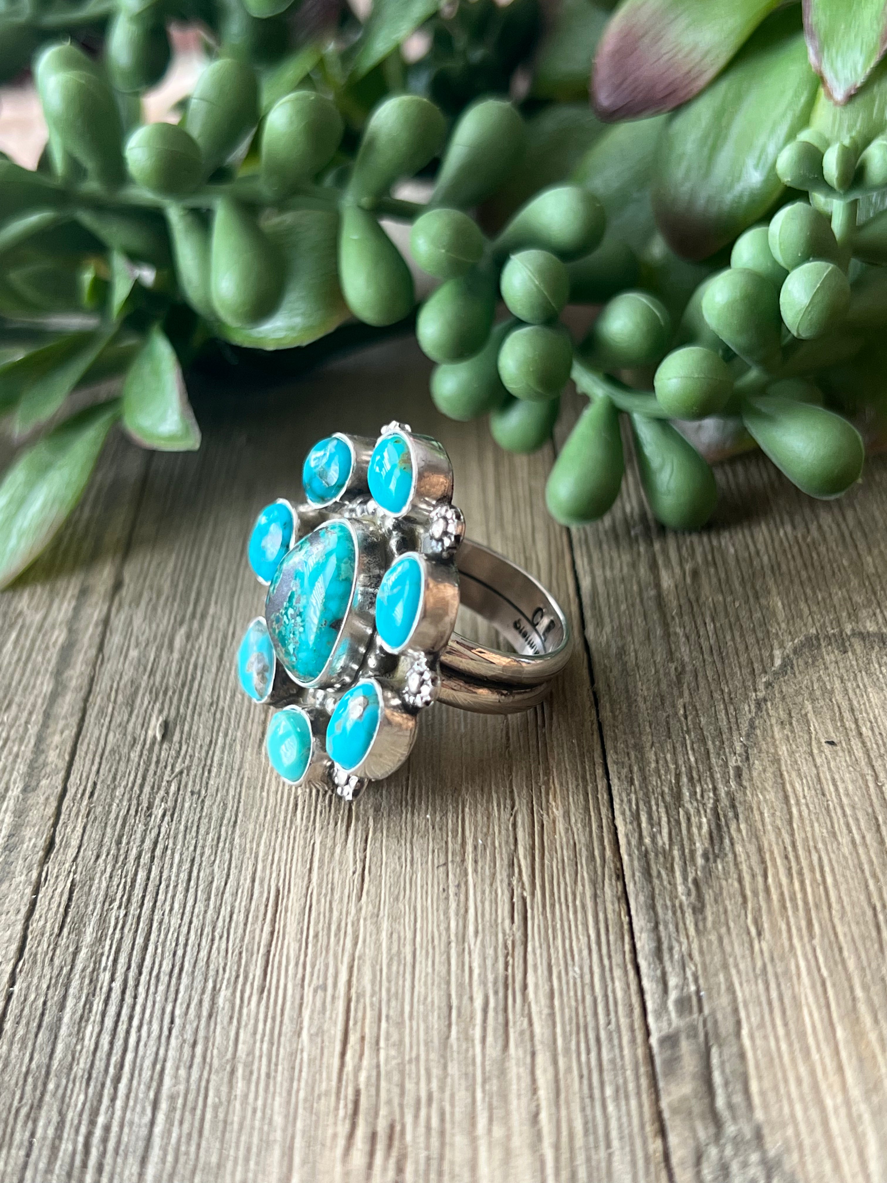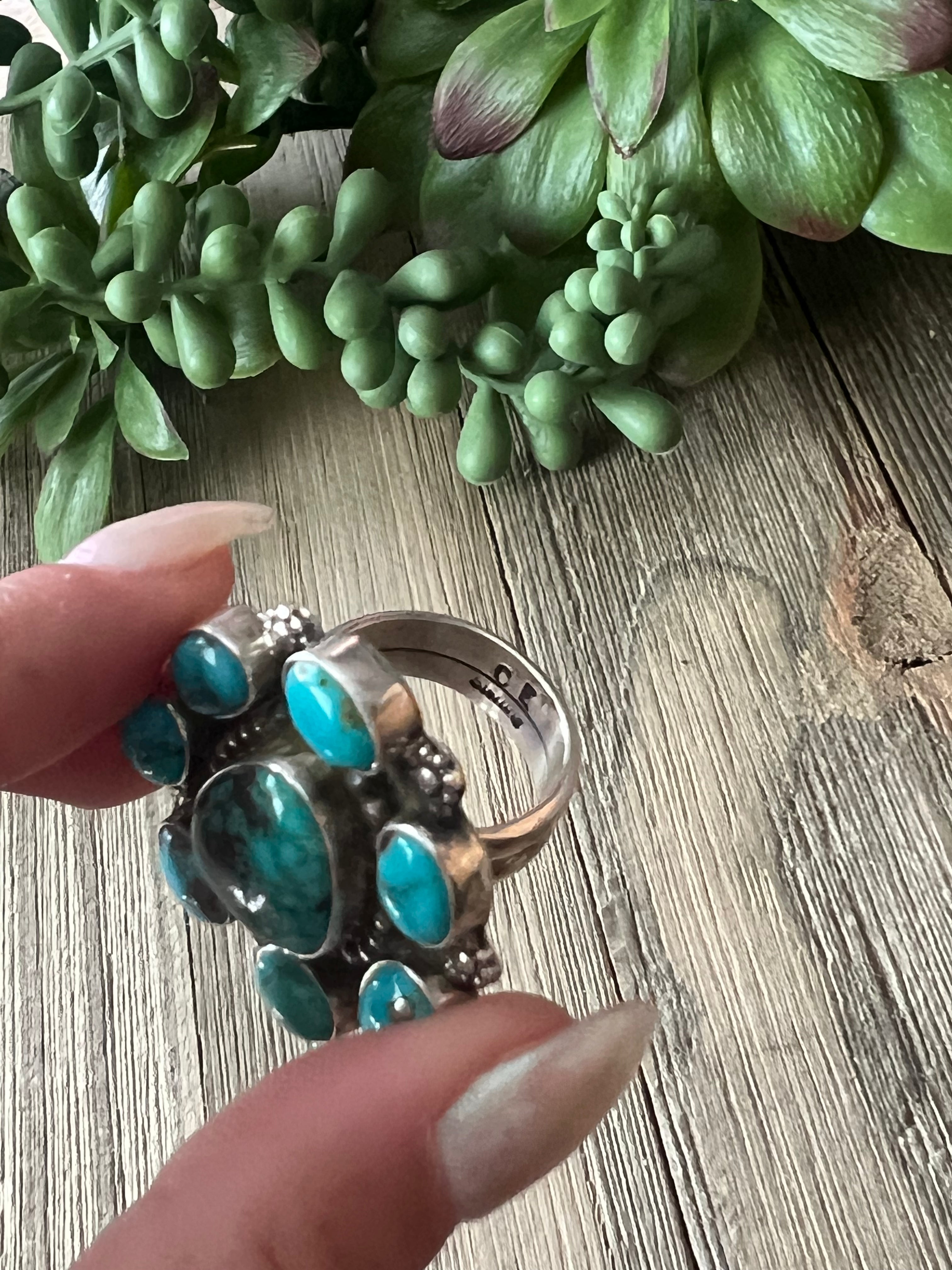 Chris Etsitty Kingman Turquoise & Sterling Silver Ring Size 6.75