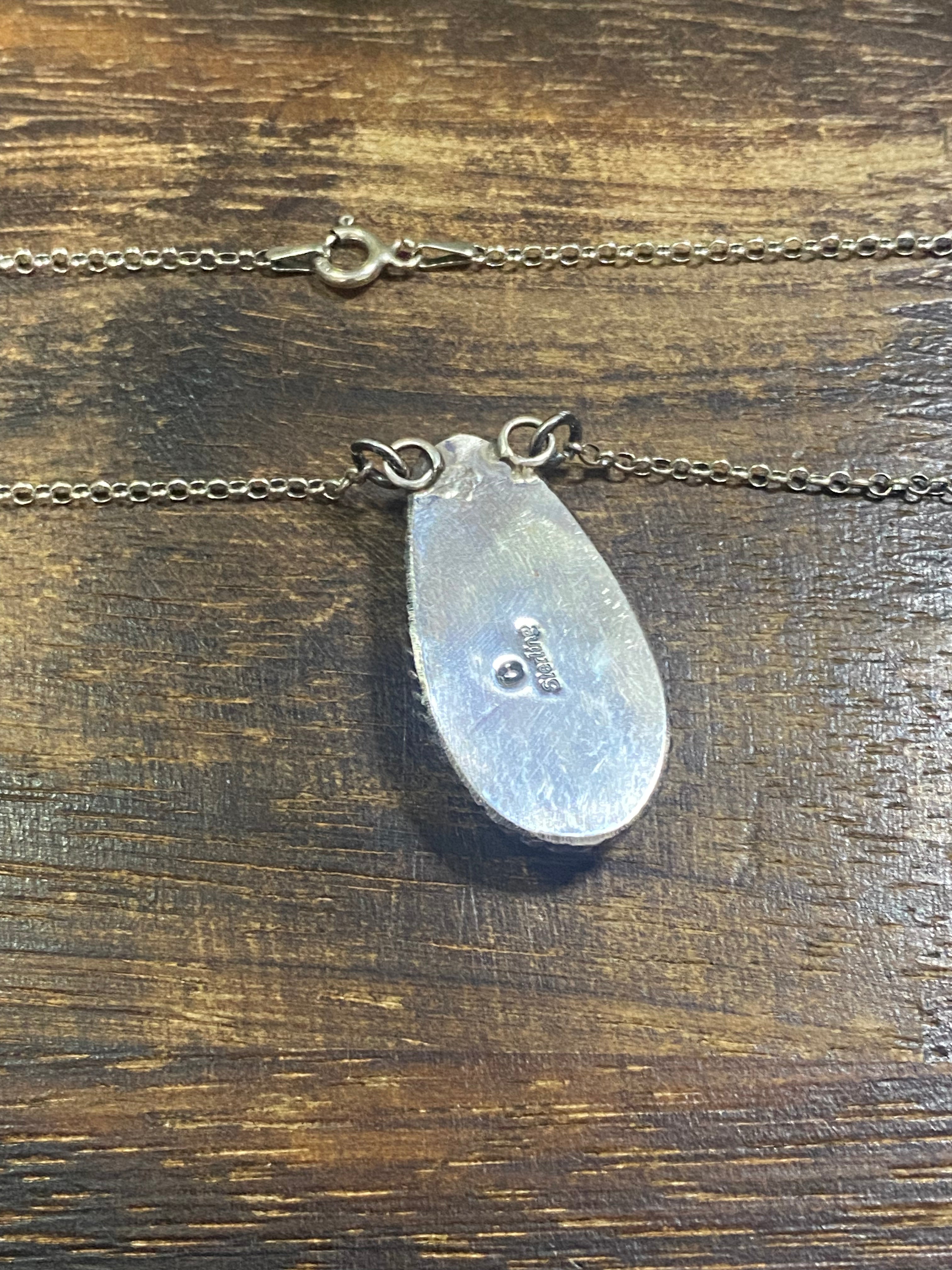 Clifton Davis #8 Turquoise & Sterling Silver Necklace. It measures 19 inches long and just over 16 inches long. Signed by the artist and stamped sterling silver.