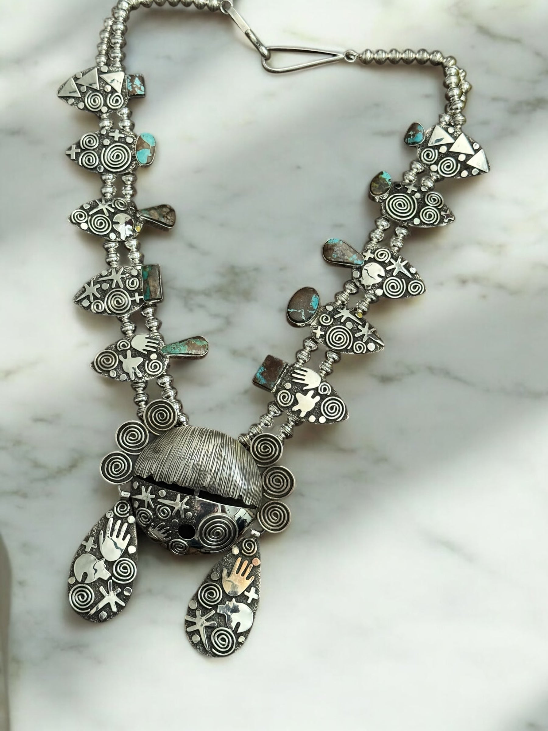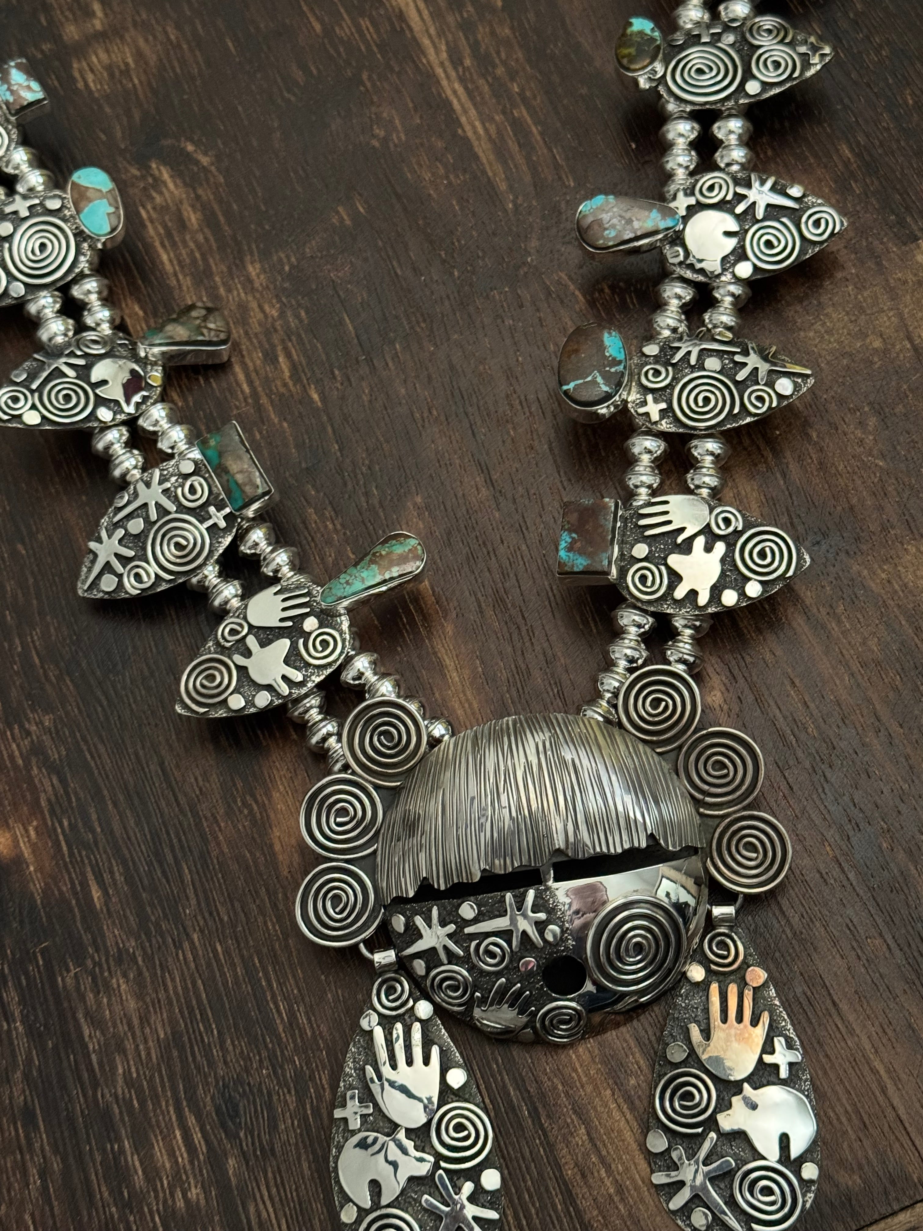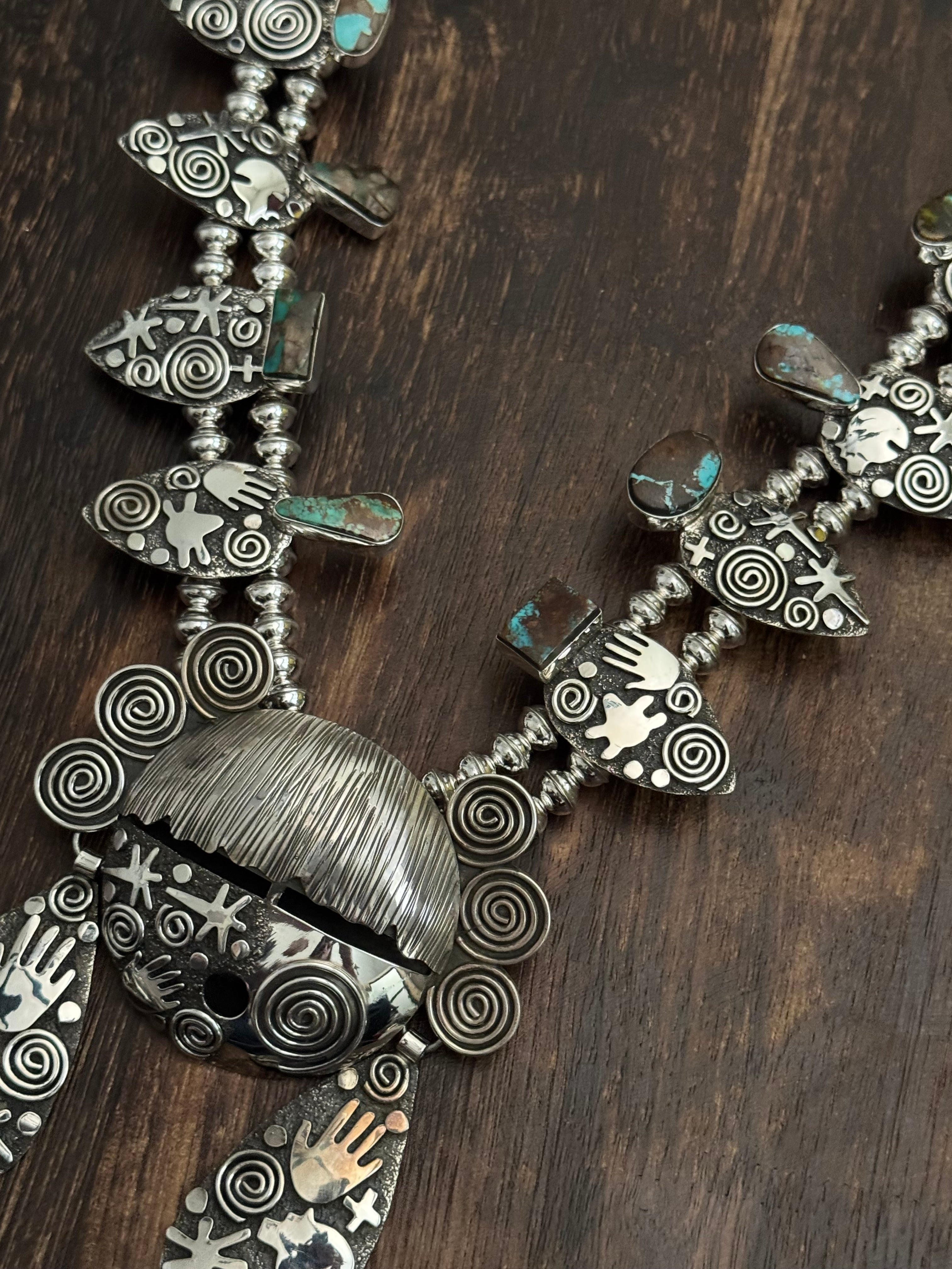 Alex Sanchez Natural Pilot Mountain Turquoise & Sterling Silver Squash Blossom Necklace Set