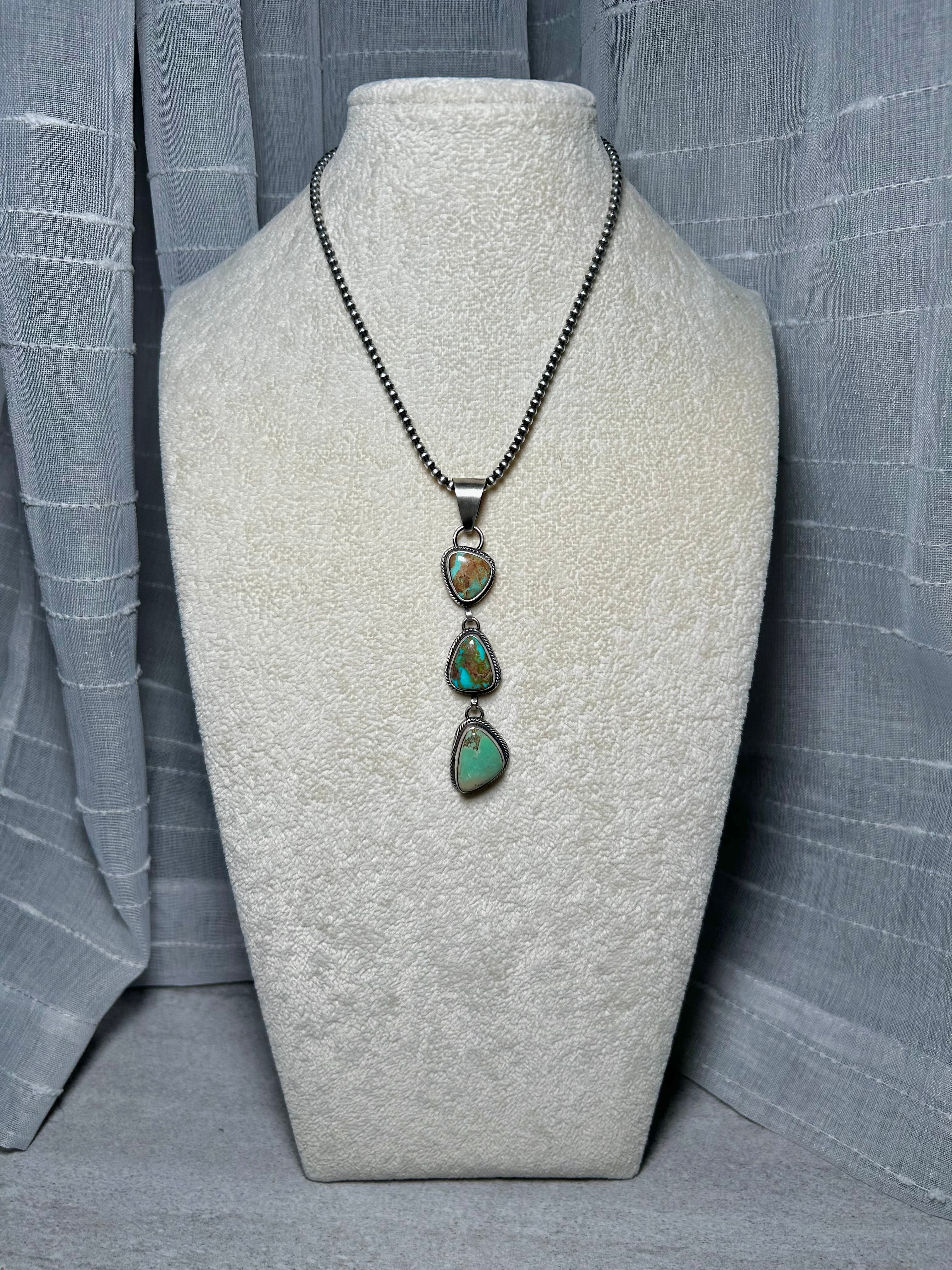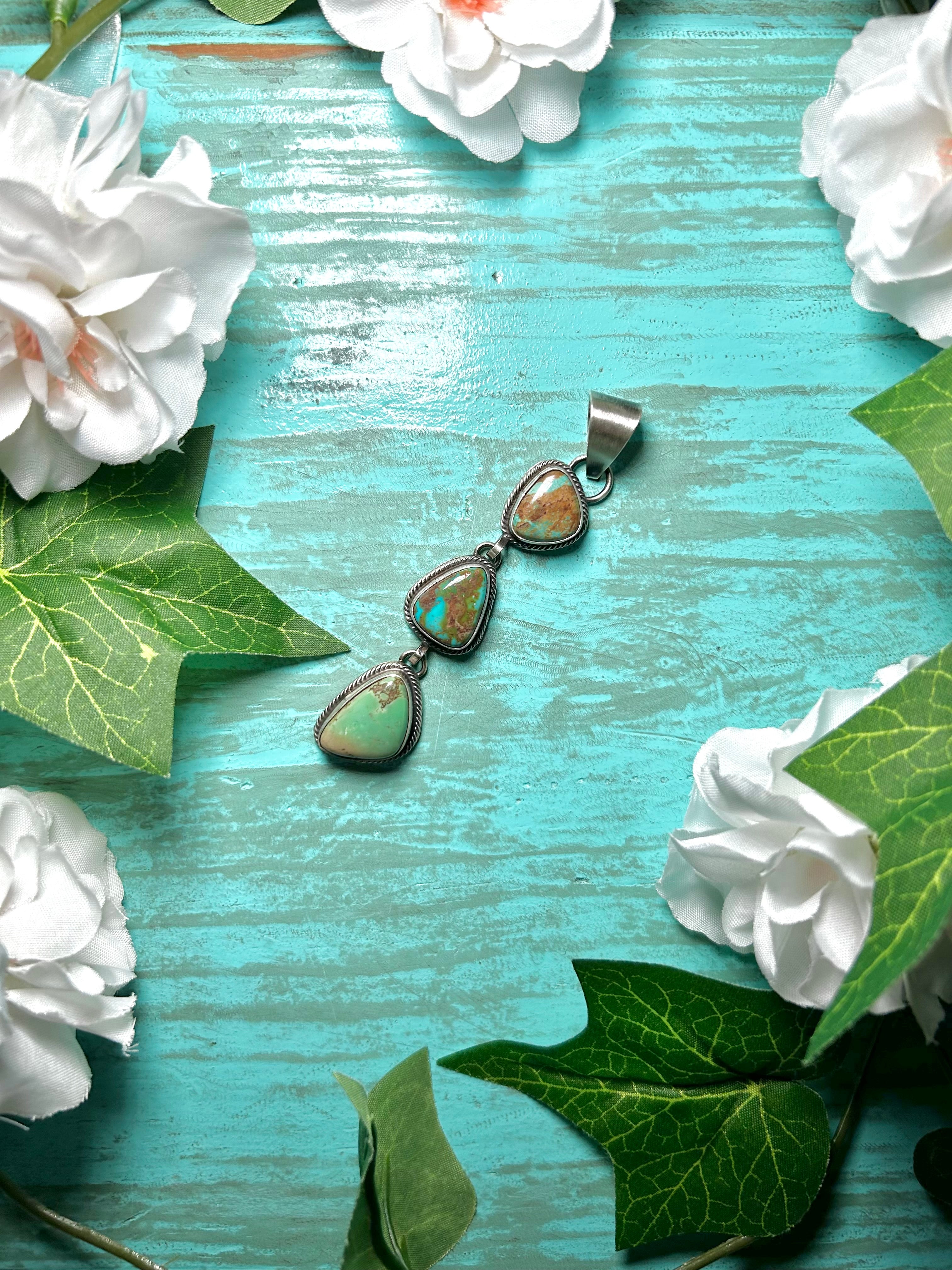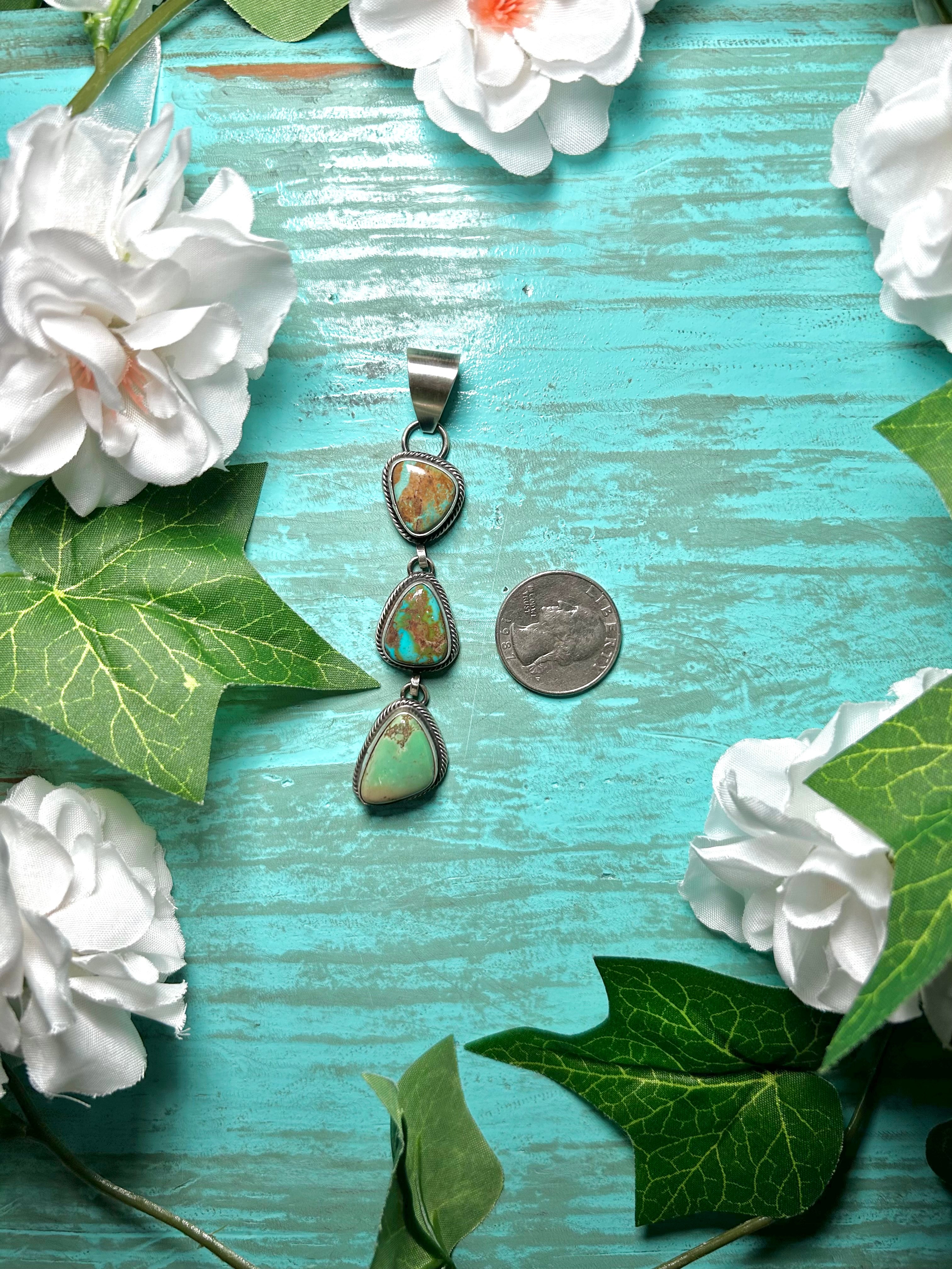 Anderson Largo Royston Turquoise & Sterling Silver Pendant. It measures 2 5/8 inches long and 5/8 of an inch wide. Pendant Only! Signed by the artist and stamped sterling silver.