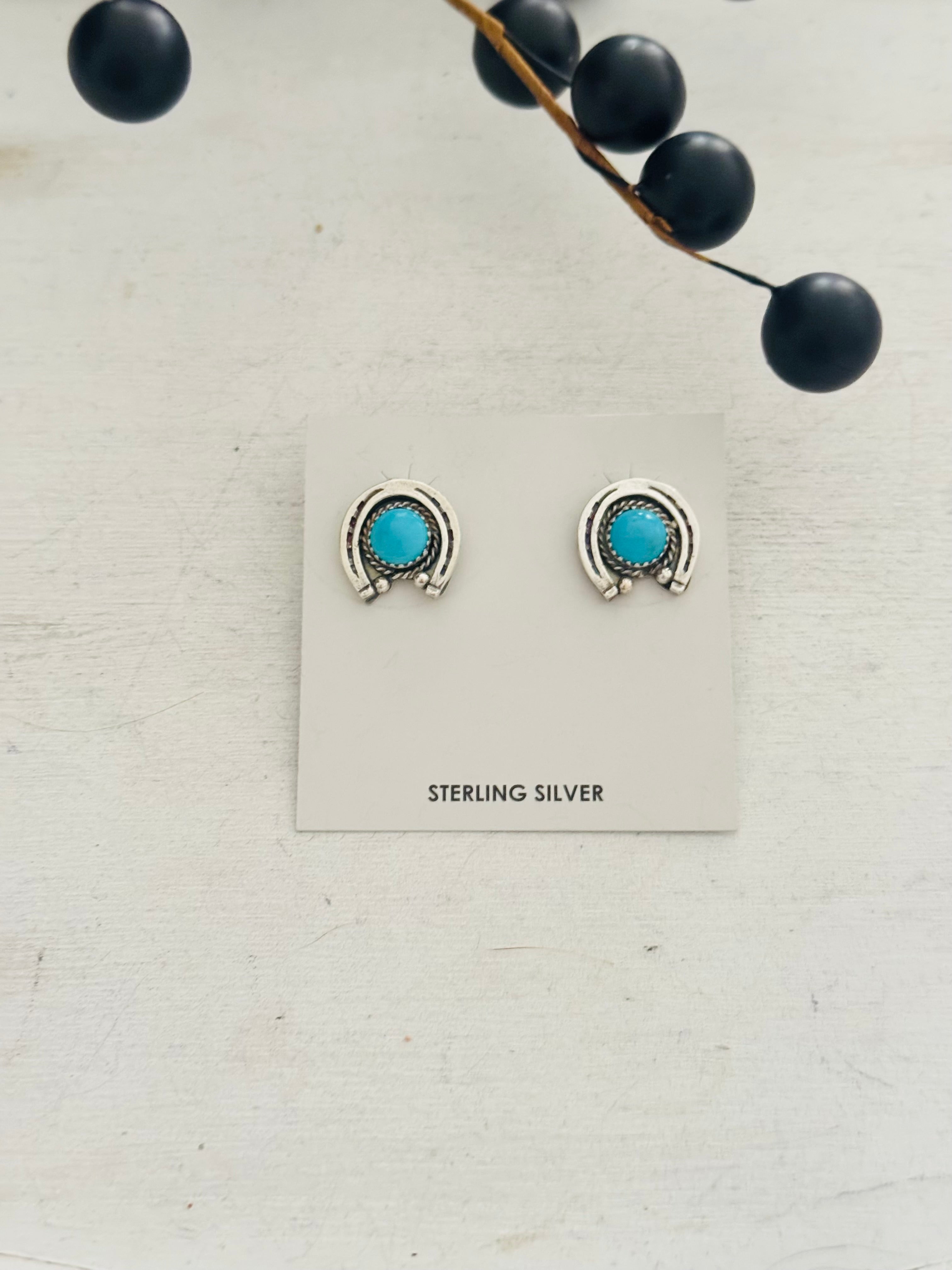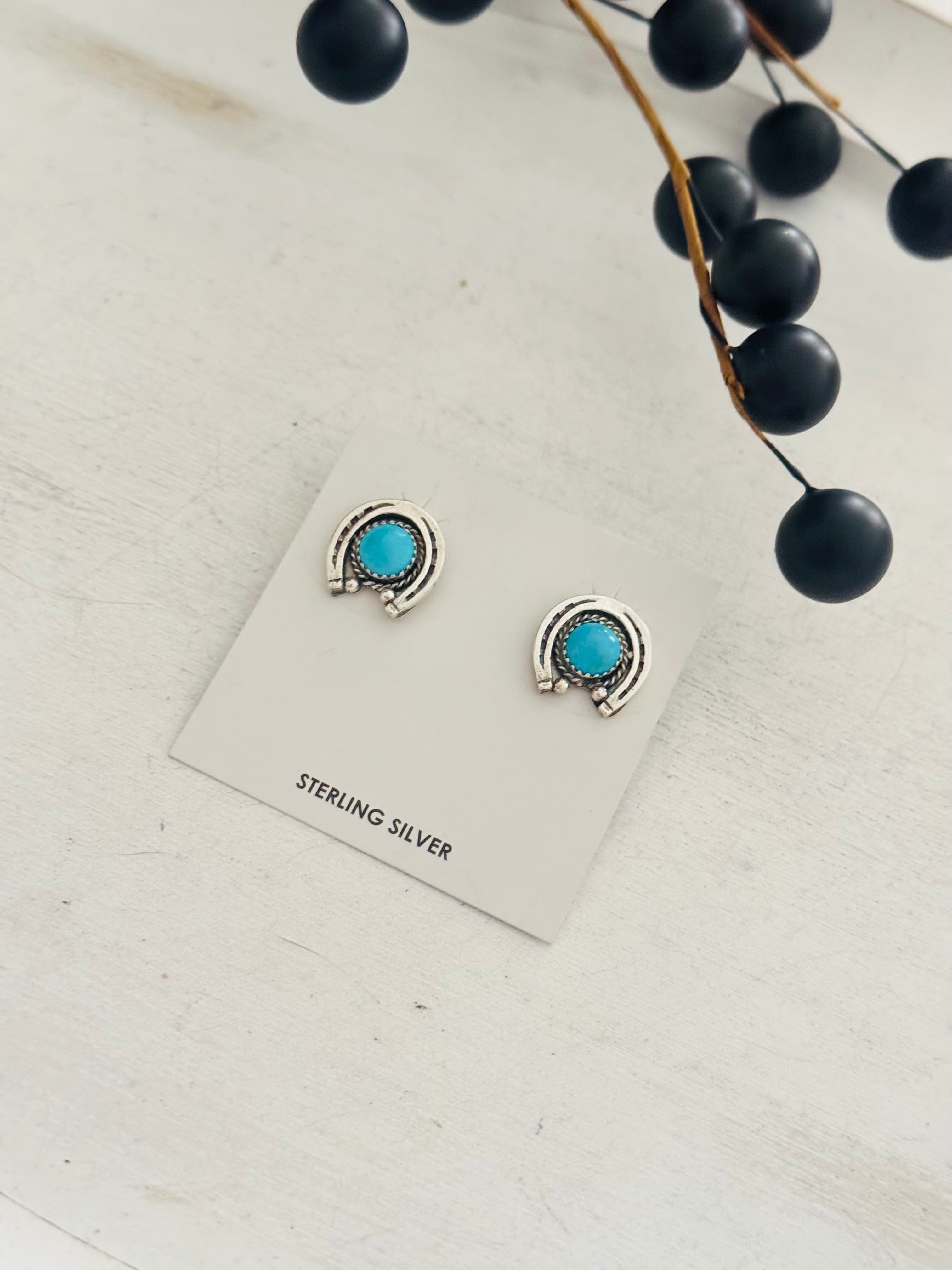 Annette Chiquito Kingman Turquoise & Sterling Silver Horse Shoe Post Earrings
