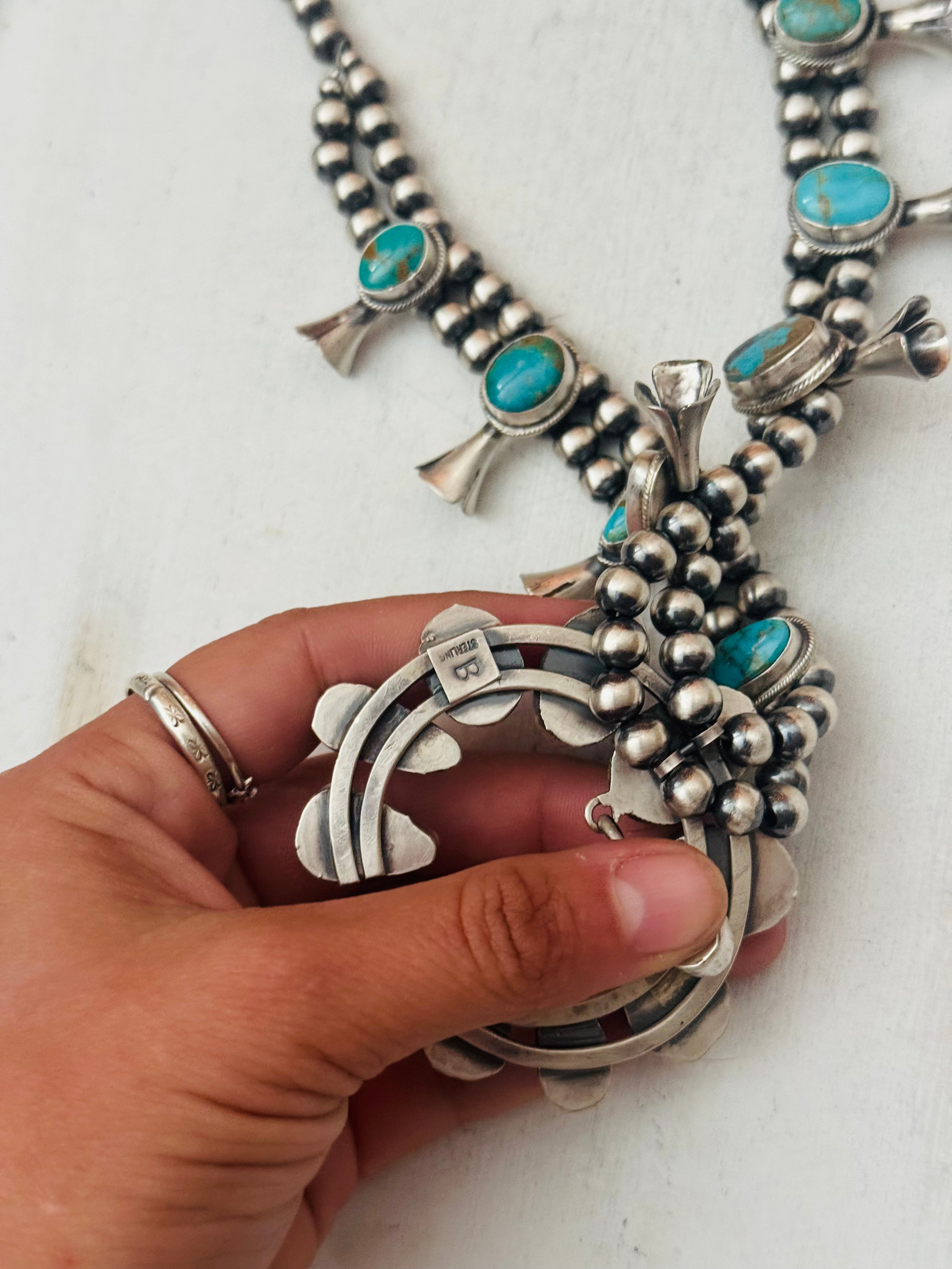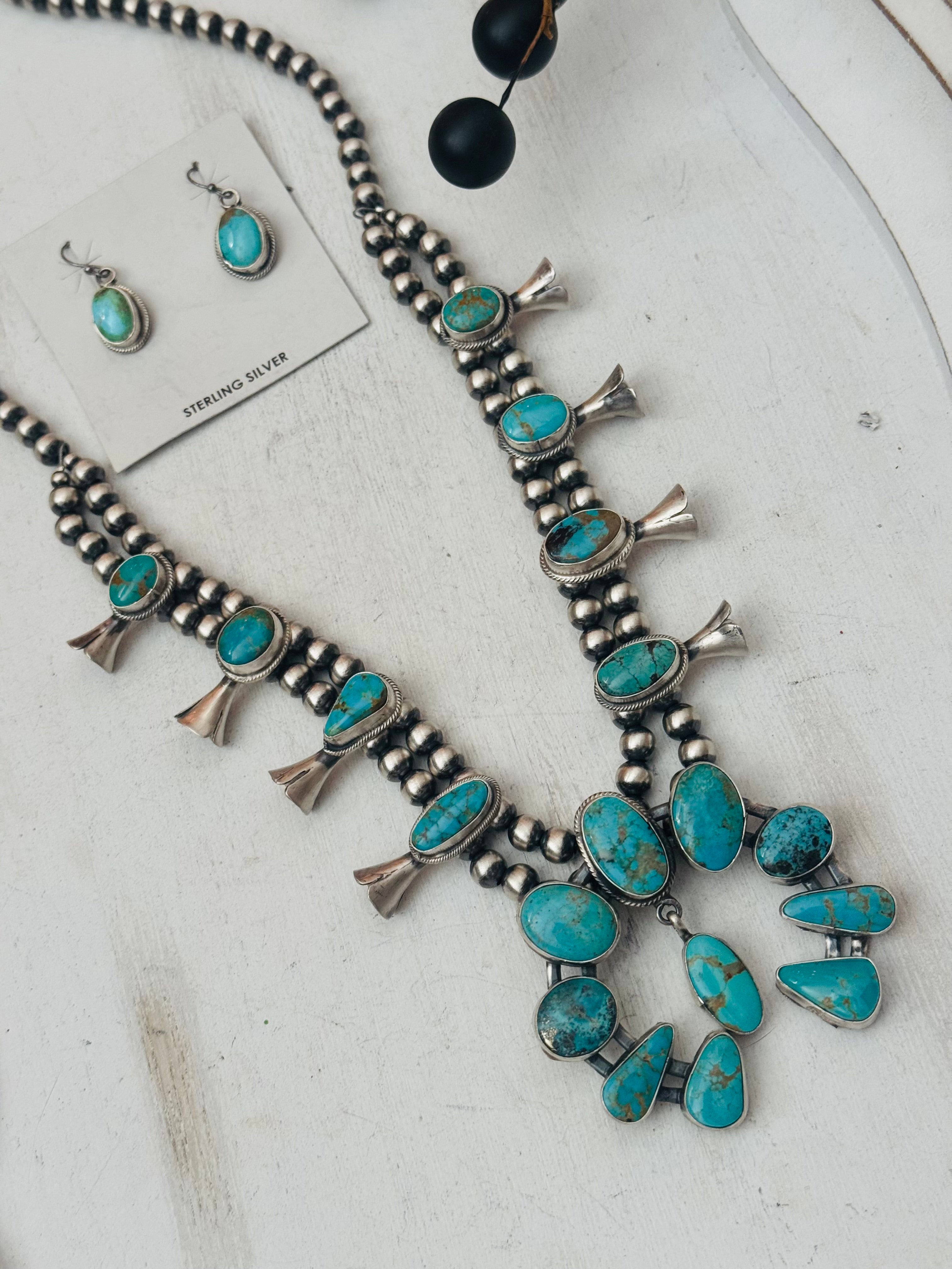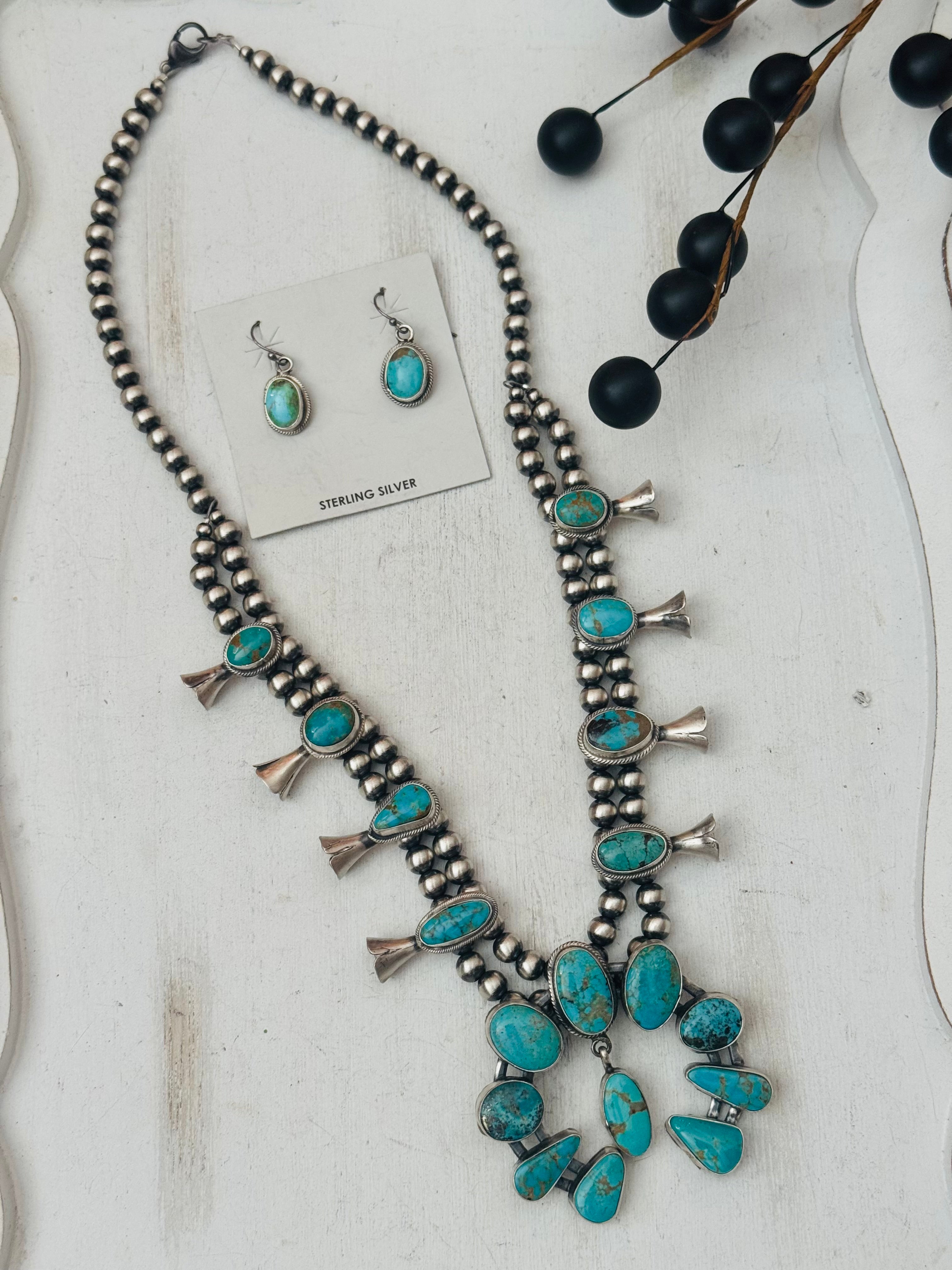 Lydia Begay Mixed Turquoise & Sterling Silver Squash Blossom Necklace Set