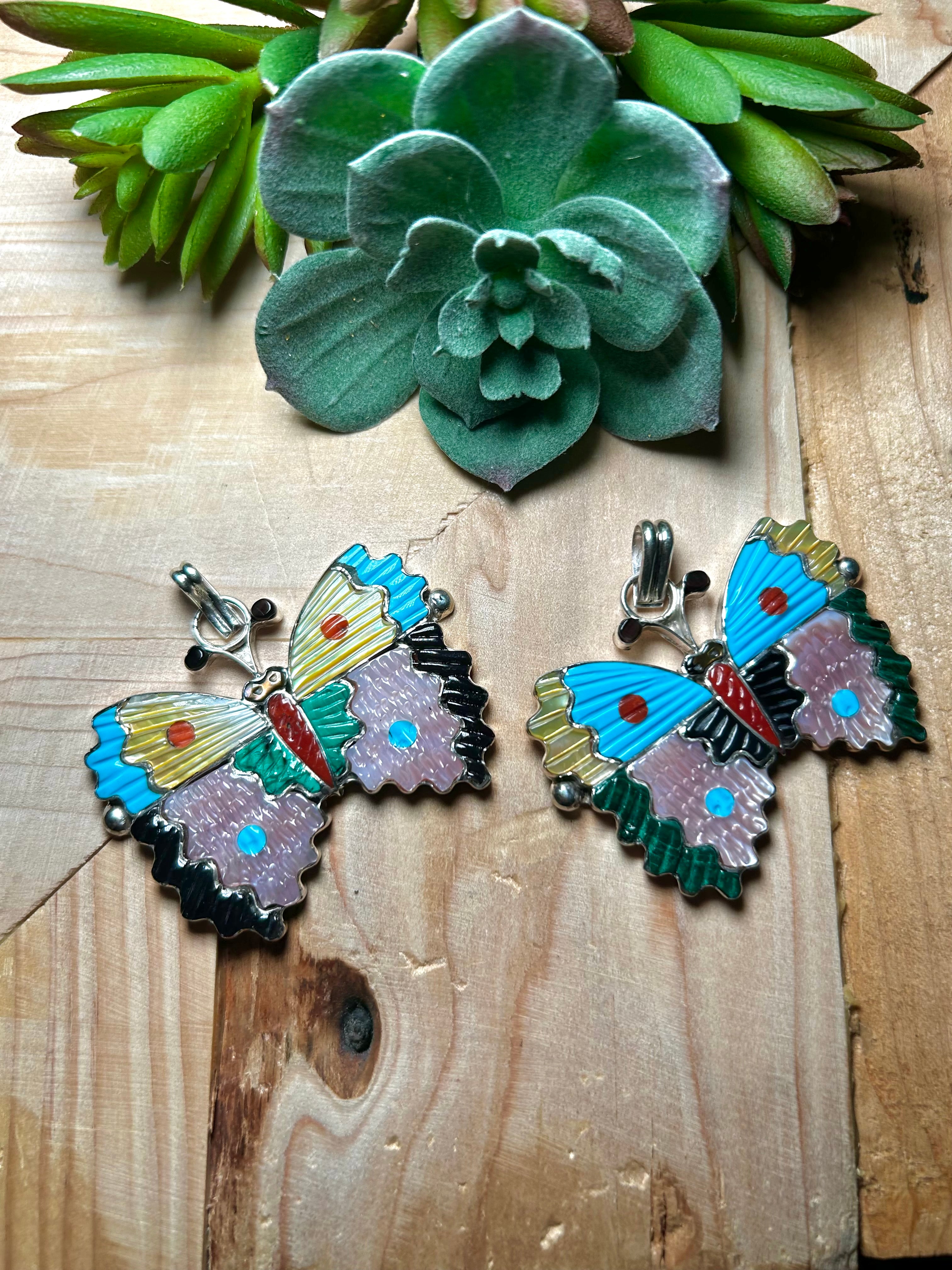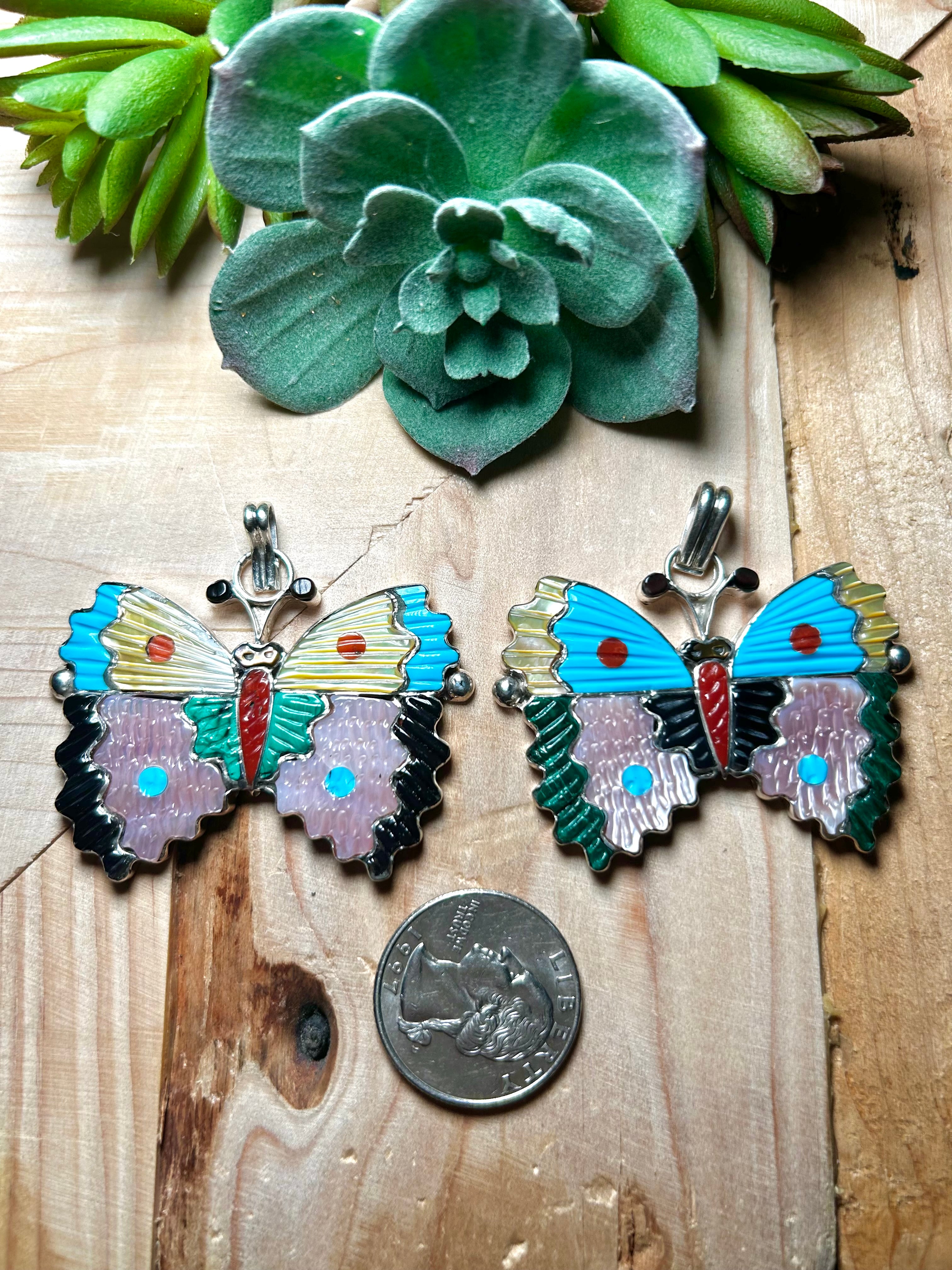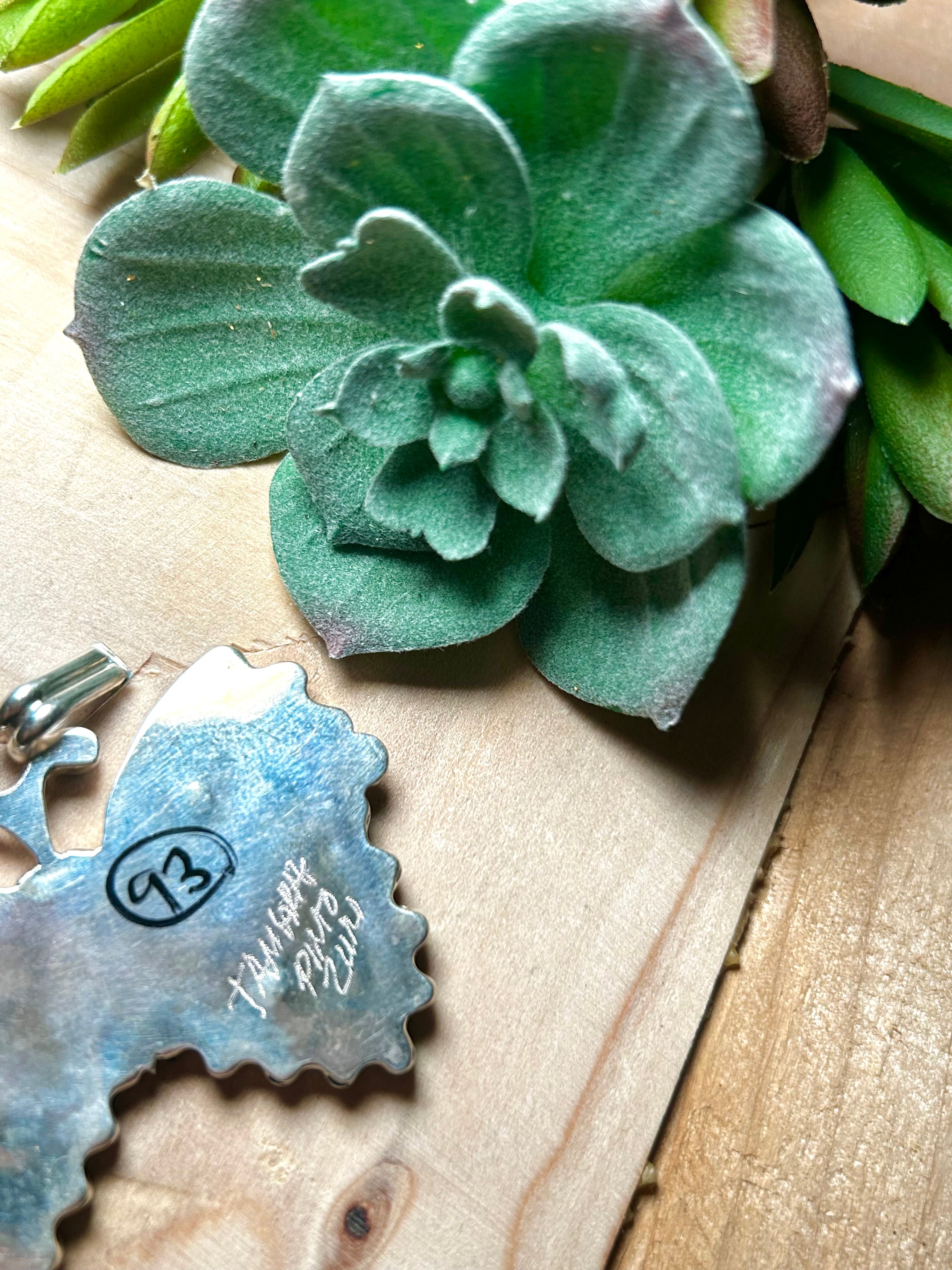 Tamara Pinto Multi Stone & Sterling Silver Pendant. It measures 2 inches long and 2 1/8 inches wide. Pendant Only. Signed by the artist and stamped sterling silver.
