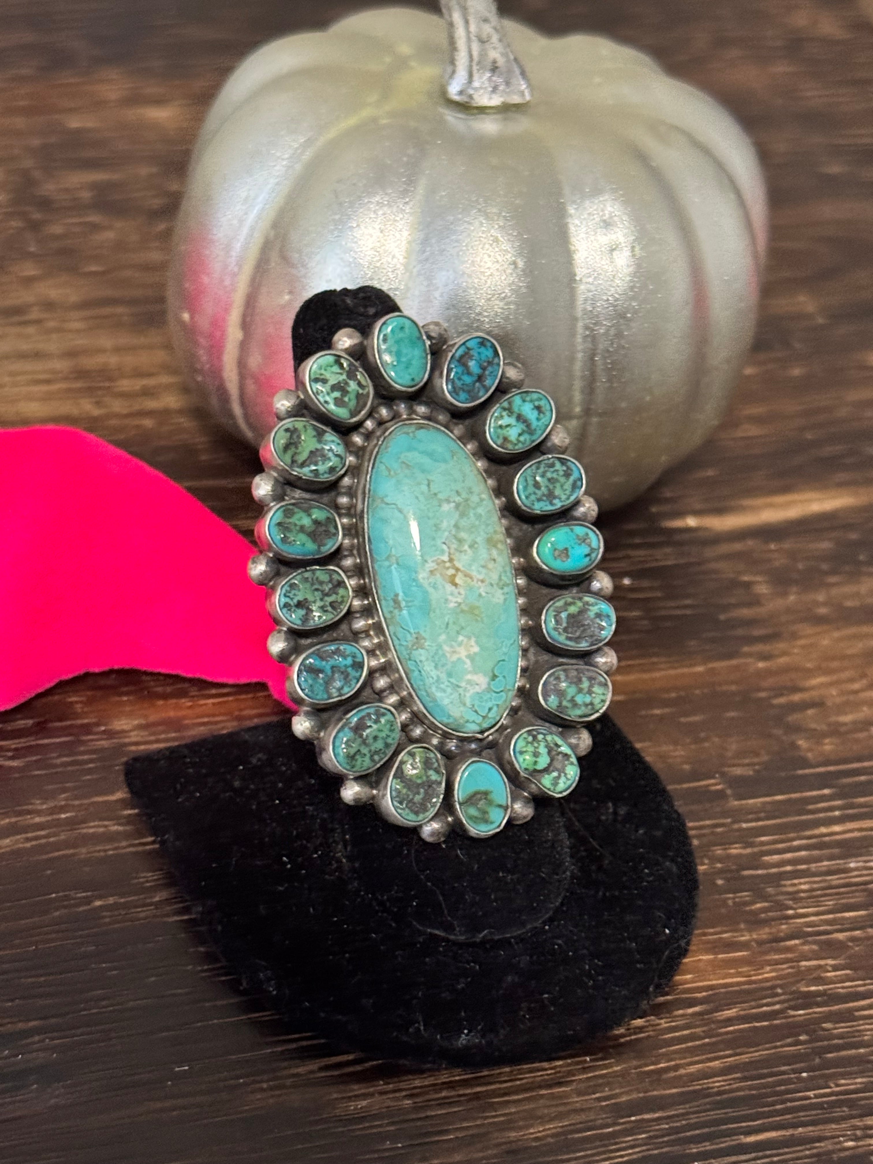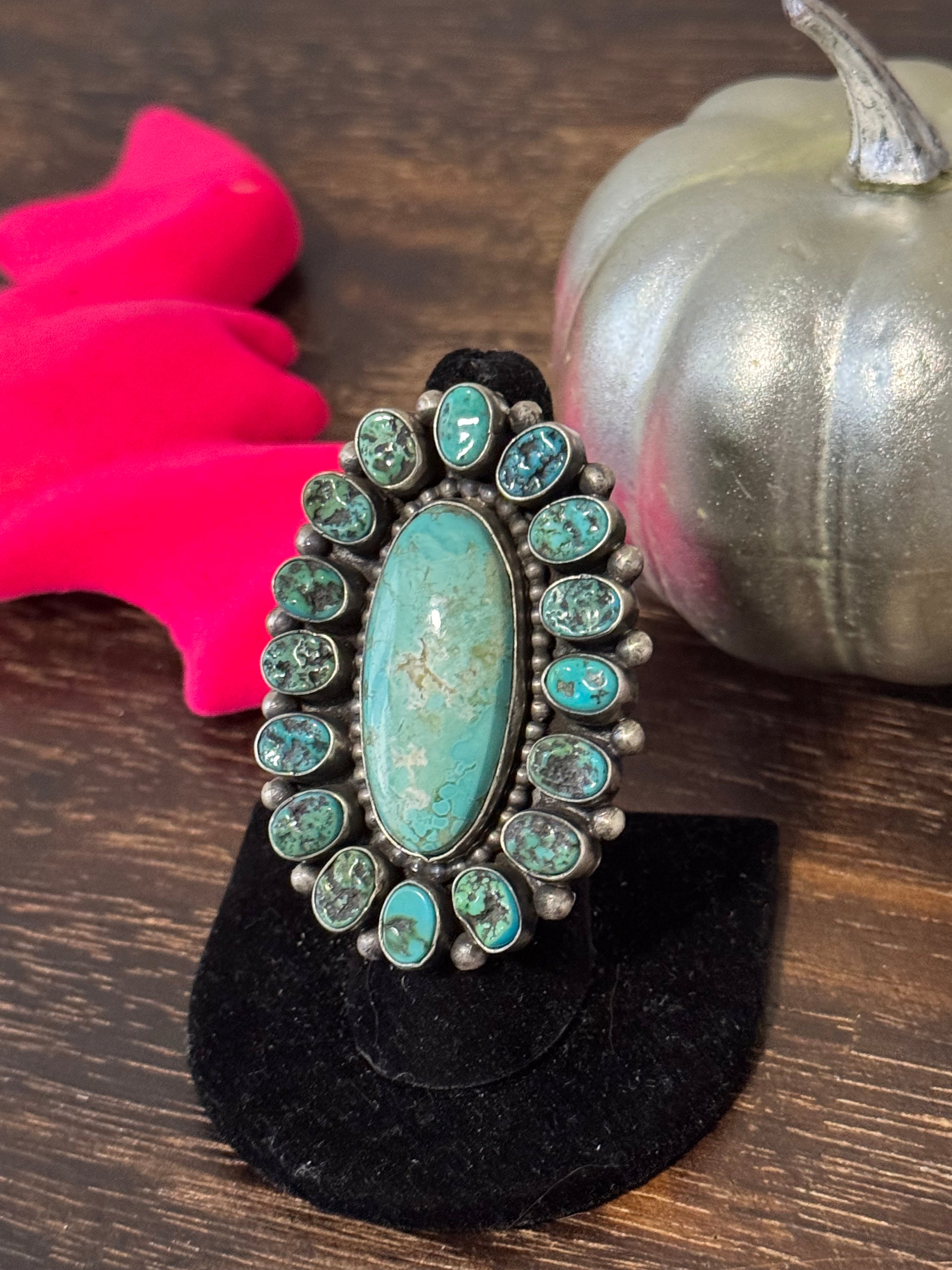 Blaine Yellowhorse Kingman Turquoise & Sterling Silver Ring Size 7.25
