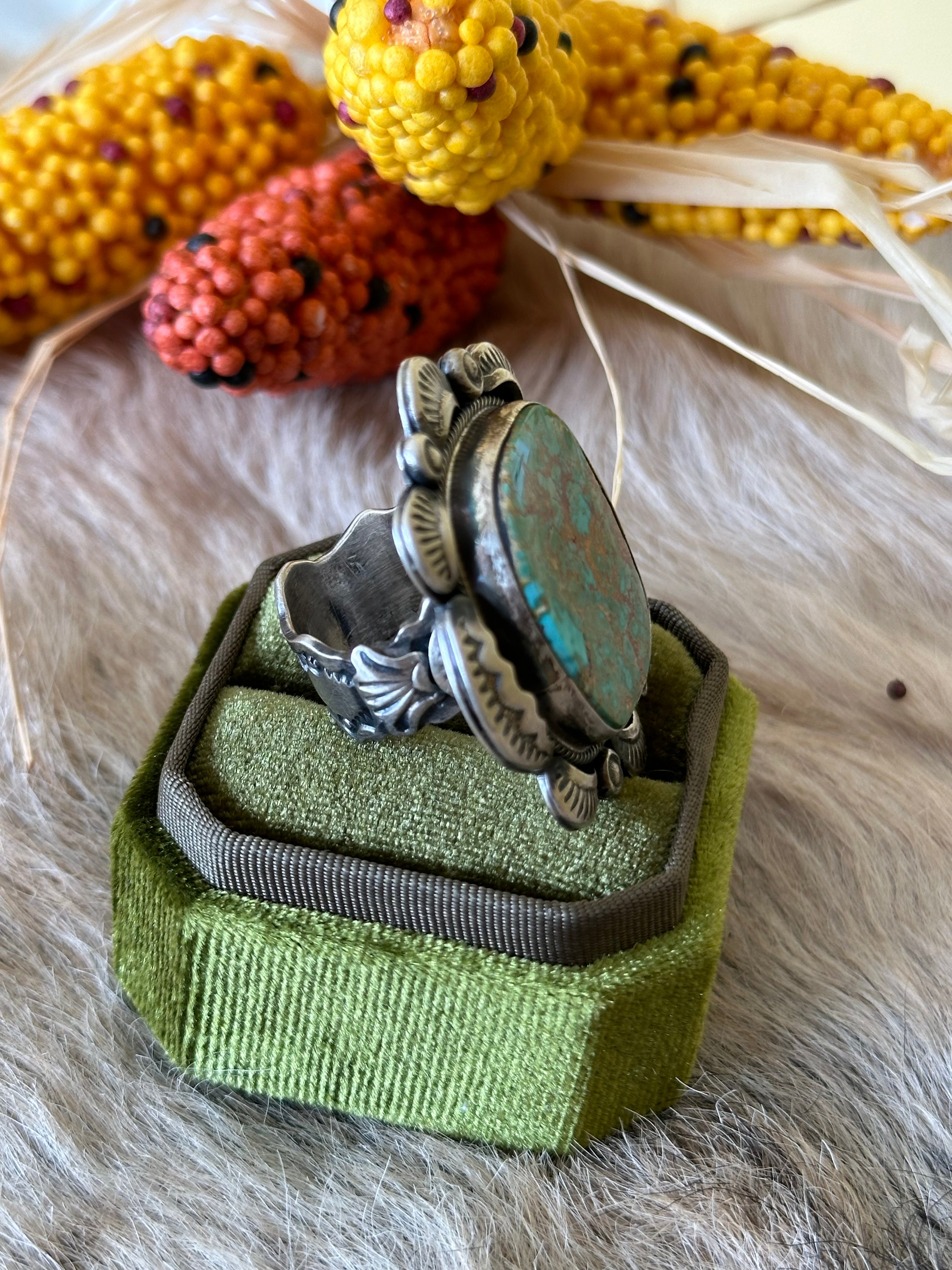 Gilbert Tom Royston Turquoise & Sterling Silver Ring Size 8.5