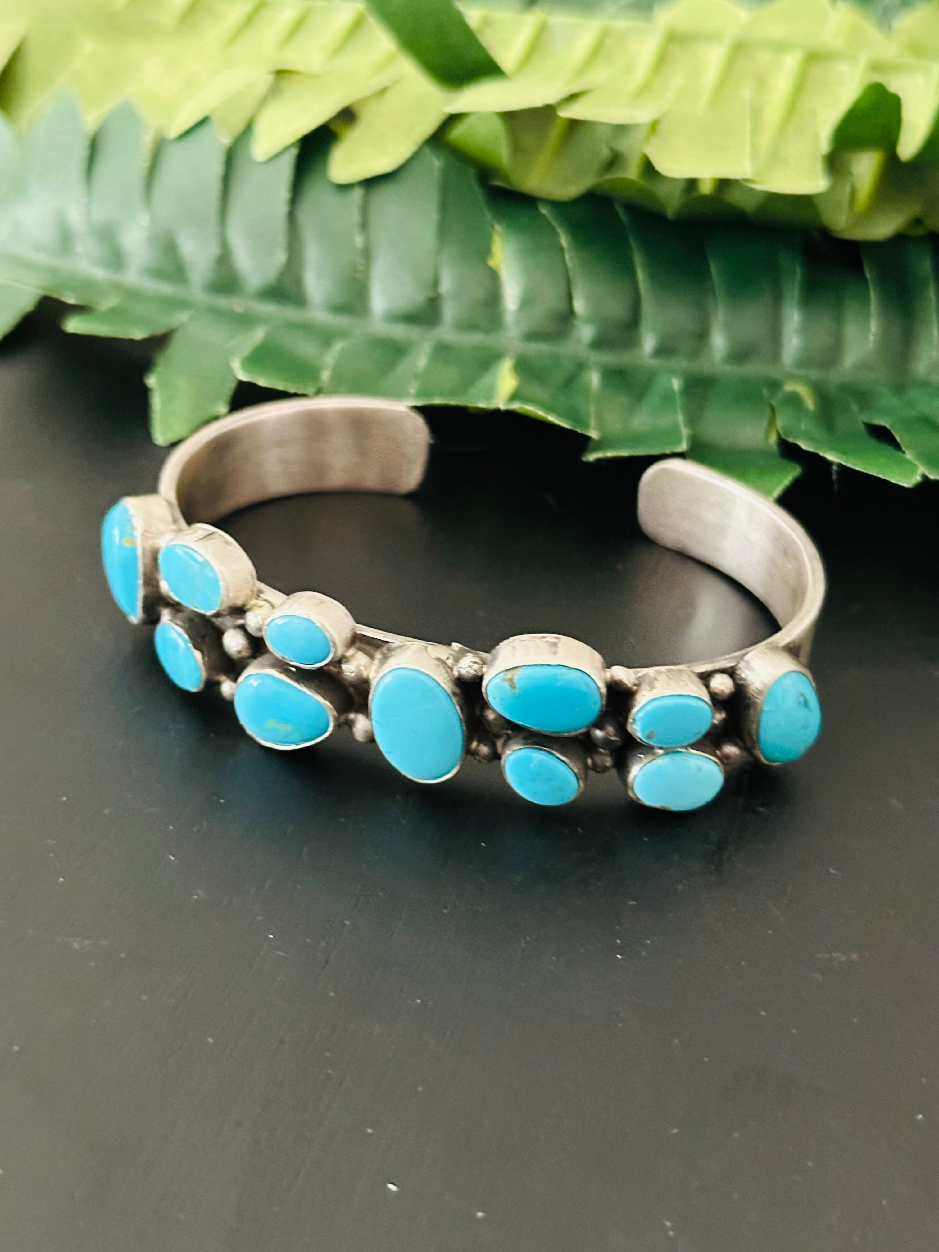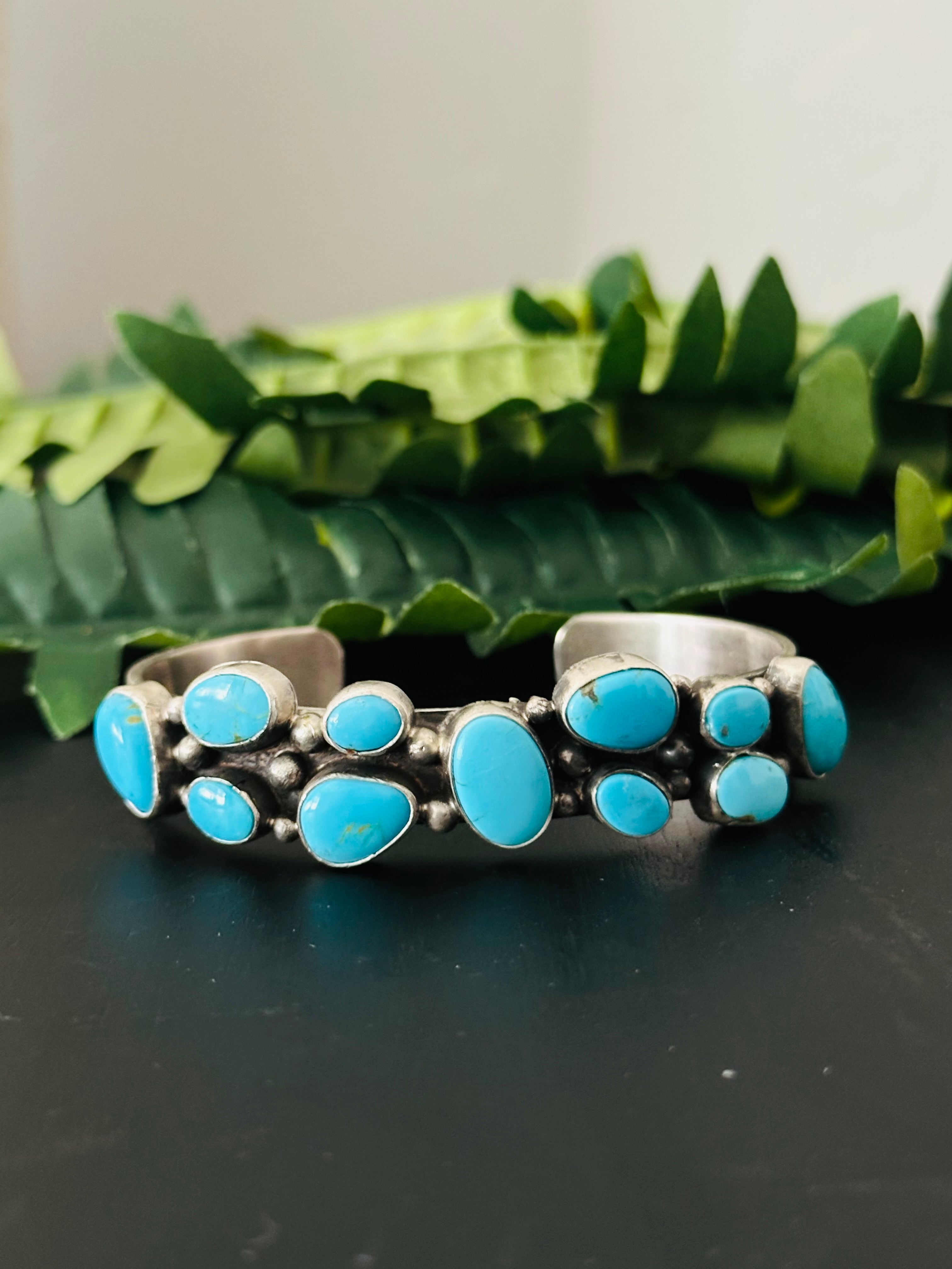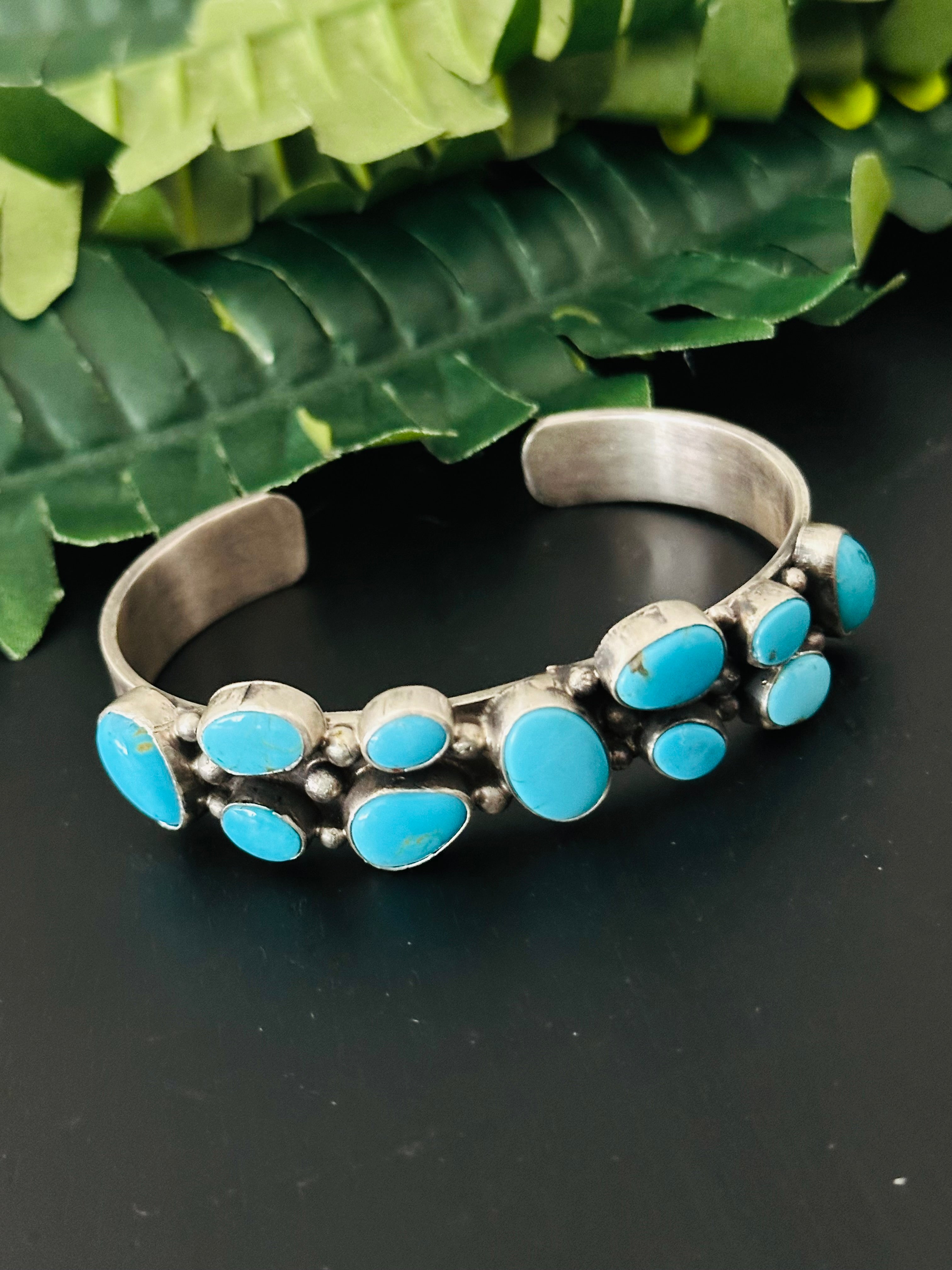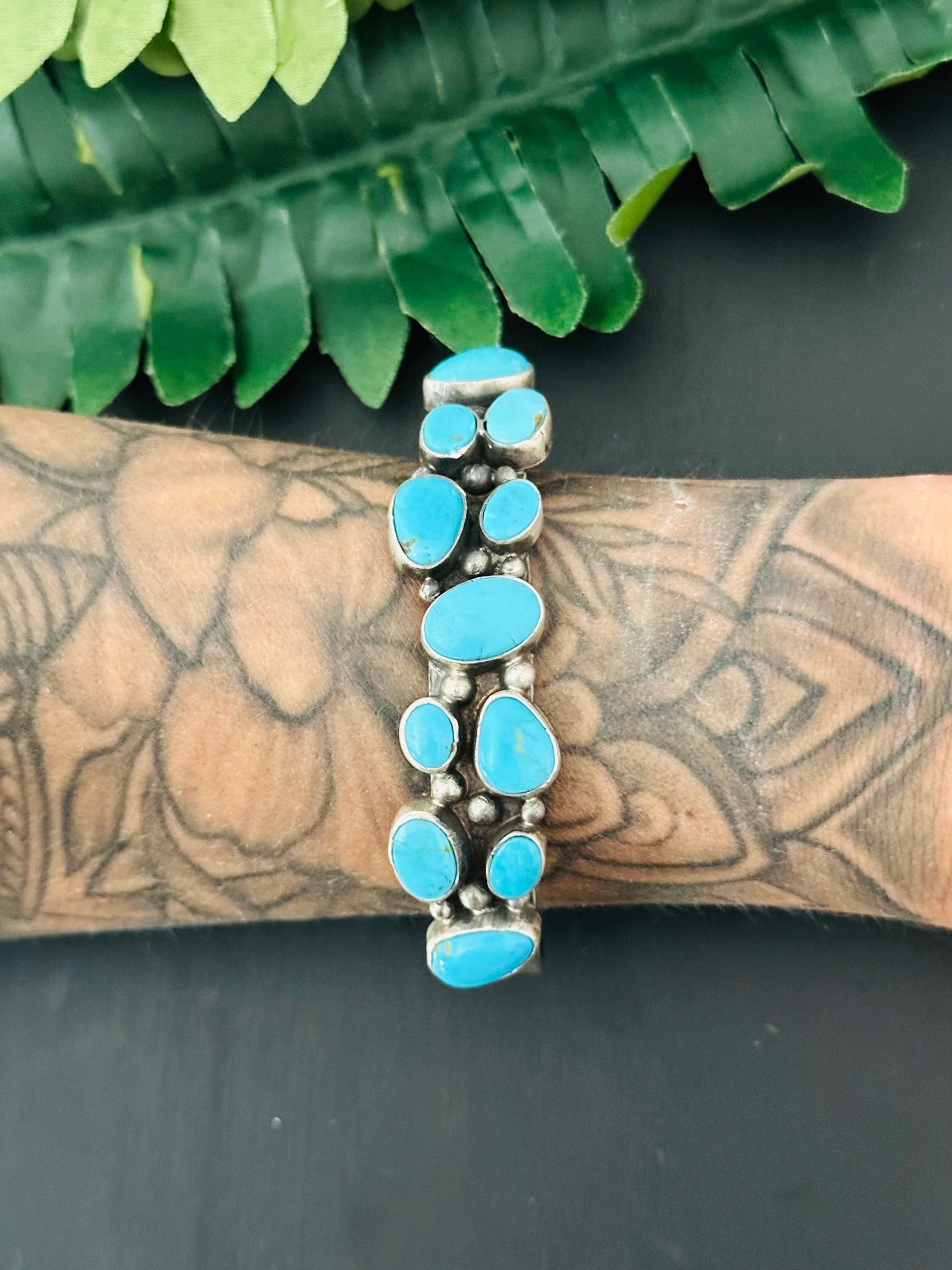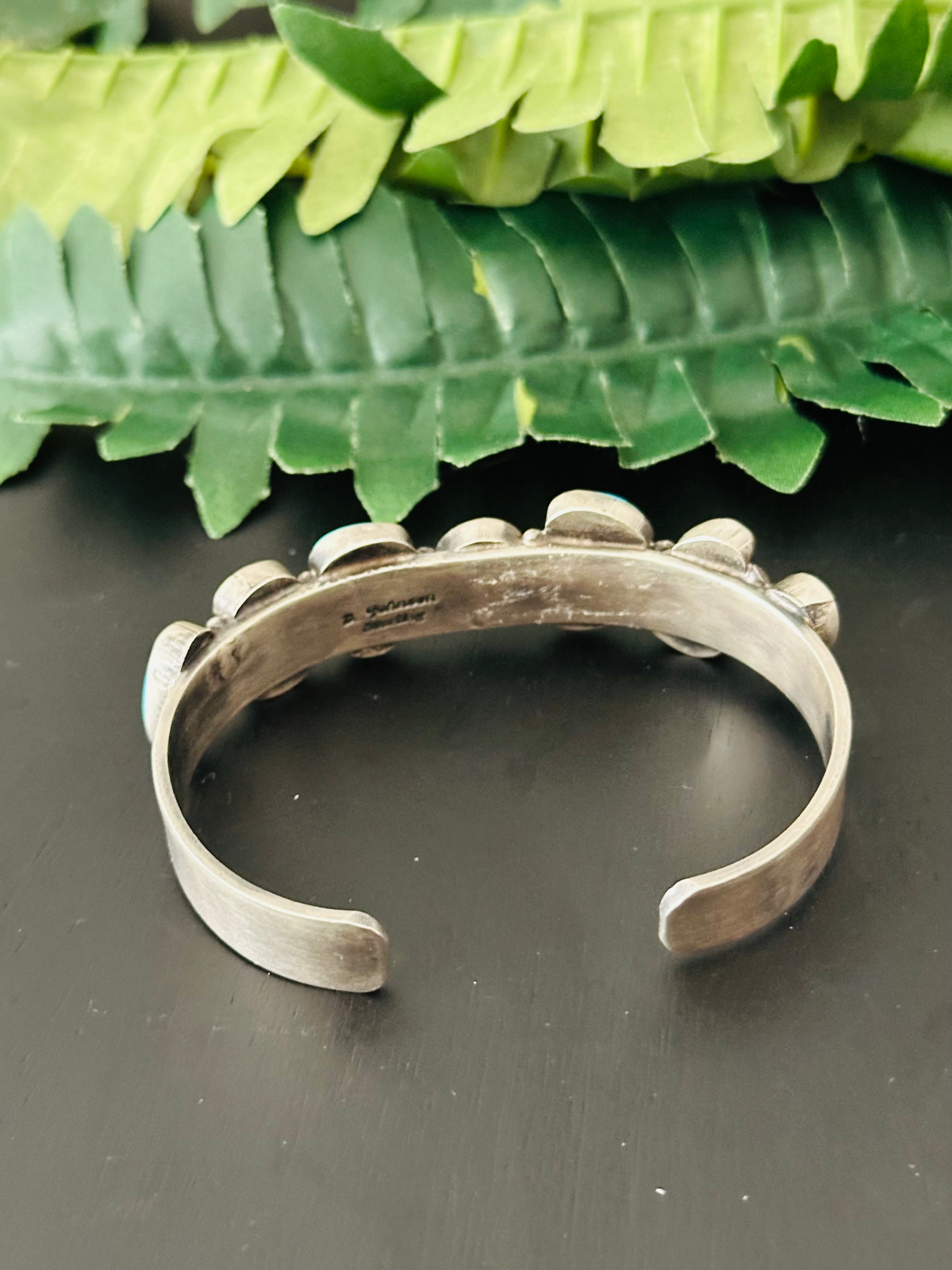 Bobby Johnson Kingman Turquoise & Sterling Silver Cluster Cuff Bracelet