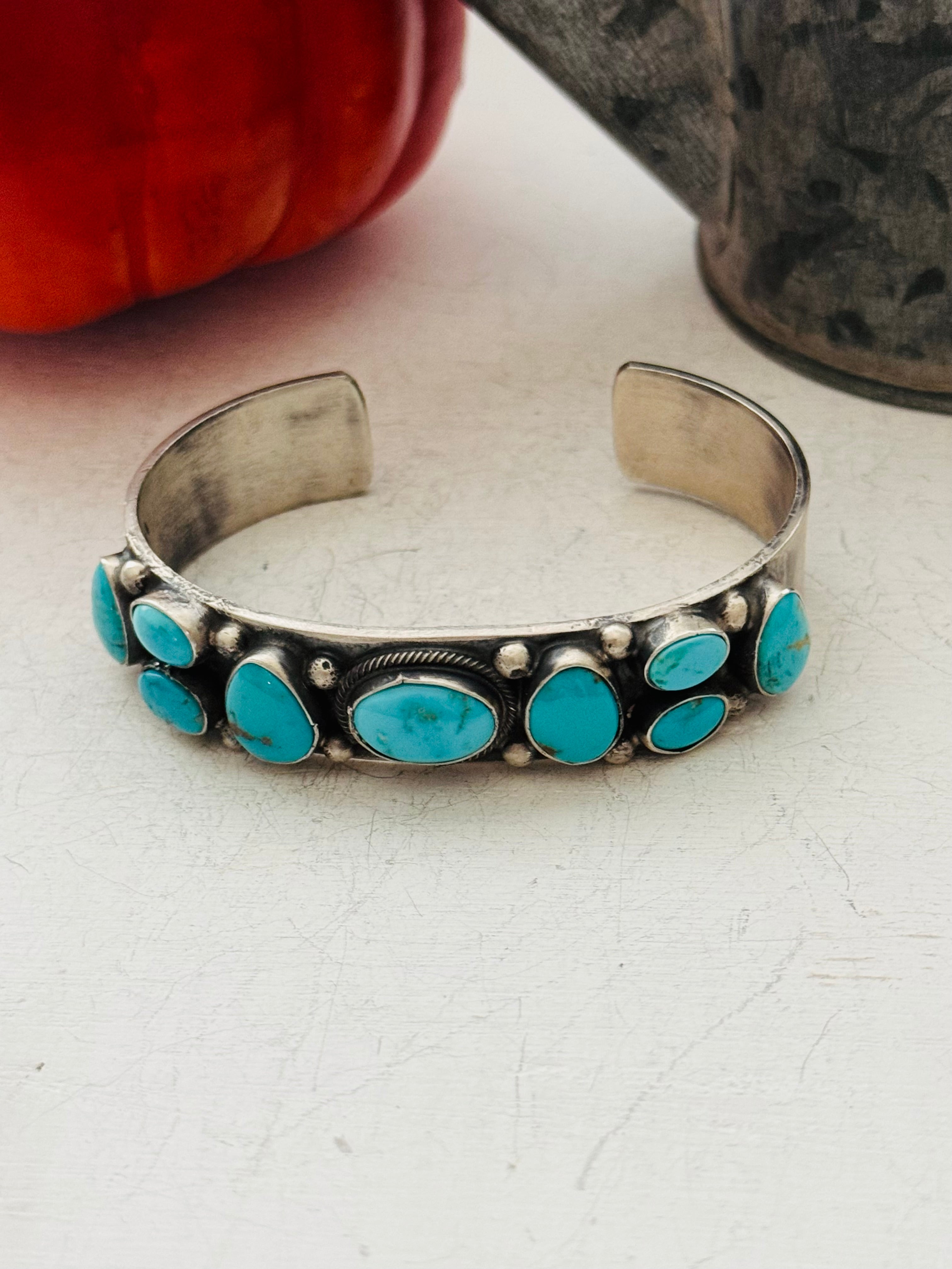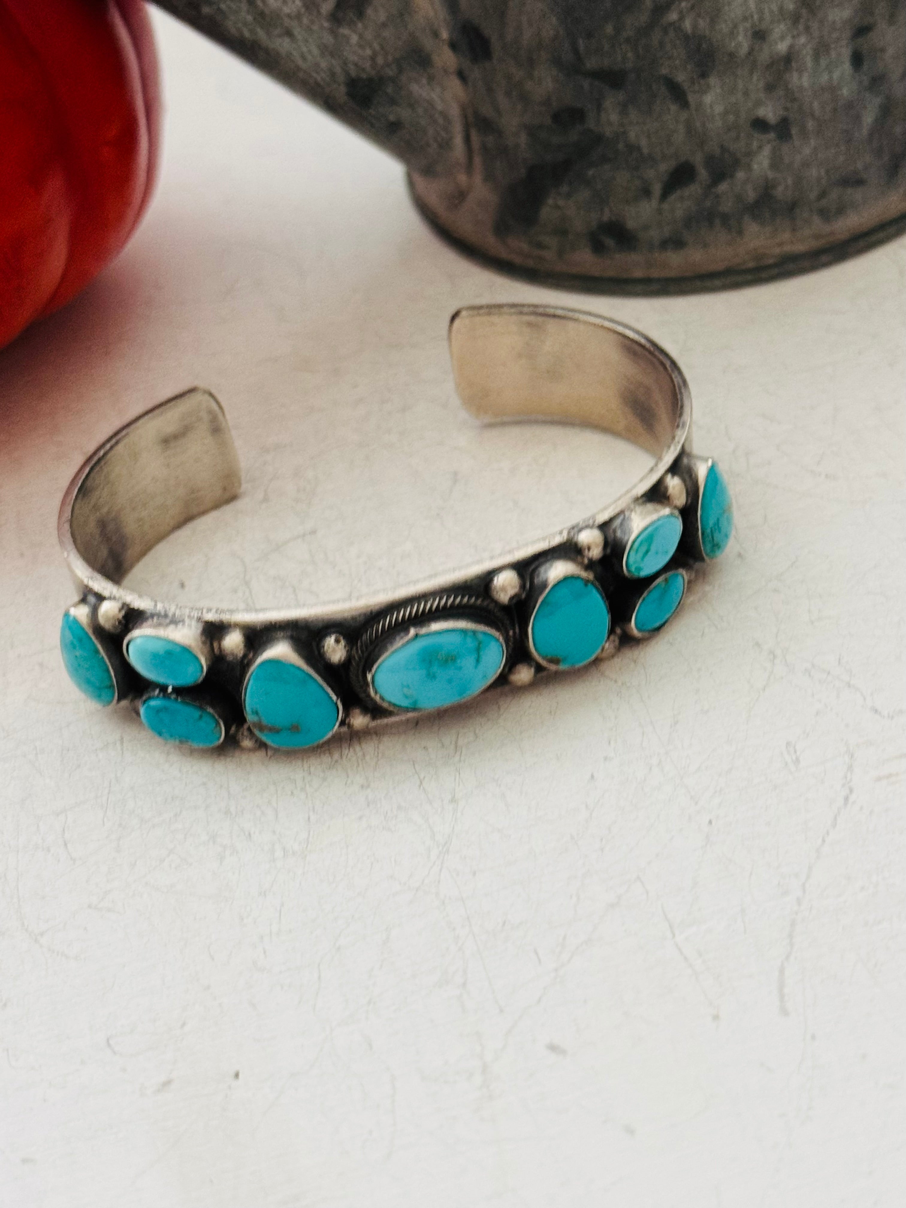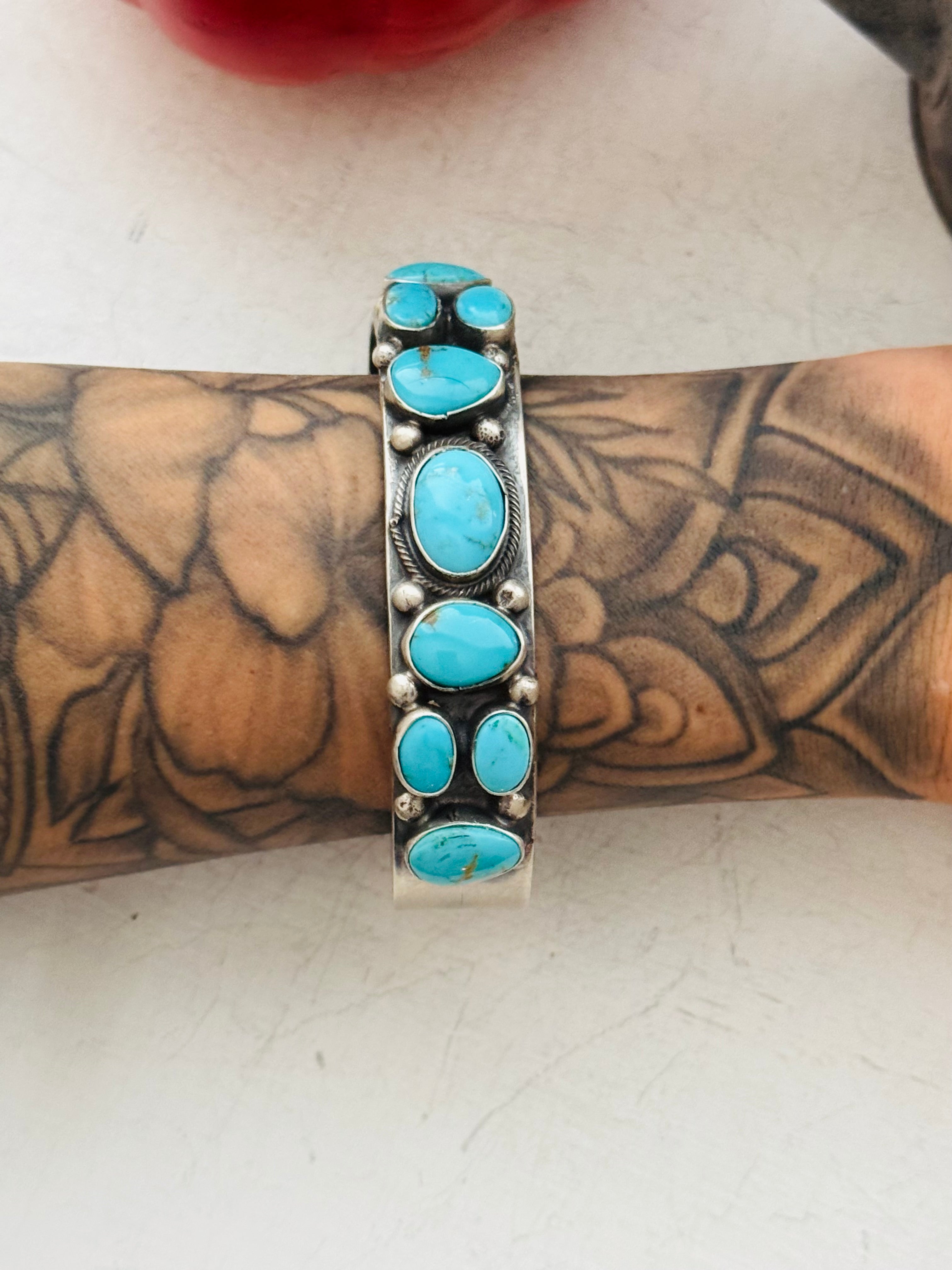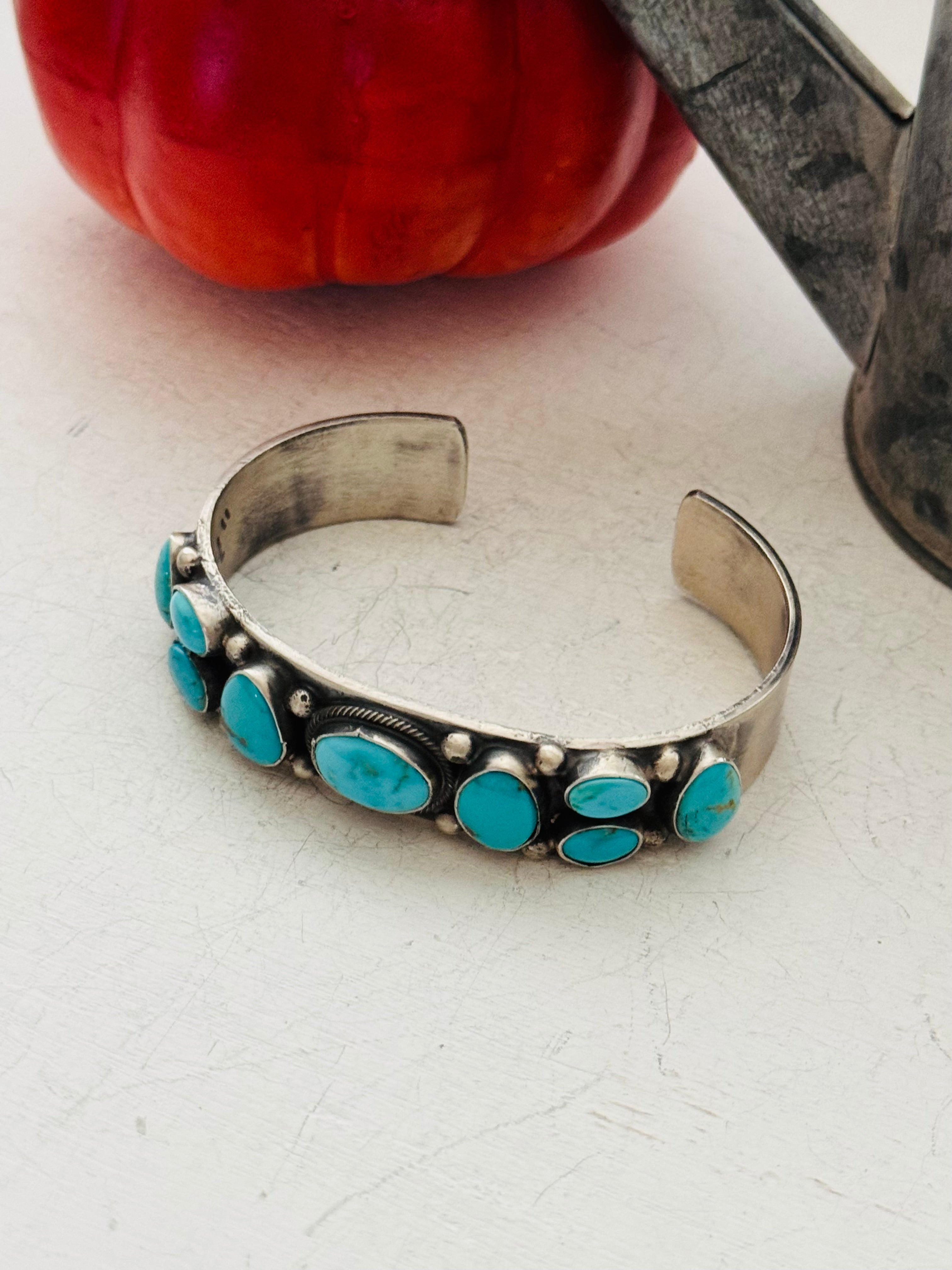 Bobby Johnson Kingman Turquoise & Sterling Silver Cluster Cuff Bracelet