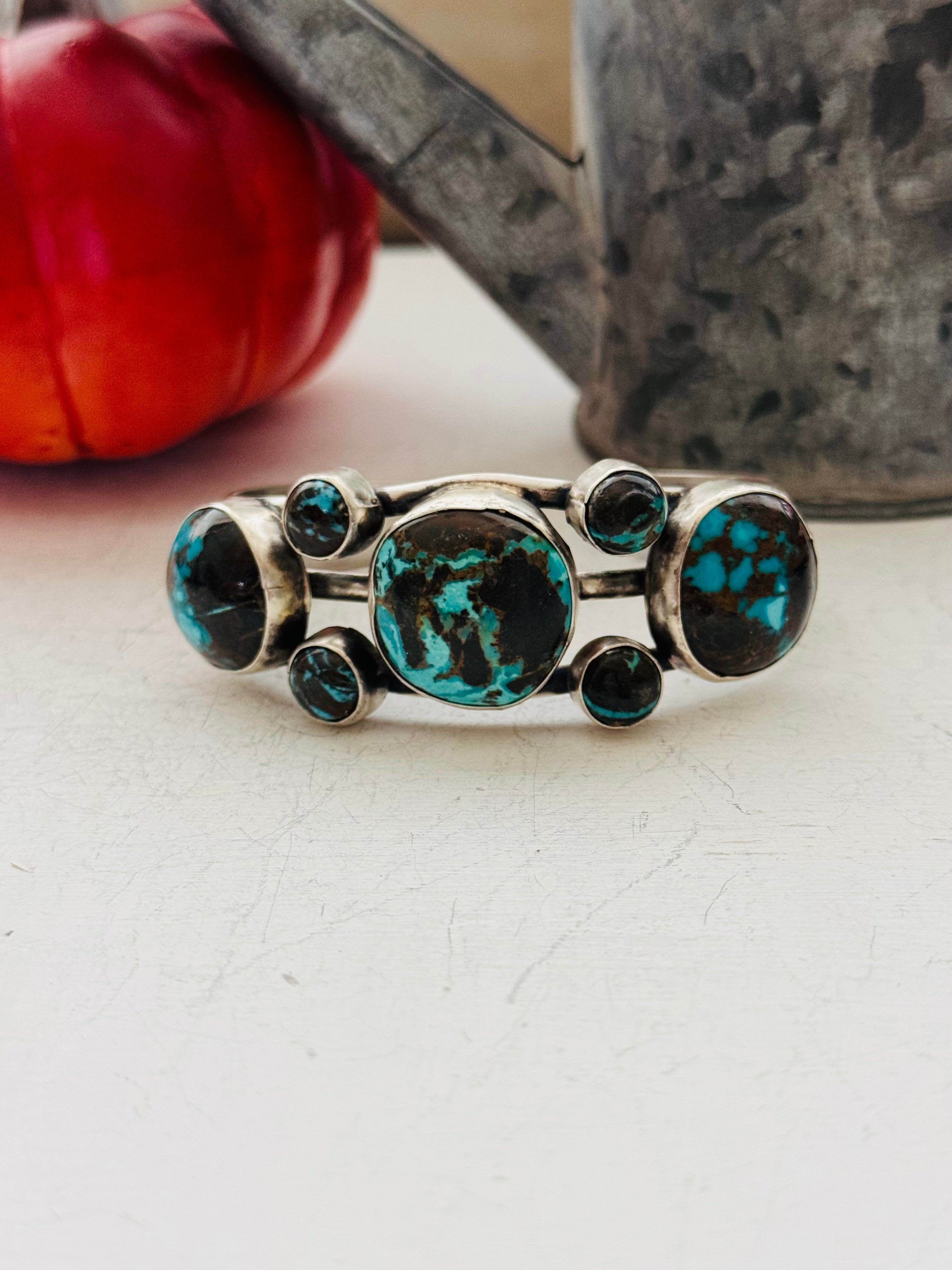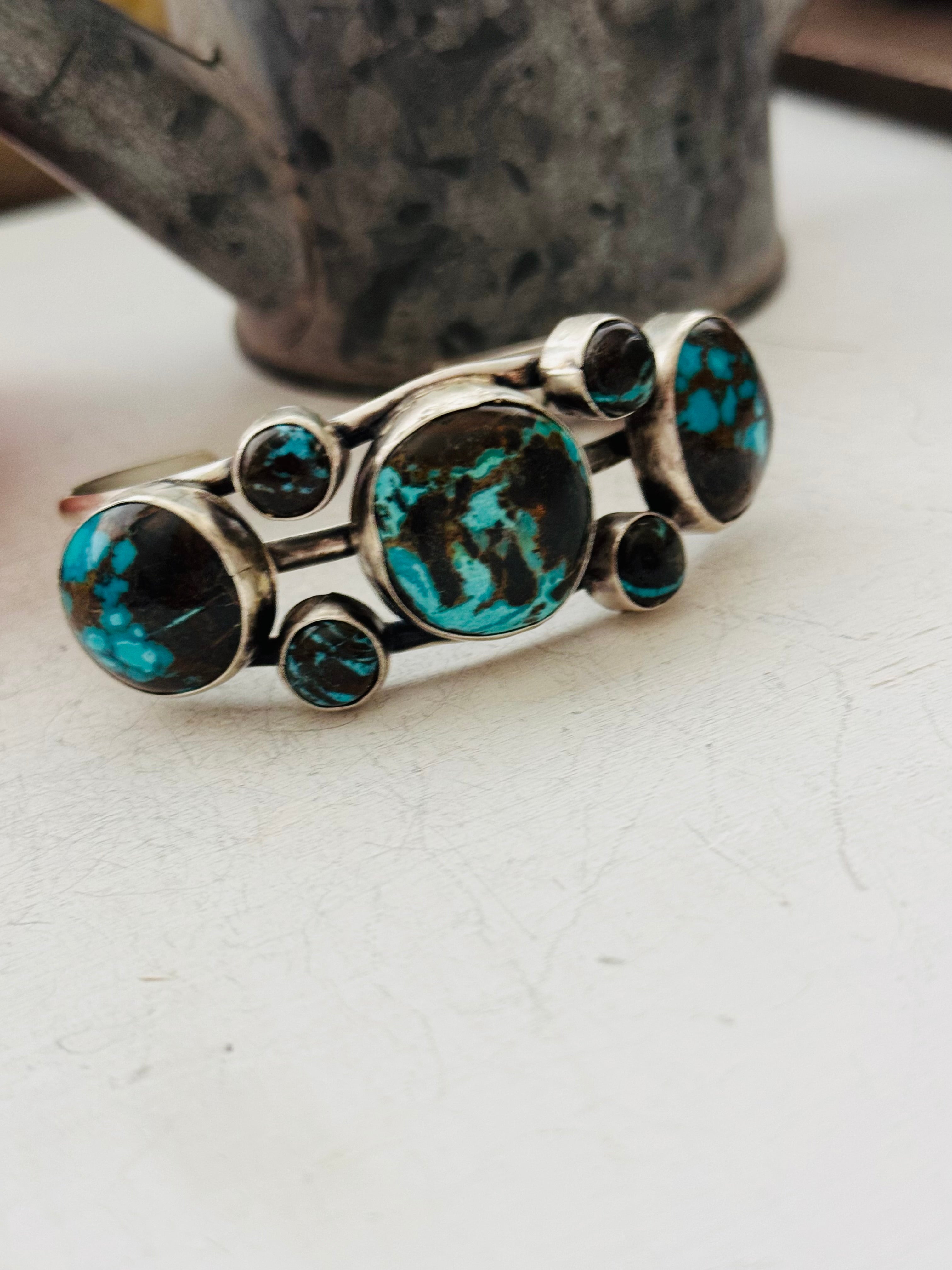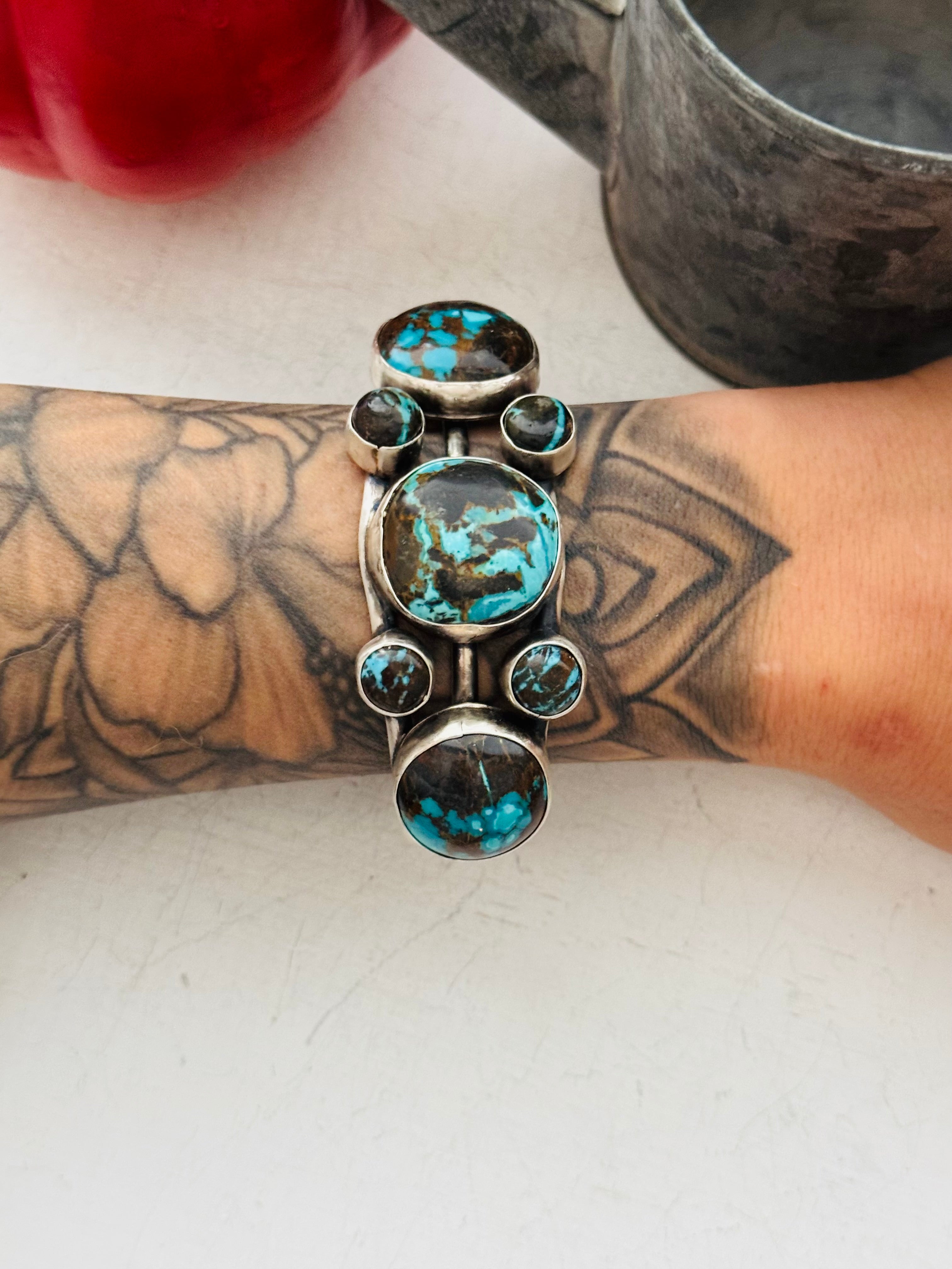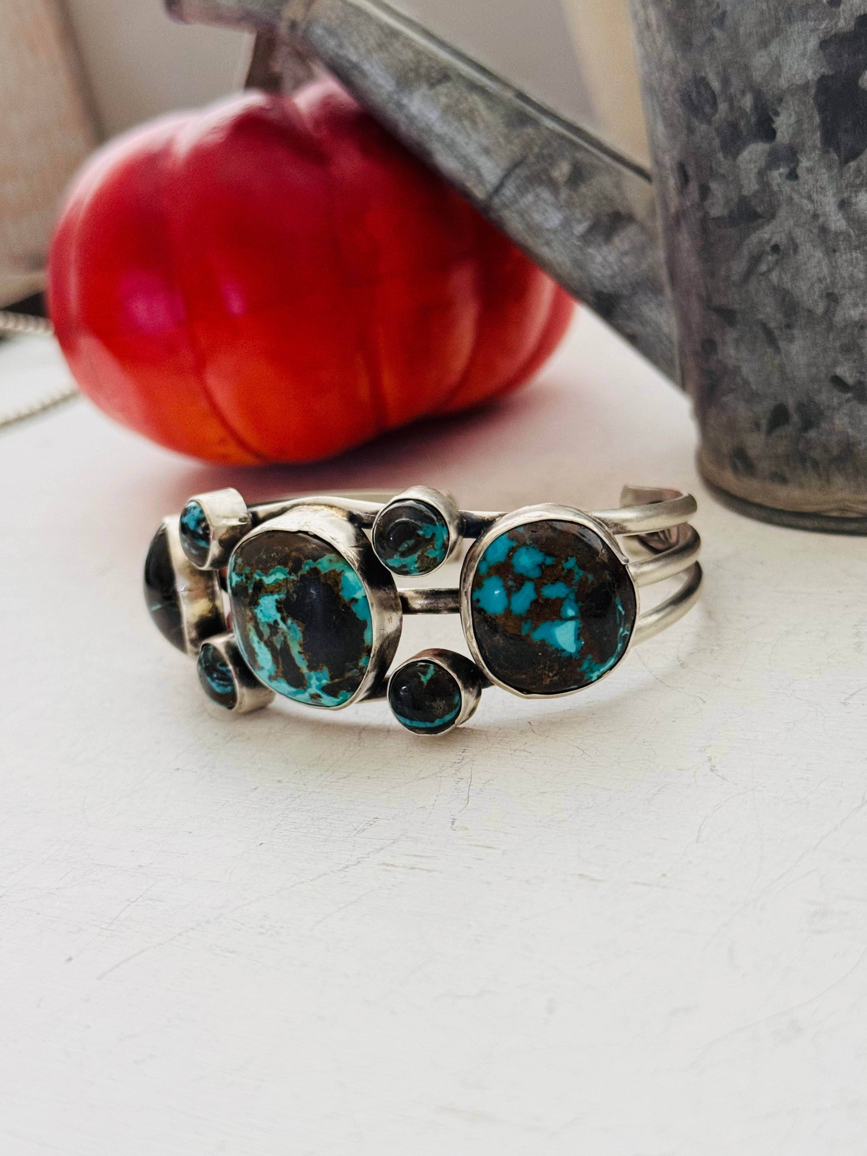 Bobby Johnson Blue Moon Turquoise & Sterling Silver Cluster Cuff Bracelet