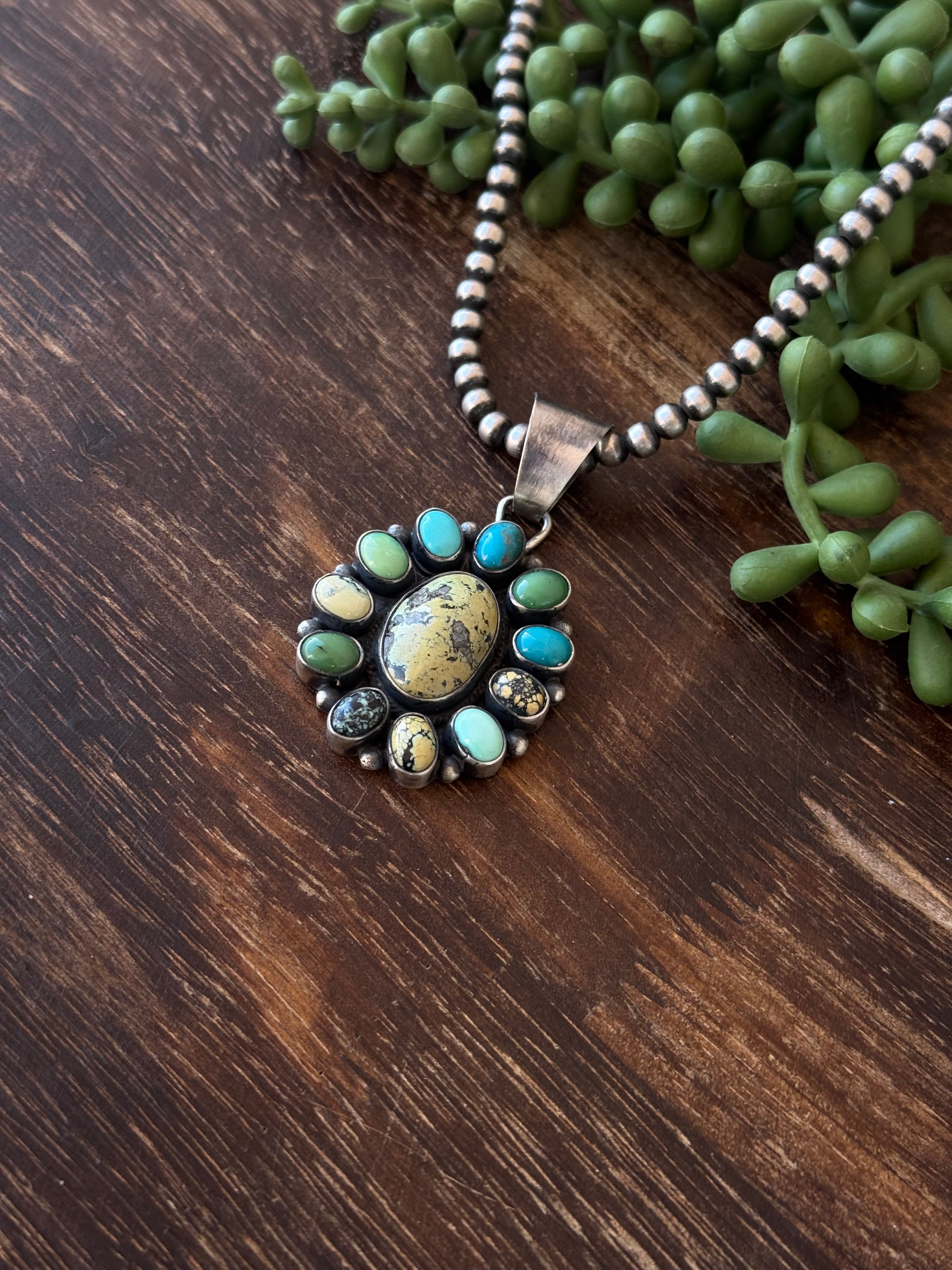 Travis Jim Mixed Turquoise & Sterling Silver Cluster Pendant
