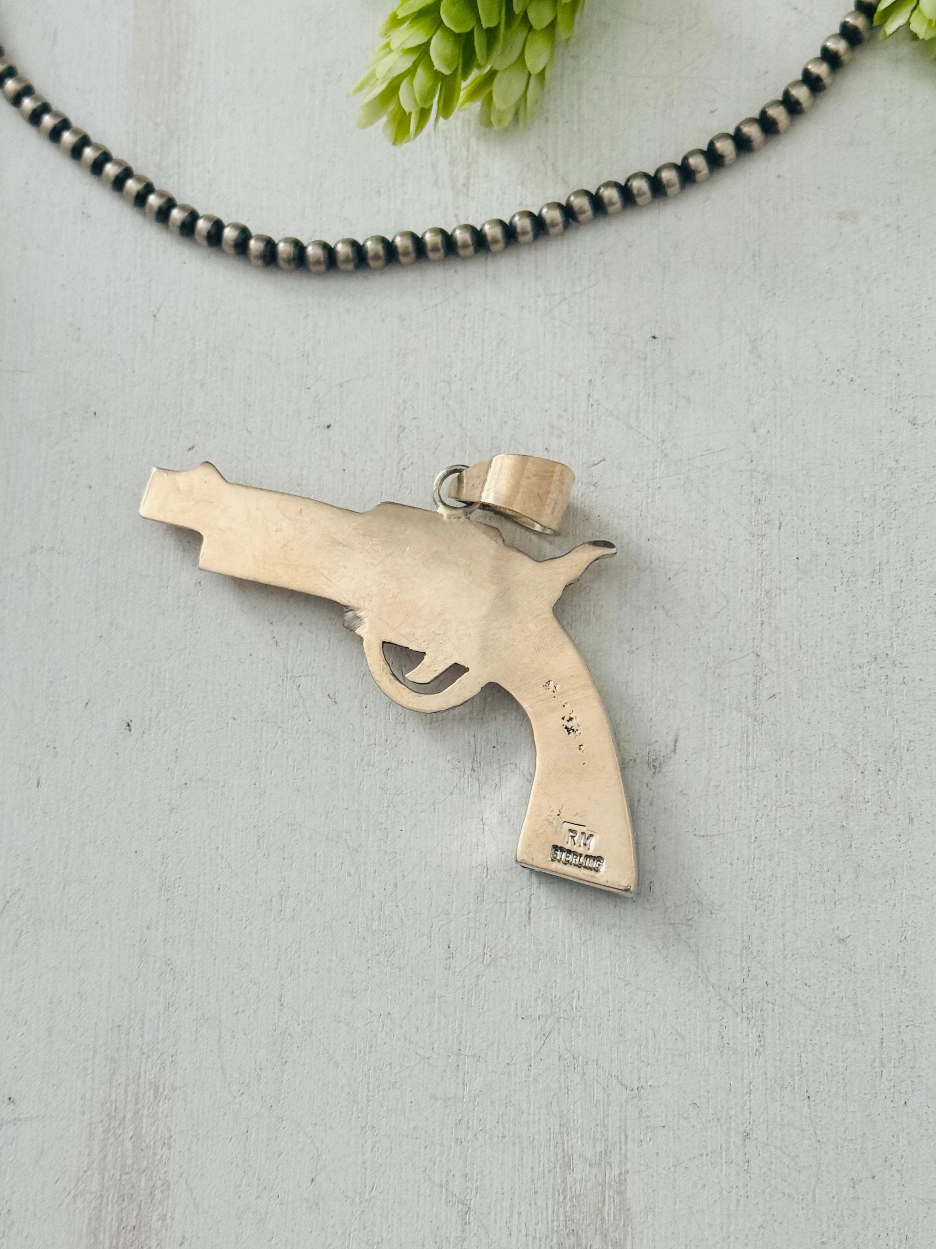 Bobby Mannelito Multi Stone & Sterling Silver Pistol Pendant. The pendant 3 1/4 inches long and 3 3/4 inches wide. Pendant only! Stamped and signed.