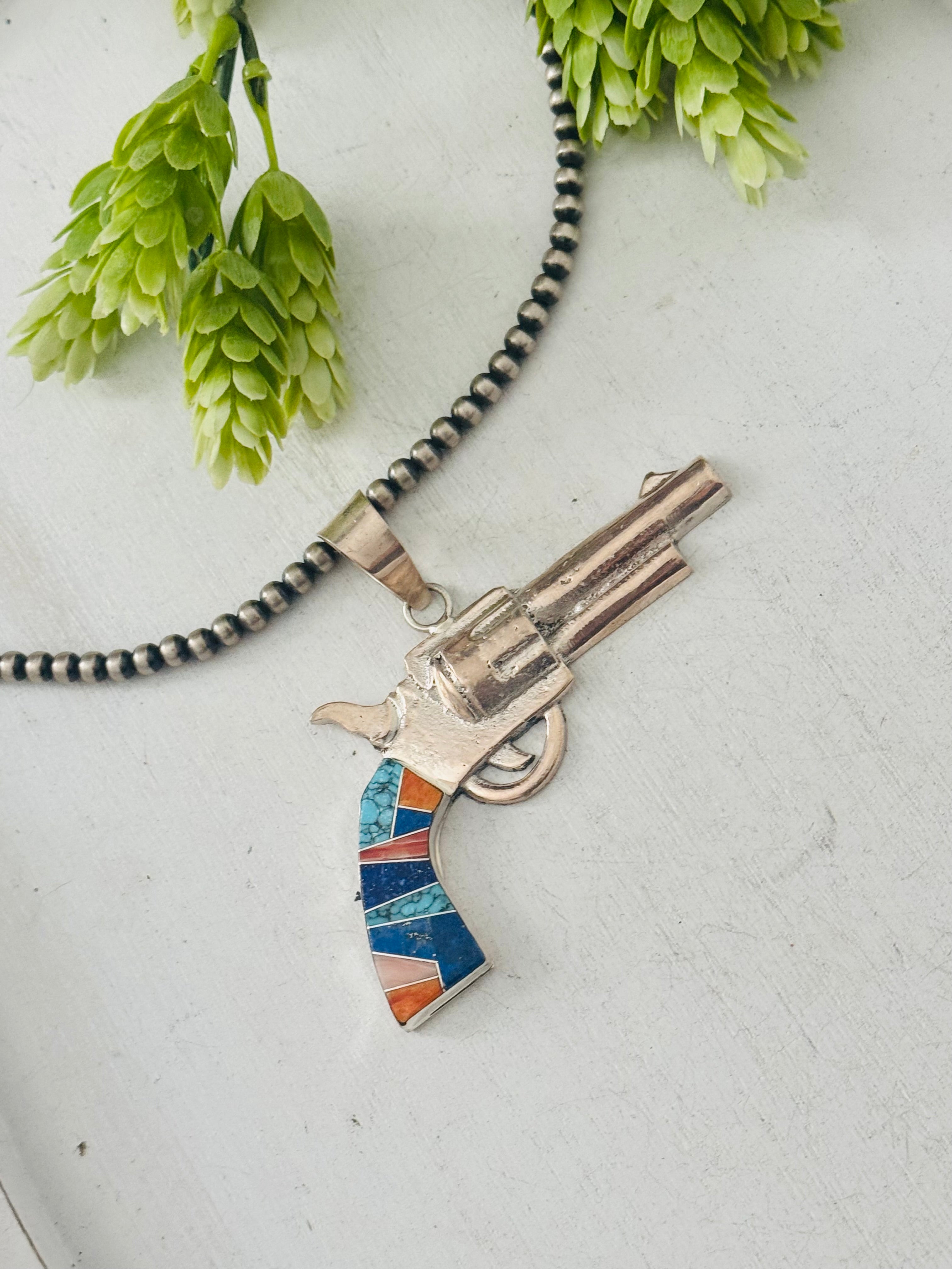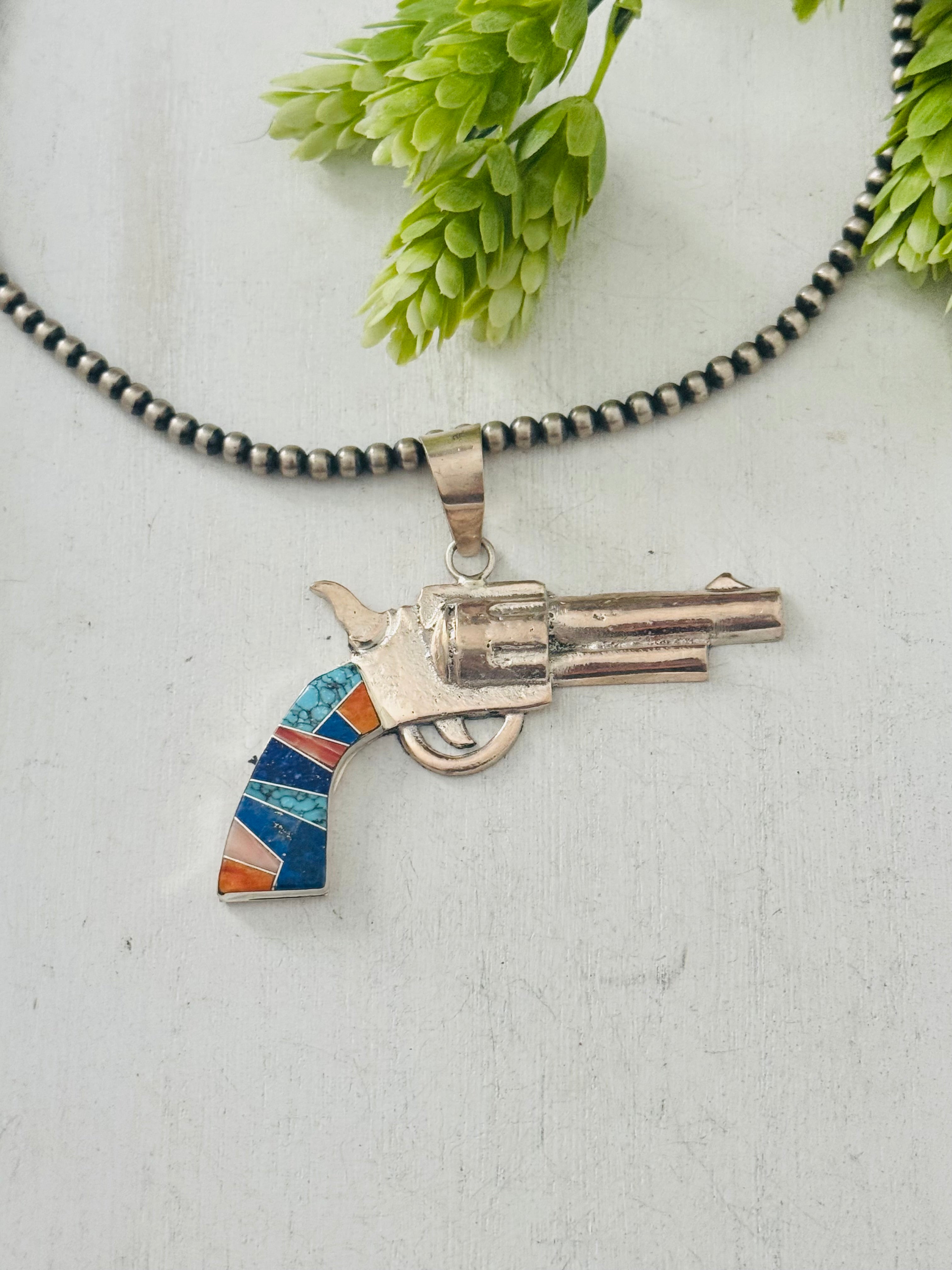 Bobby Mannelito Multi Stone & Sterling Silver Pistol Pendant
