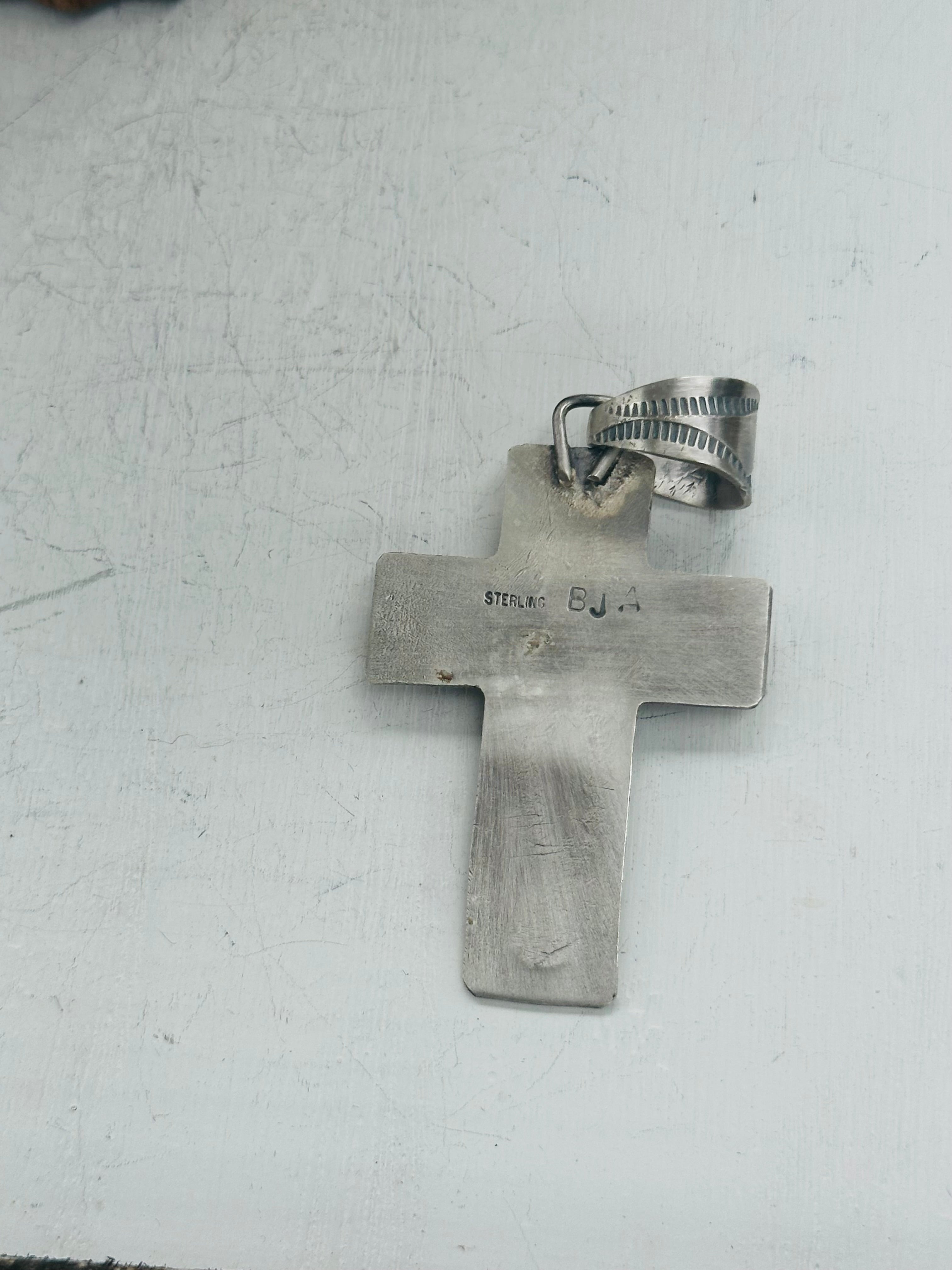 Boyd Ashley Kingman Turquoise & Sterling Silver Cross Pendant. It measures 2 7/8 inches long and 1 1/2 inches wide. Pendant Only!! Signed by the artist and stamped sterling silver.