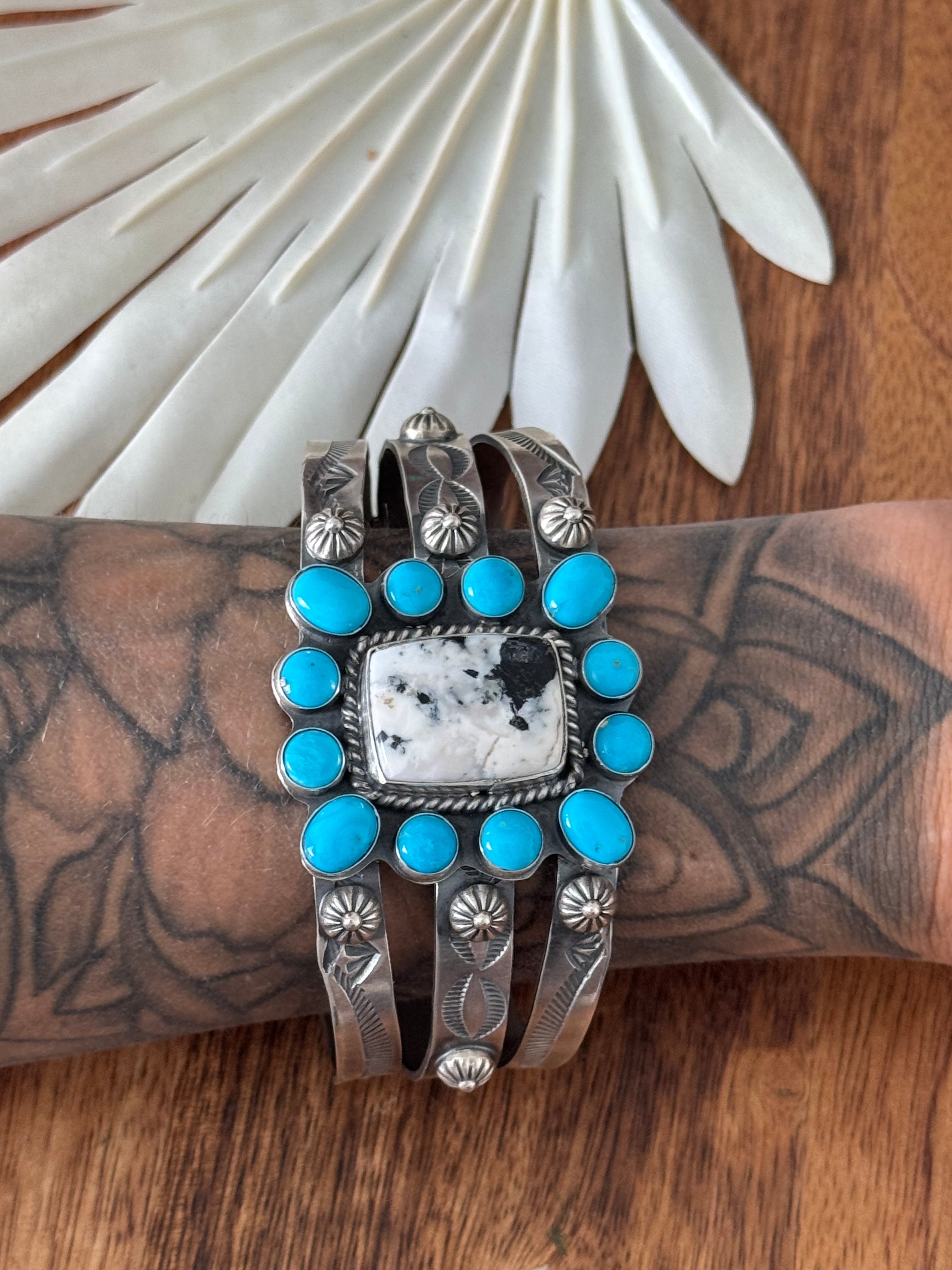 Boyd J Ashley Multi Stone & Sterling Silver Cuff Bracelet