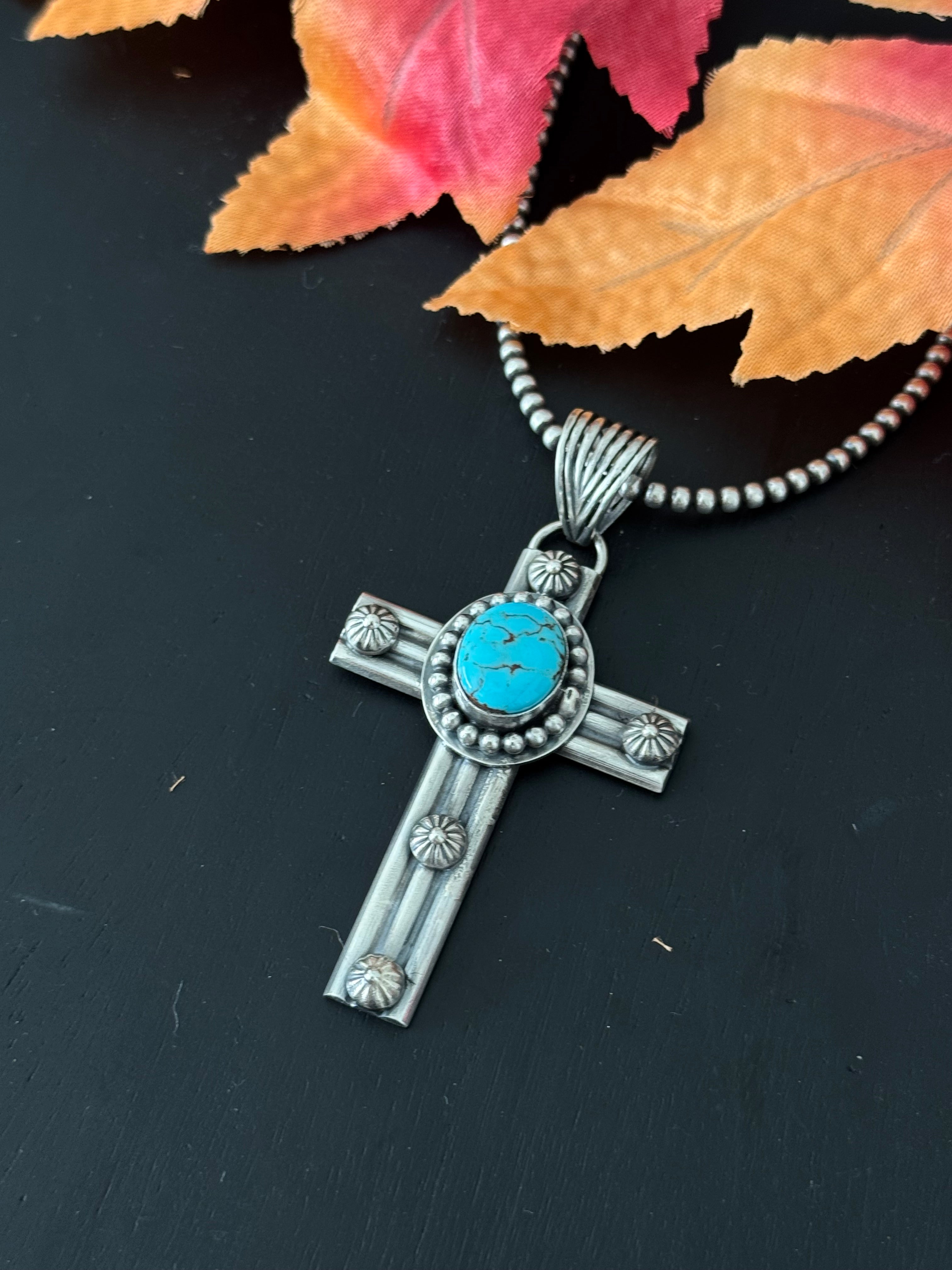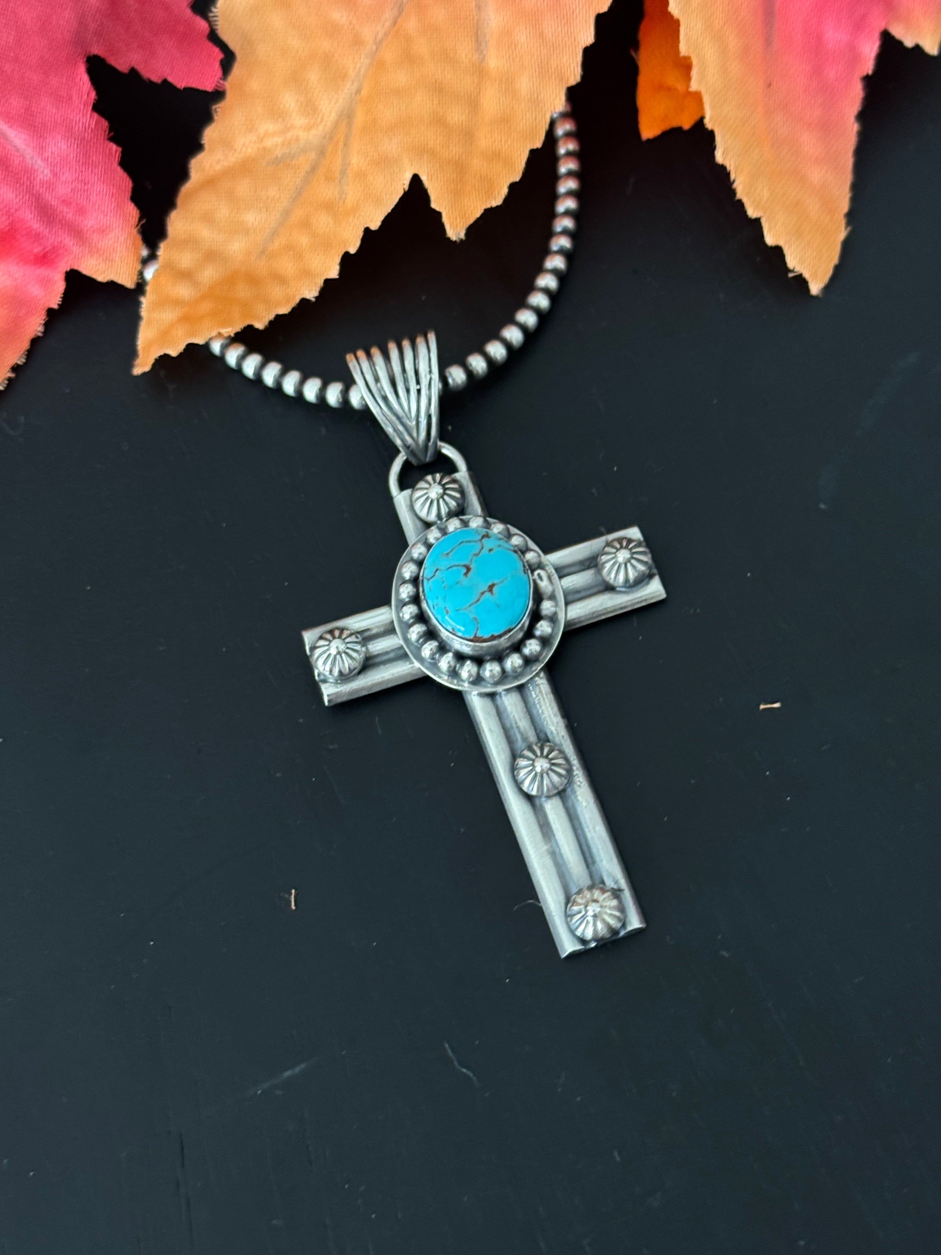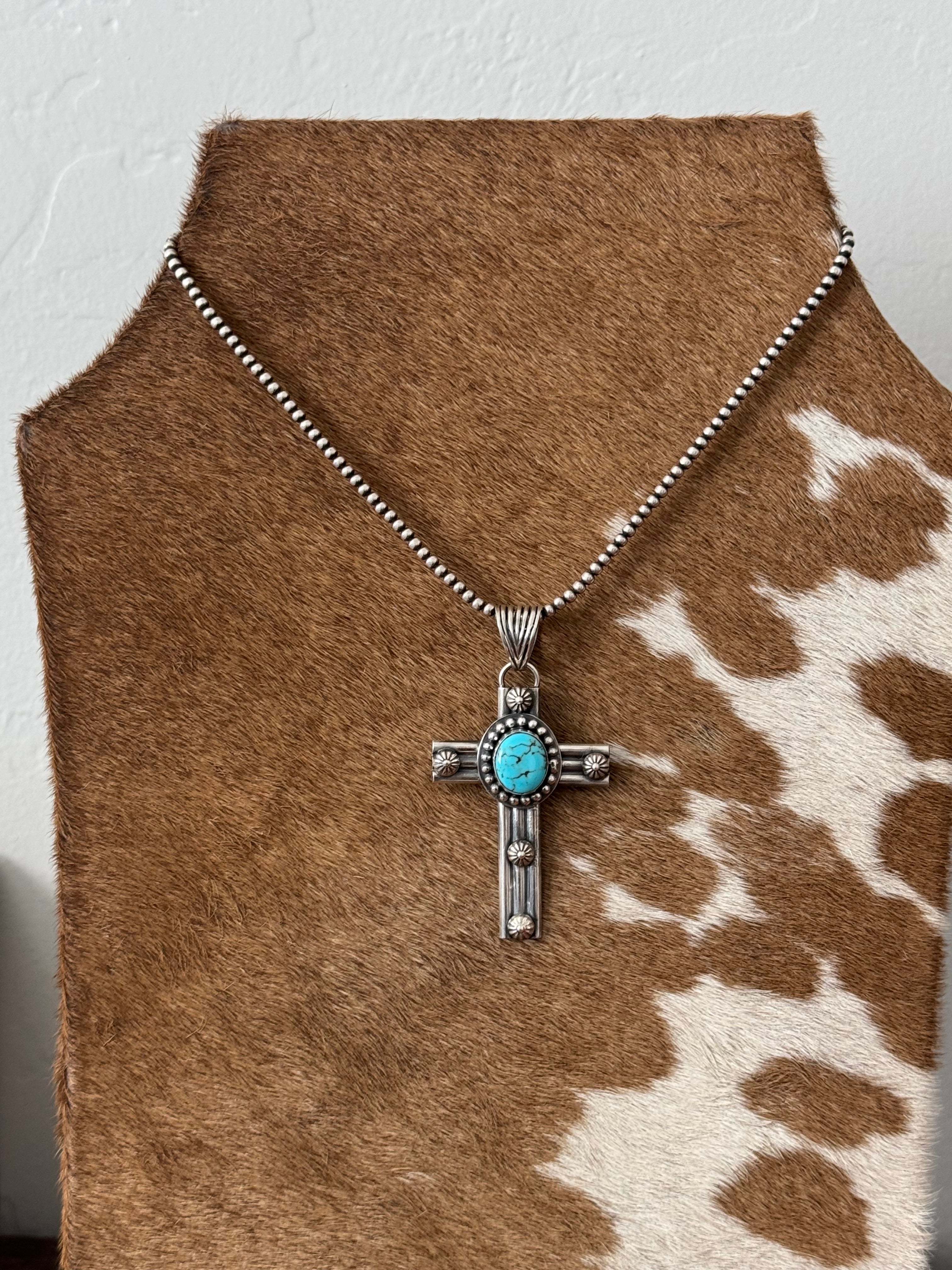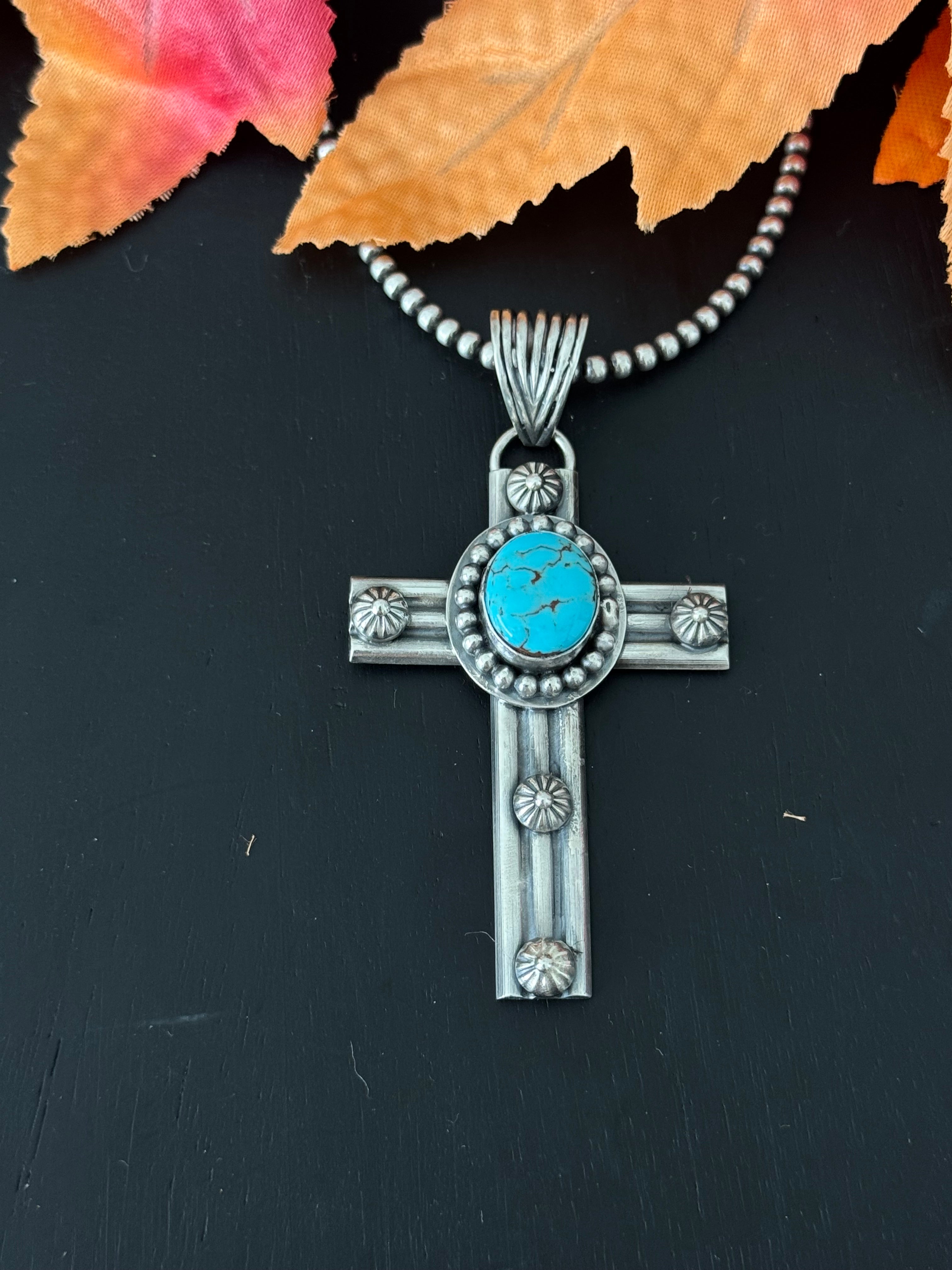 Calvin Delgarito Egyptian Turquoise & Sterling Silver Cross Pendant
