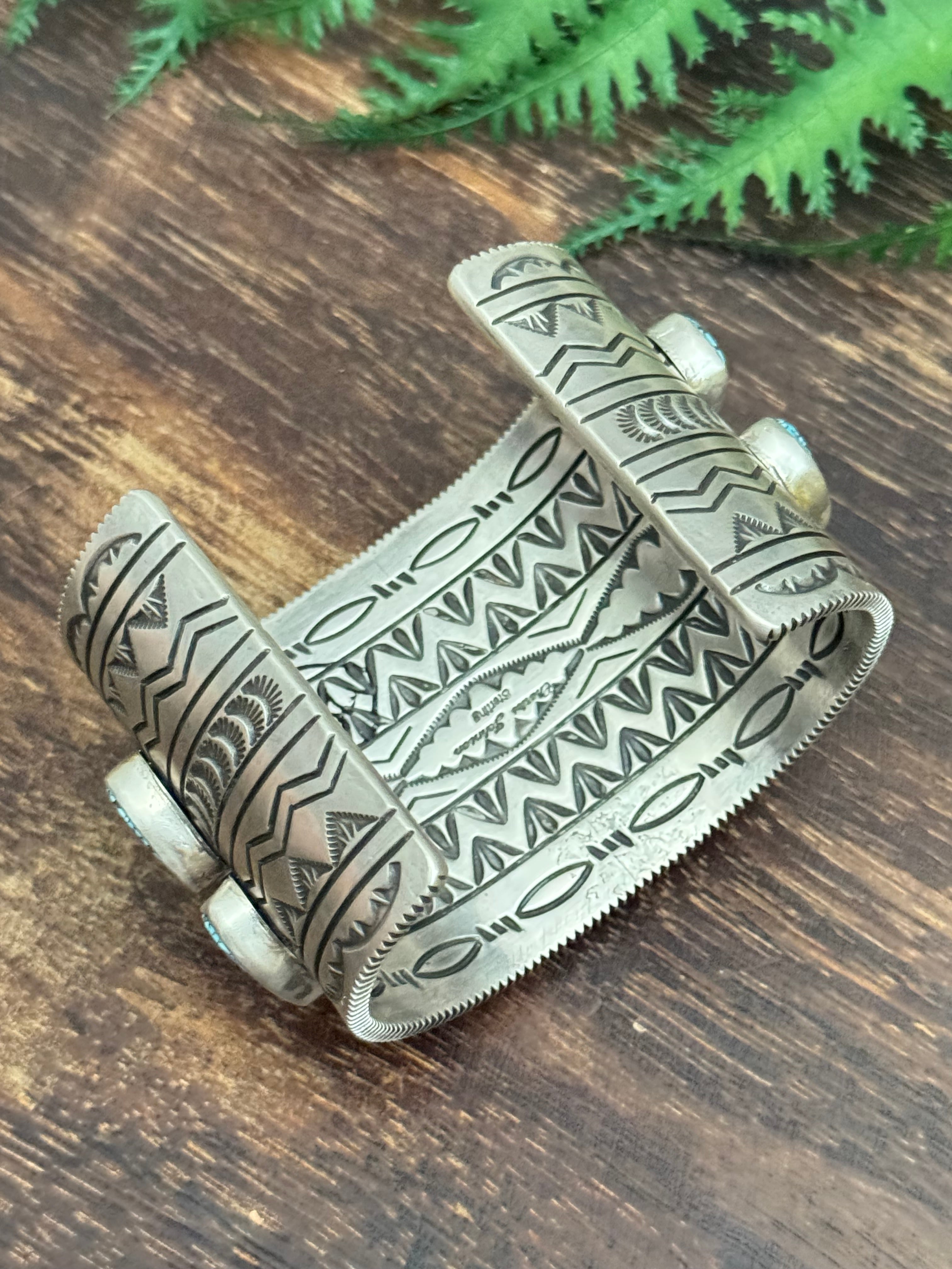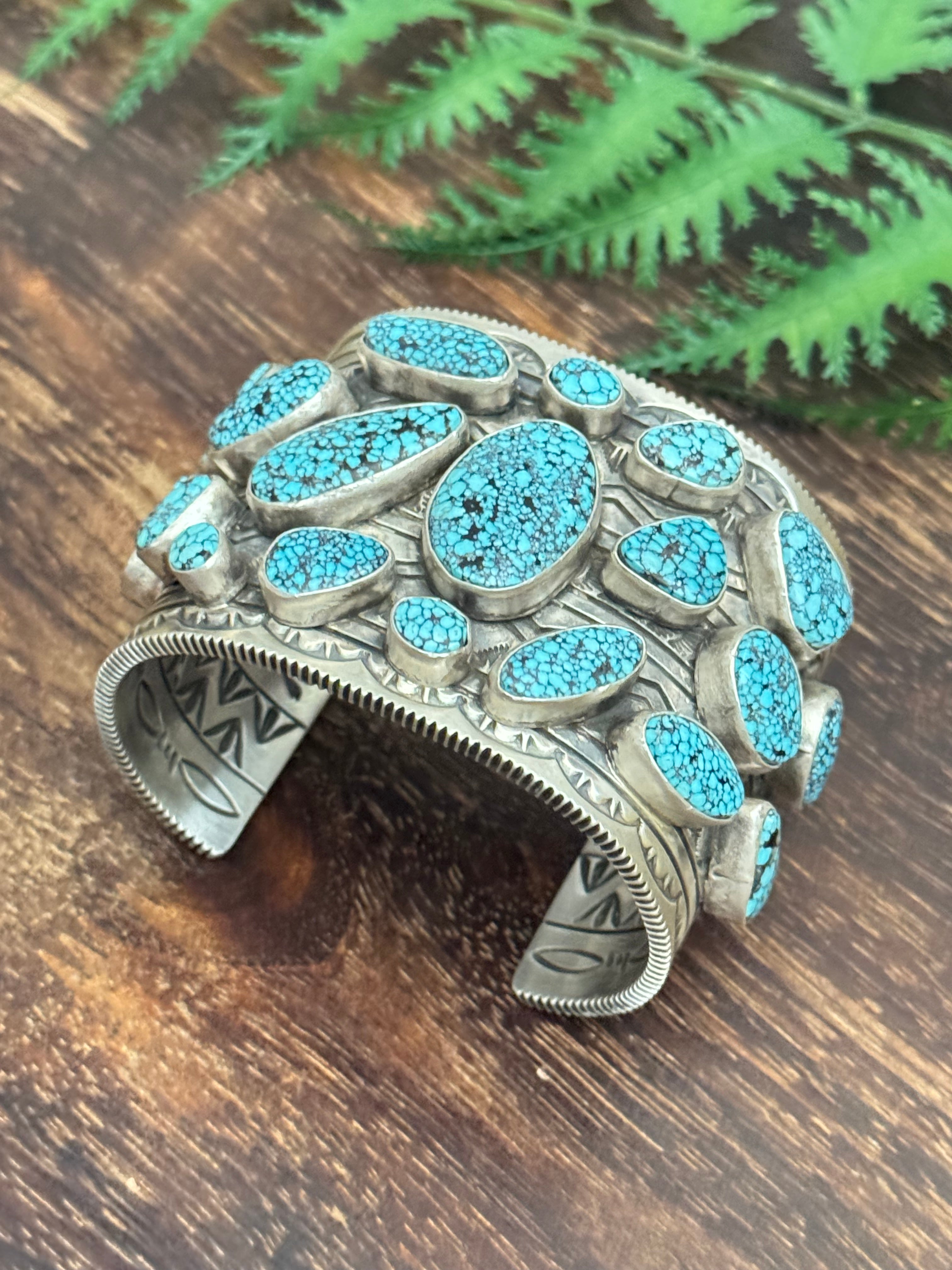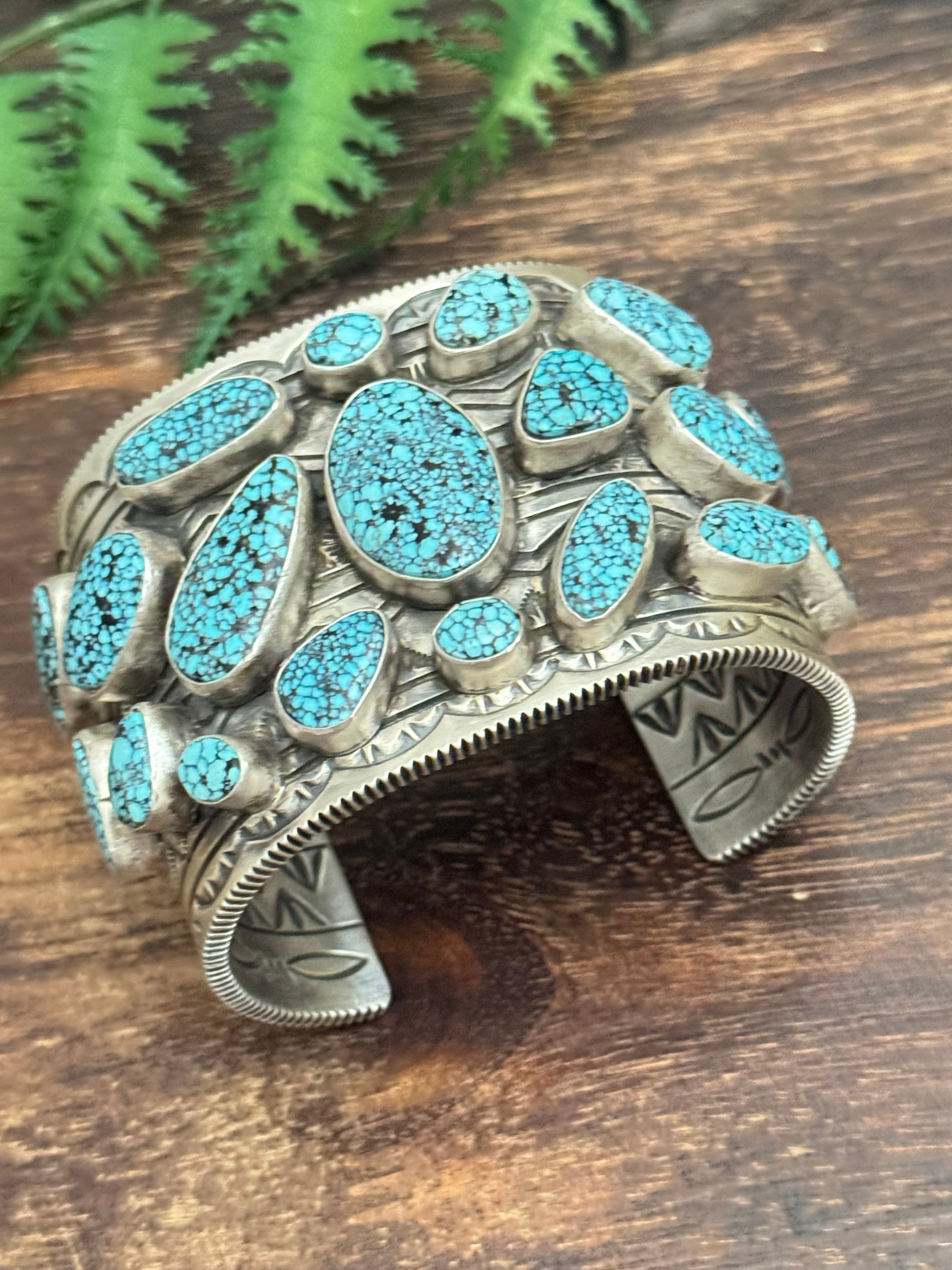 Charles Johnson Natural Black Spiderweb Turquoise & Sterling Silver Cluster Cuff Bracelet