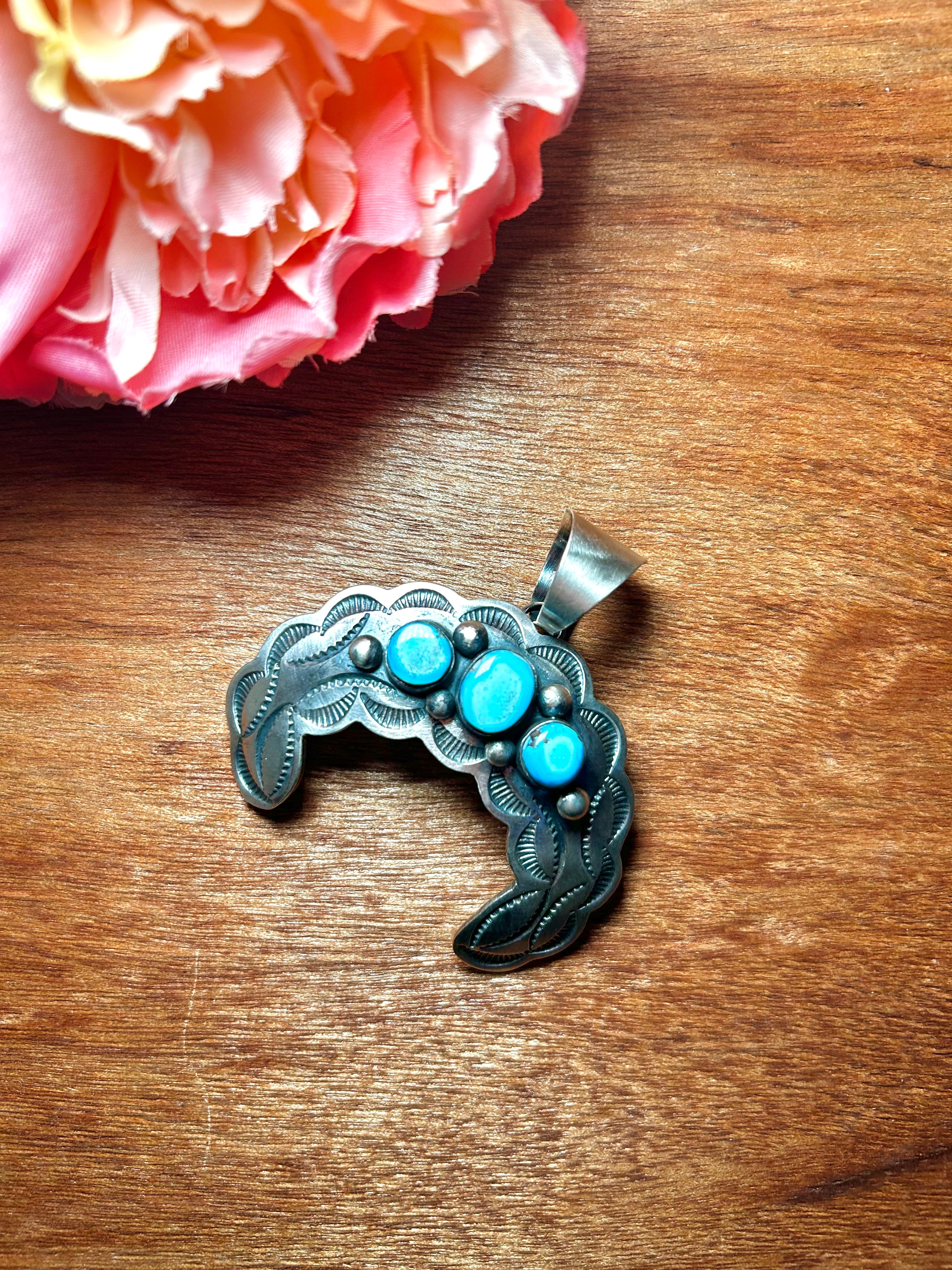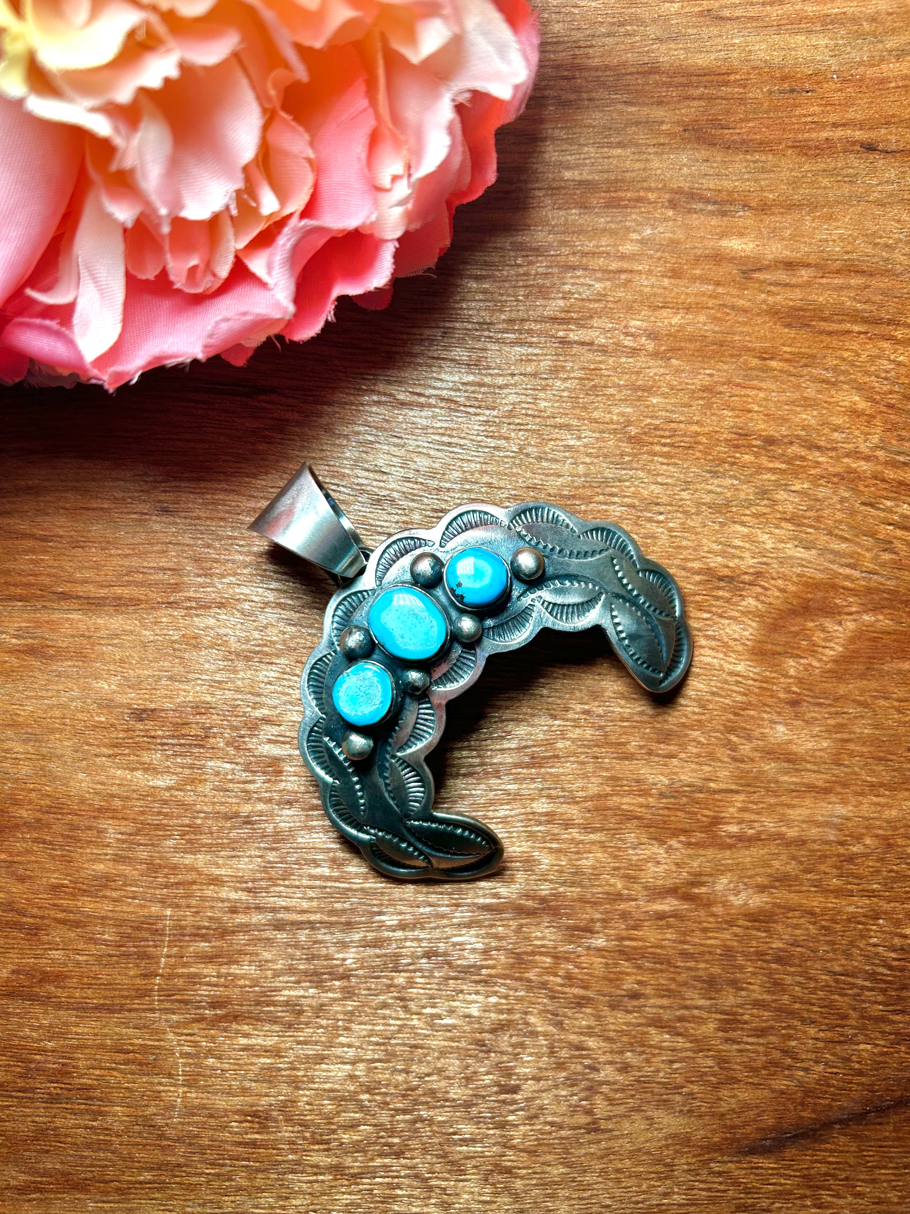Chimney Butte Golden Hill & Sterling Silver Pendant. It measures 2 7/8 inches long and 2 3/4 inches wide. Pendant Only. Signed by the artist and stamped sterling silver.