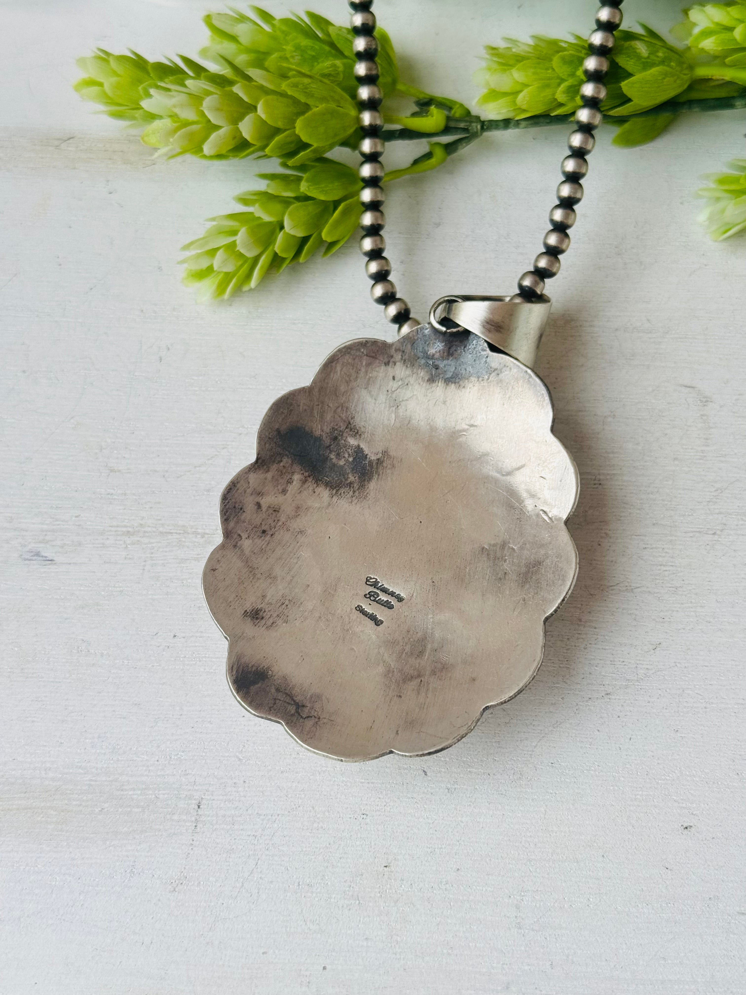Chimney Butte Golden Hill Turquoise & Sterling Silver Cluster Pendant. It measures 4 1/8 inches long and 2 1/2 inches wide. Pendant Only. Signed by the artist and stamped sterling silver.
