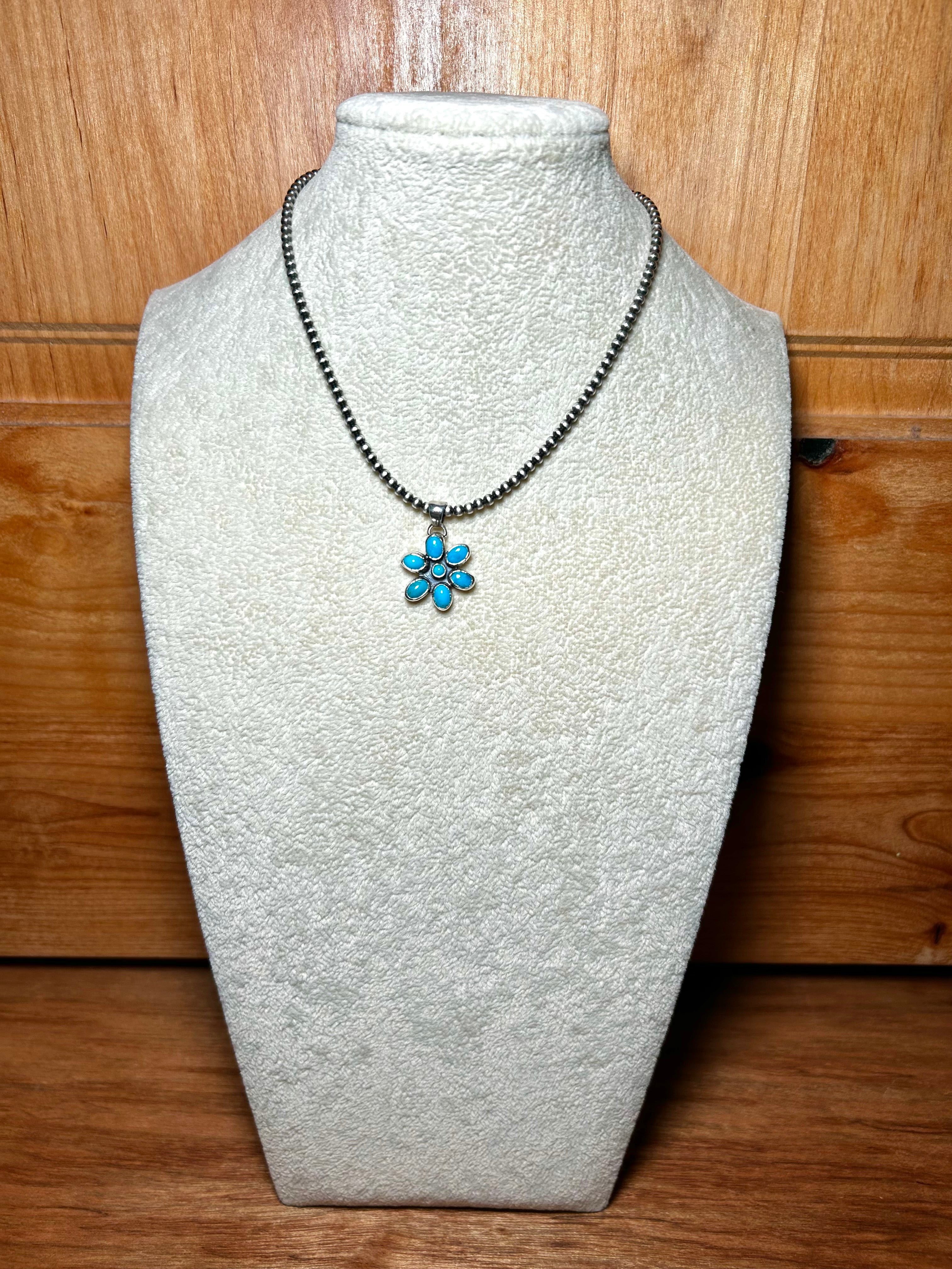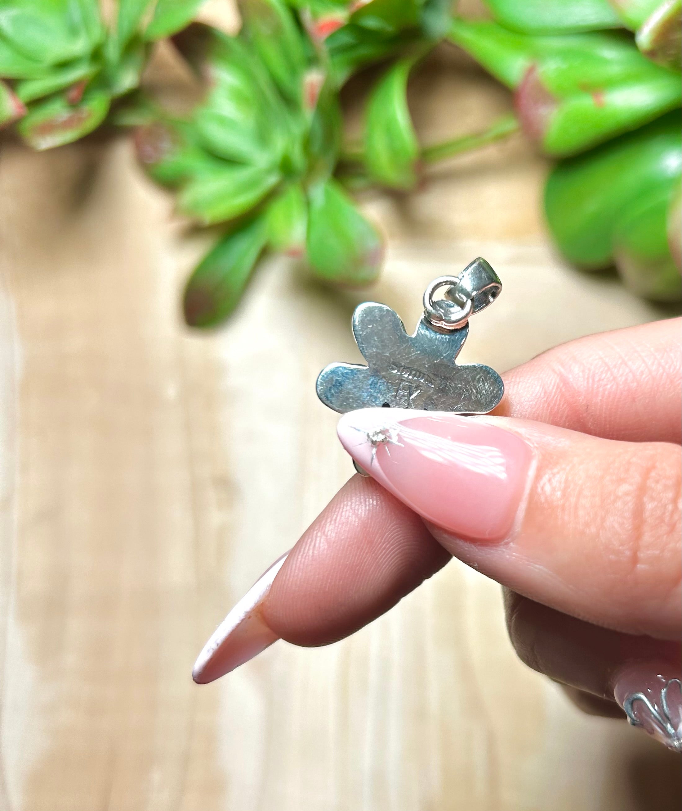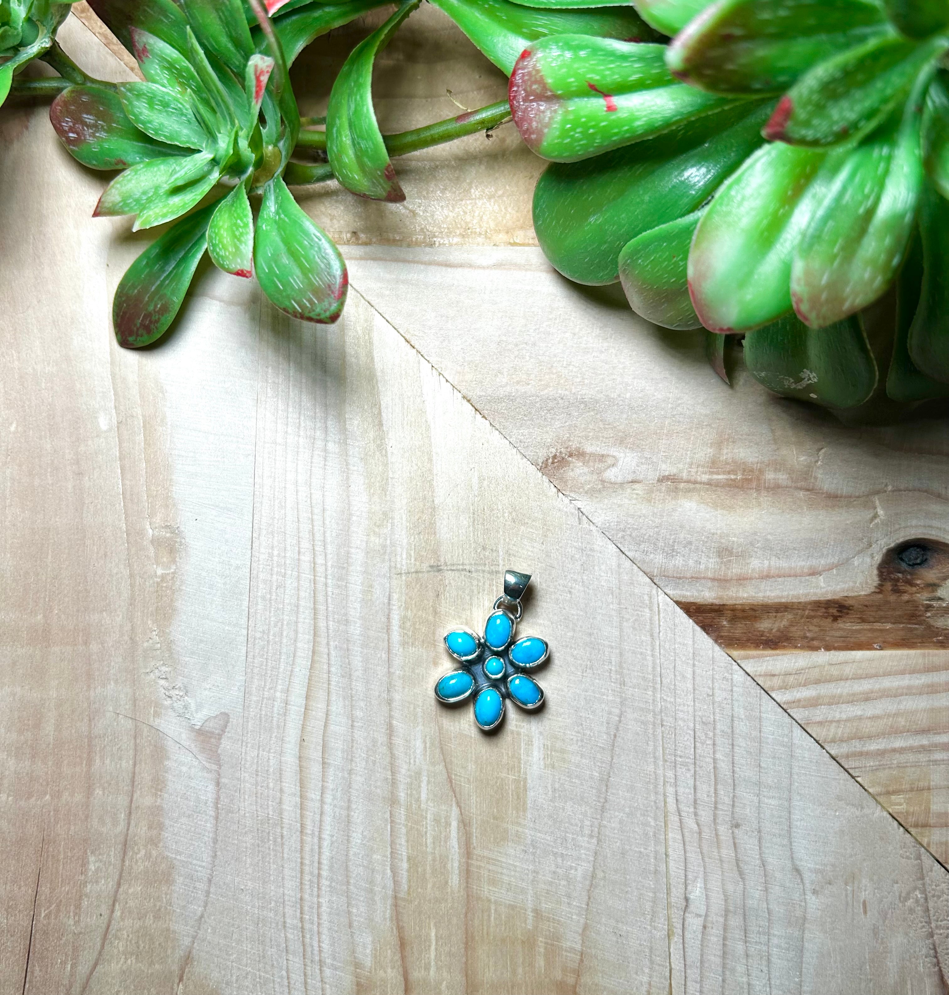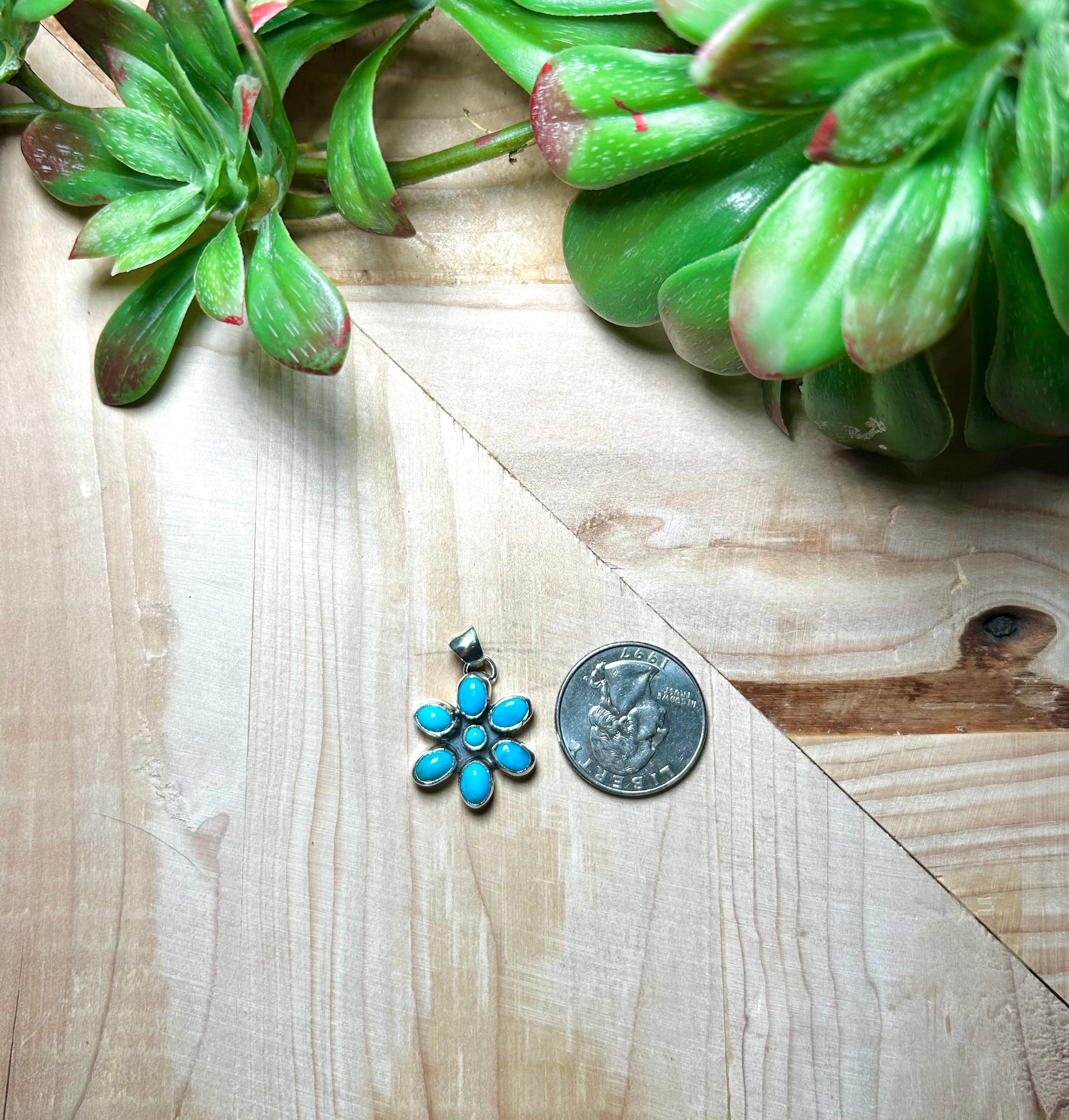 Navajo Made Kingman Turquoise & Sterling Silver Pendant. It measures 1 1/8 inches long and 3/4 of an inch wide. Pendant Only!! Signed by the artist and stamped sterling silver.