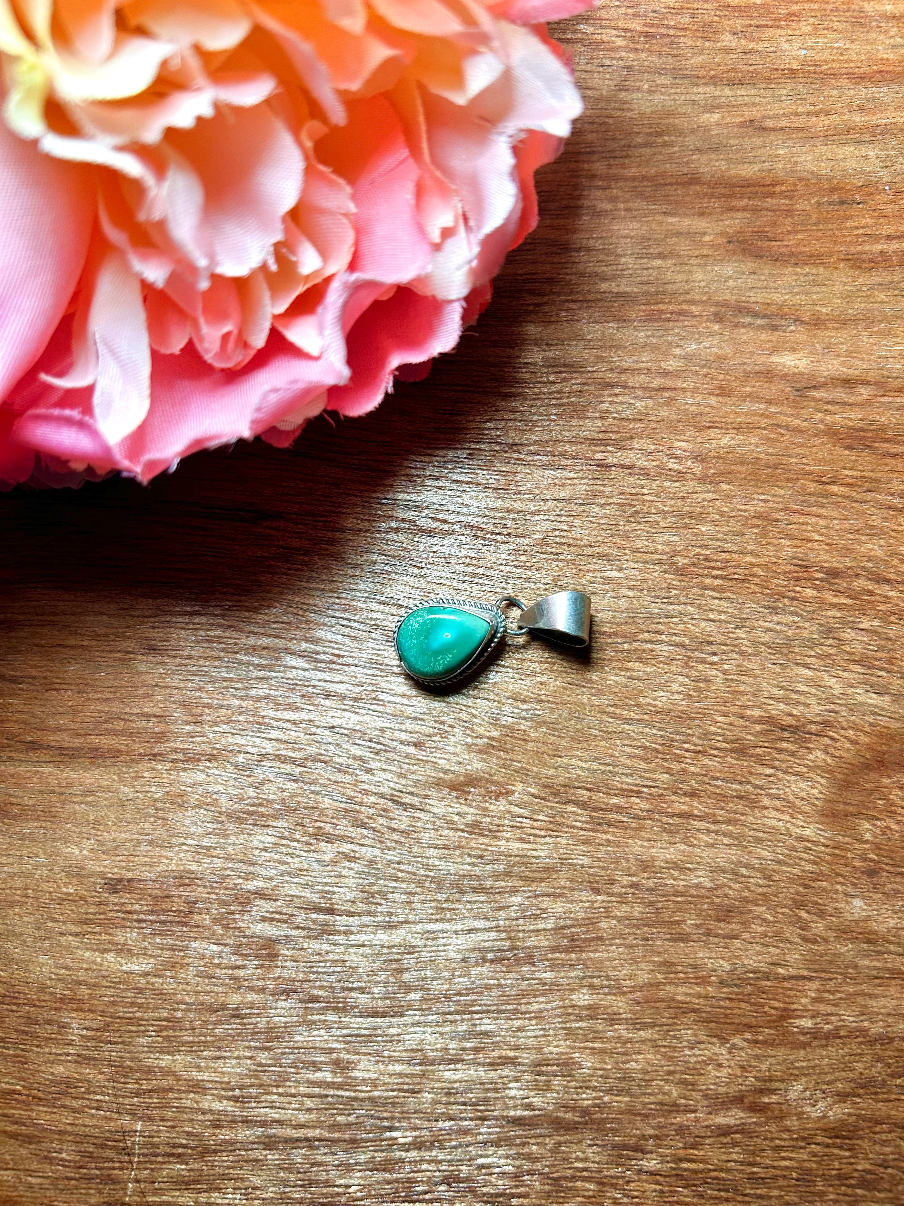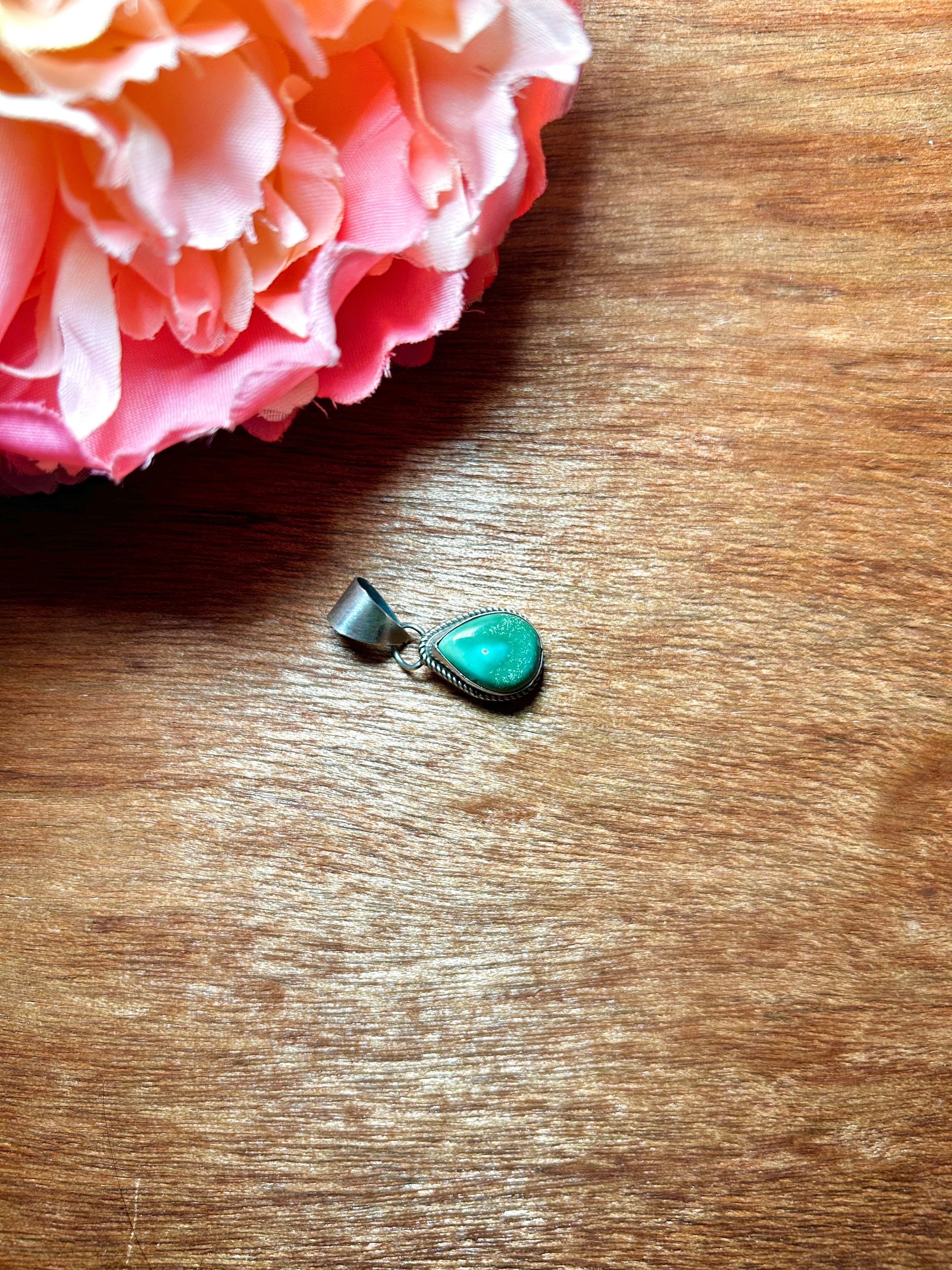 Navajo Made Sonoran Gold & Sterling Silver Pendant. It measures 1 1/4 inches long and 1/2 of an inch wide. Pendant Only. Signed by the artist and stamped sterling silver. Stones will vary due to natural stones