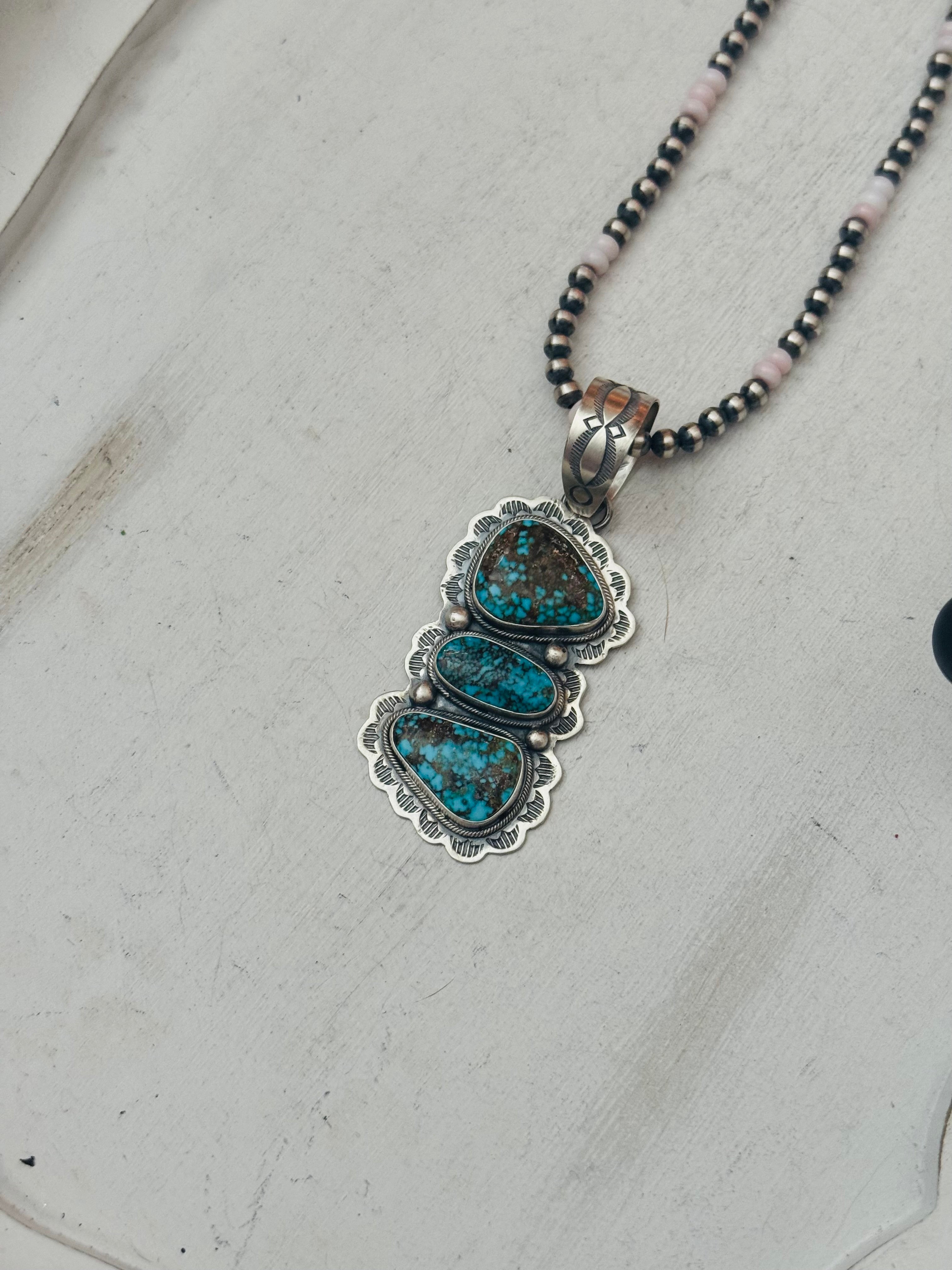 Danny Henio High Grade Kingman Turquoise & Sterling Silver Pendant