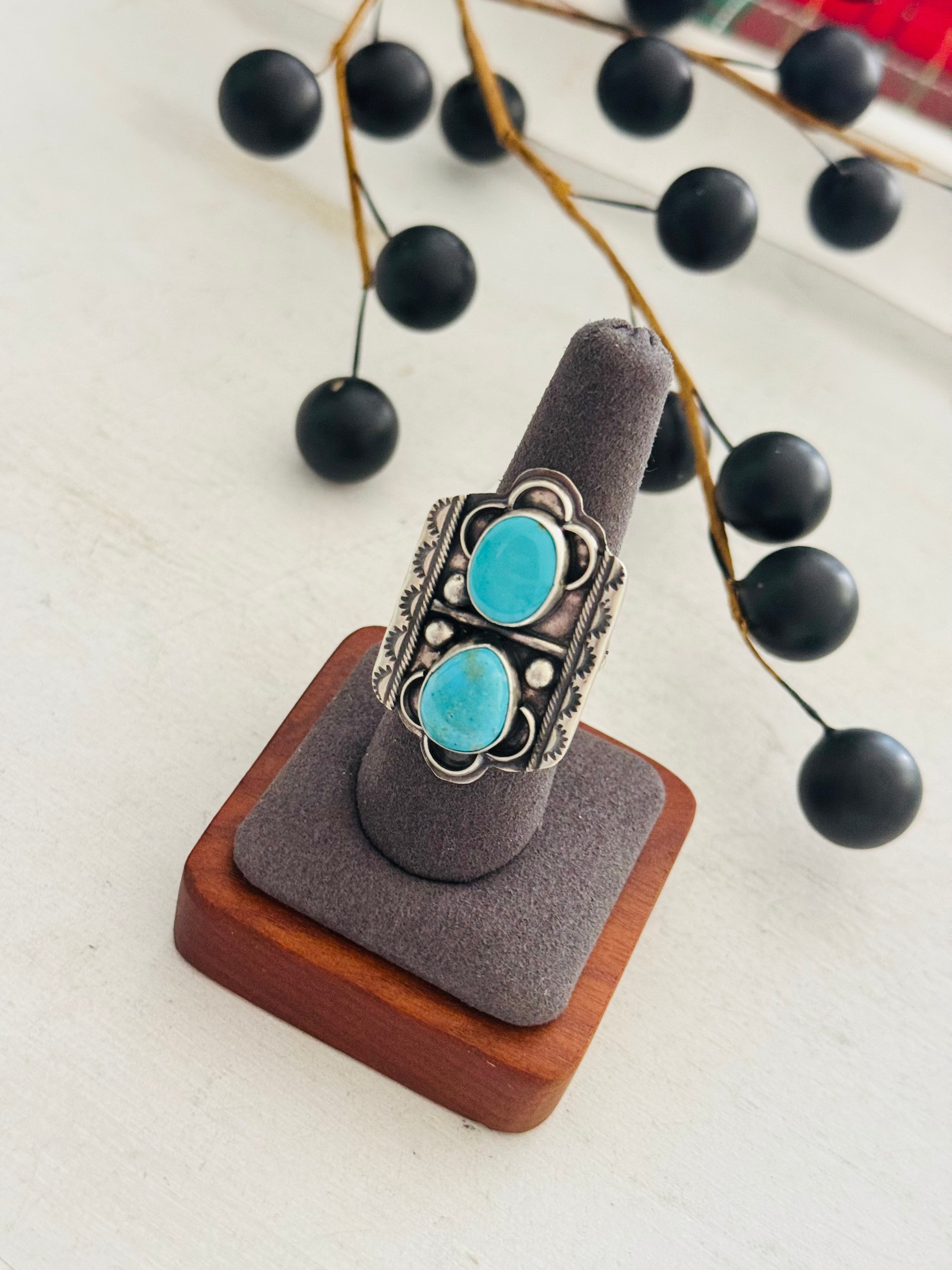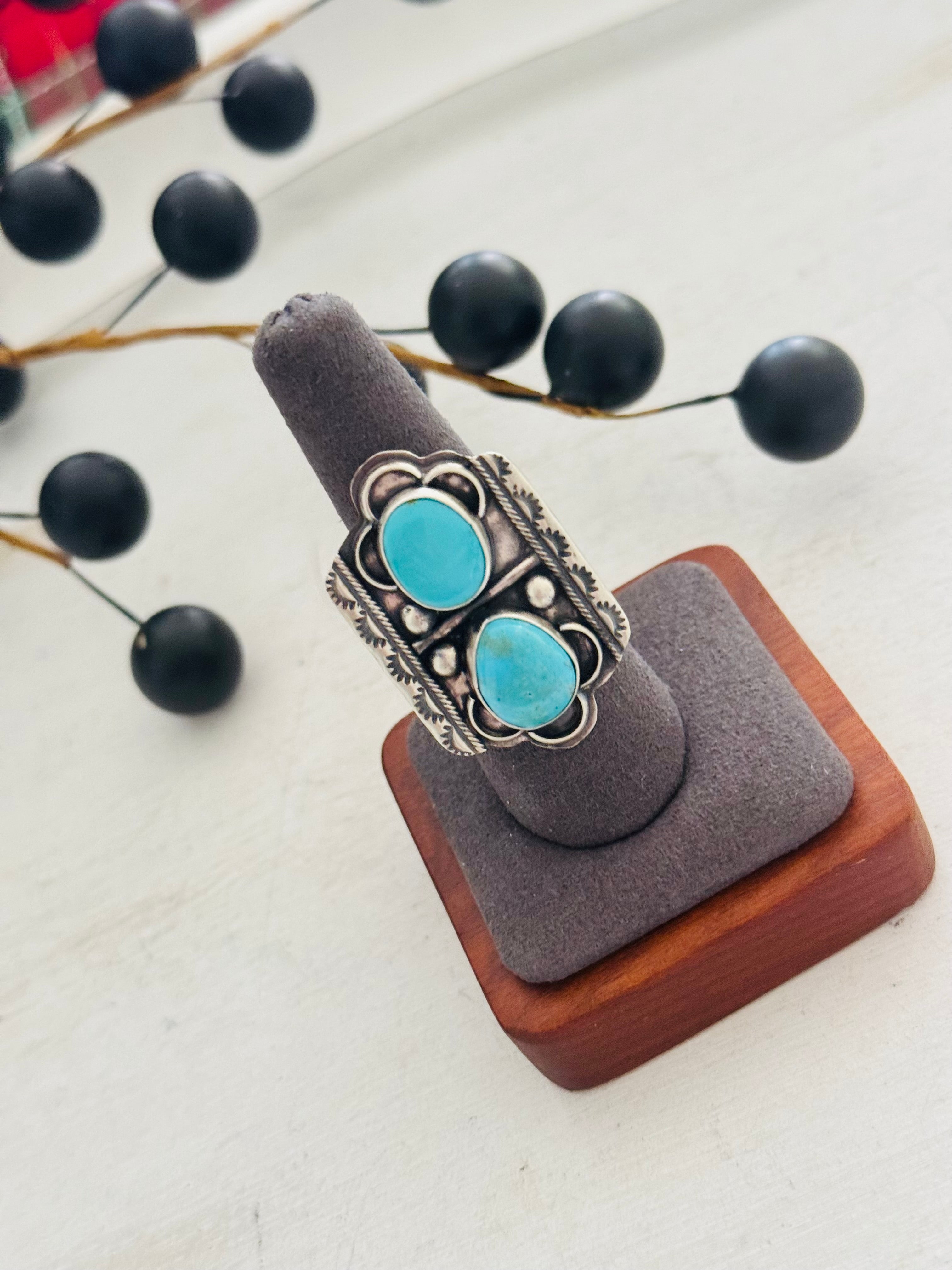 Danny Henio Kingman Turquoise & Sterling Silver Ring Size 8.5