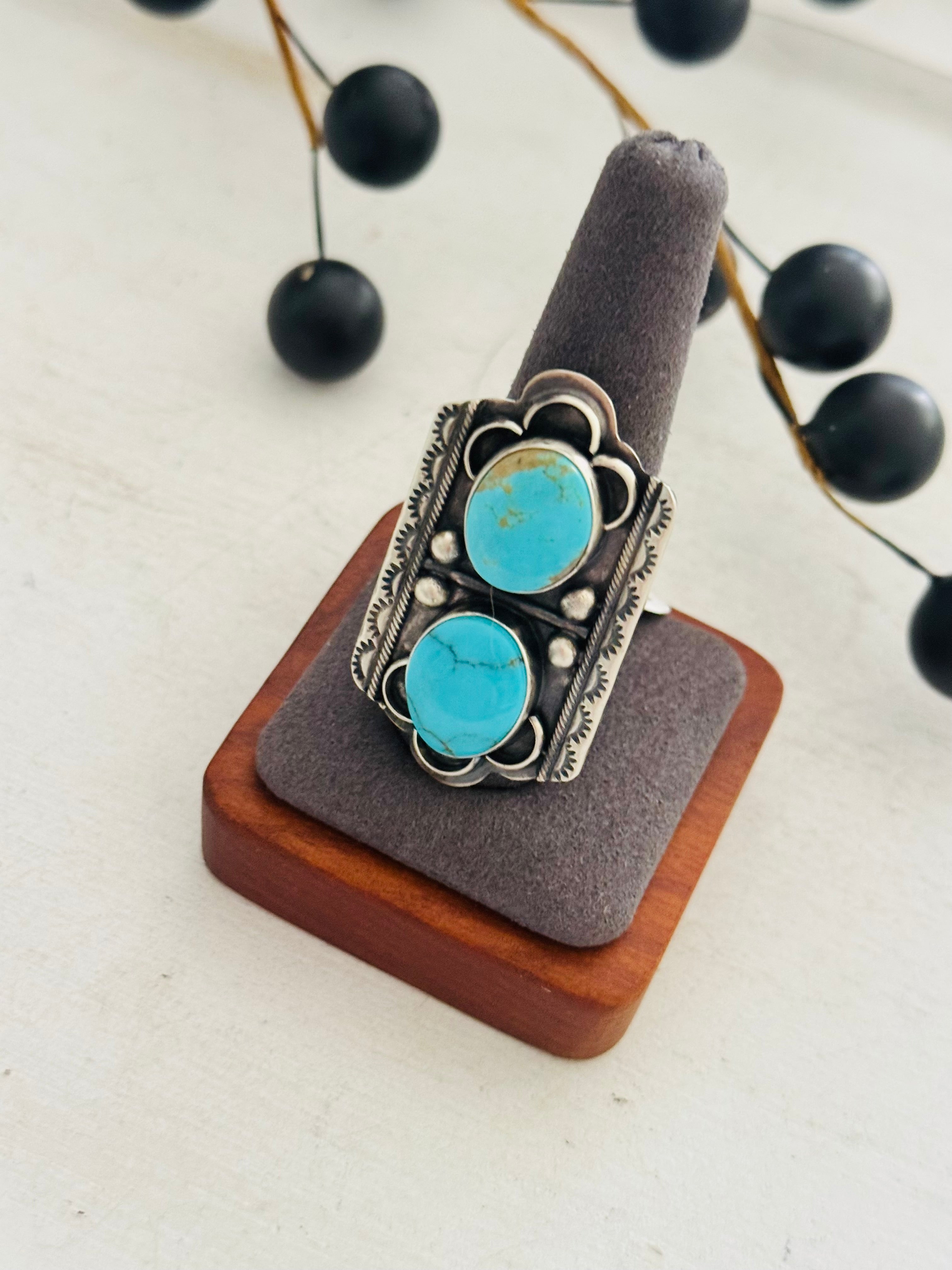 Danny Henio Kingman Turquoise & Sterling Silver Ring Size 10.25